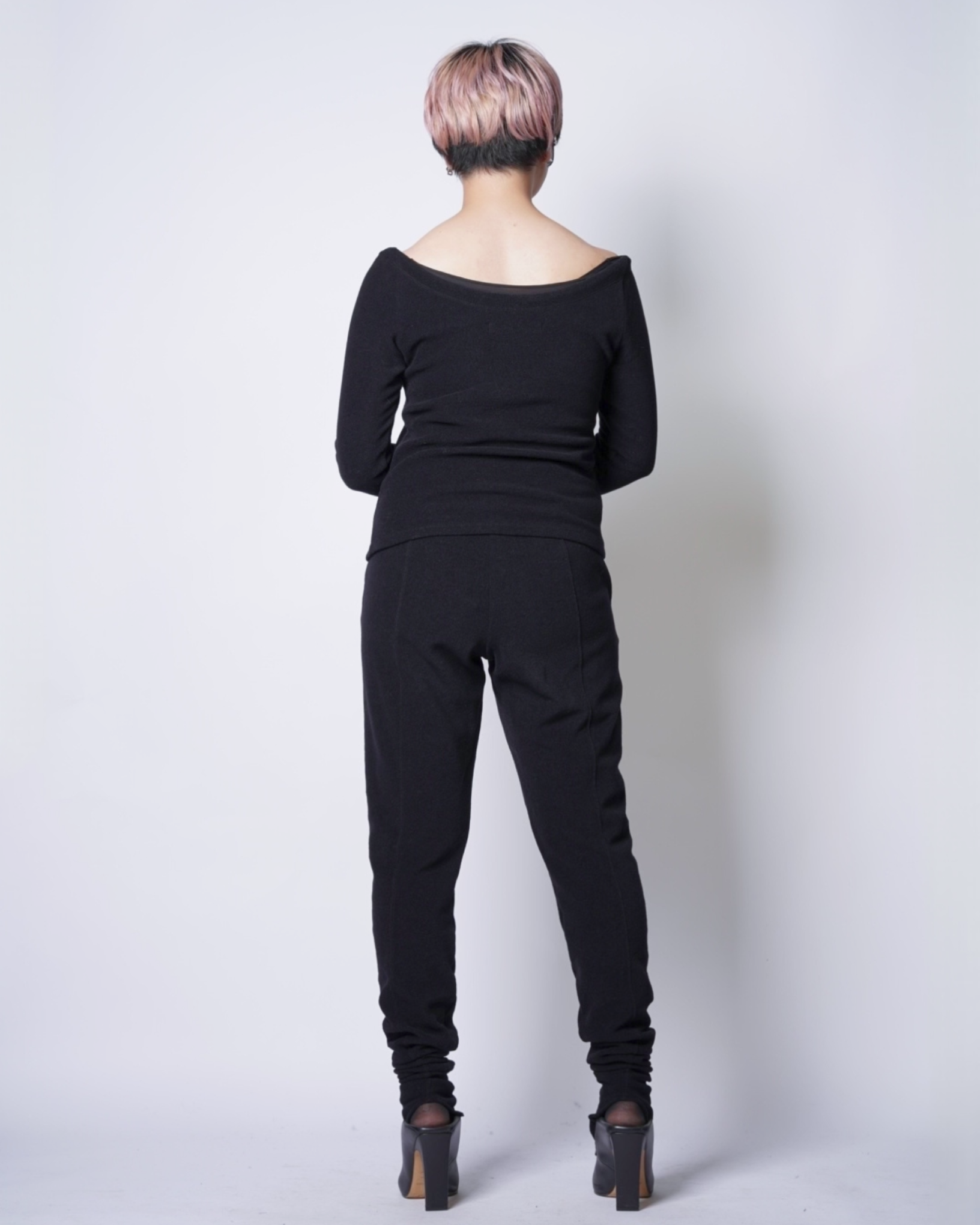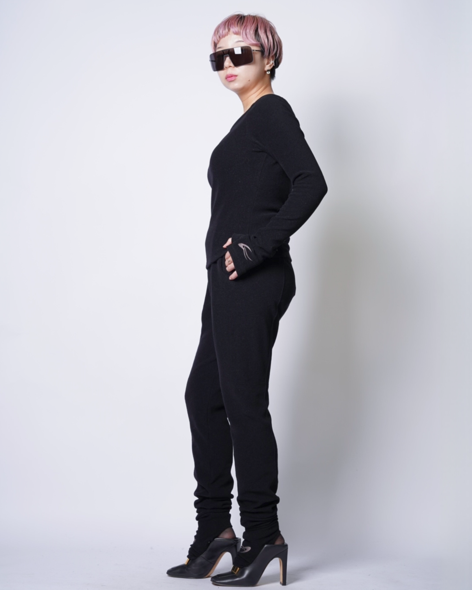 ・今シーズンの「彫刻的リラックスウェア」というコンセプトのシリーズの1つで、薄手のパイル調ウール100%のジャージーのため軽やかで暖かく、快適に過ごせるように意図したデザインとなっています。