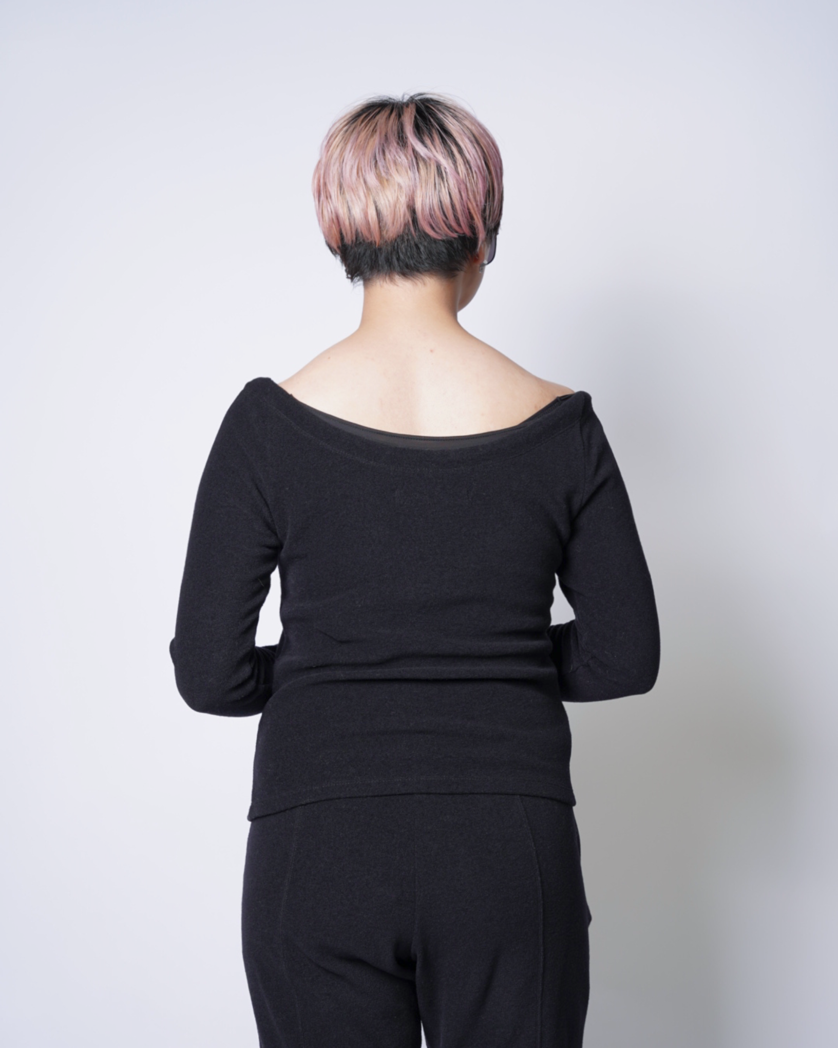 ・スッキリとして首回りながら、綺麗に落ちるドレープがYOHEI OHNOらしい立体的な造形を作り出しています。