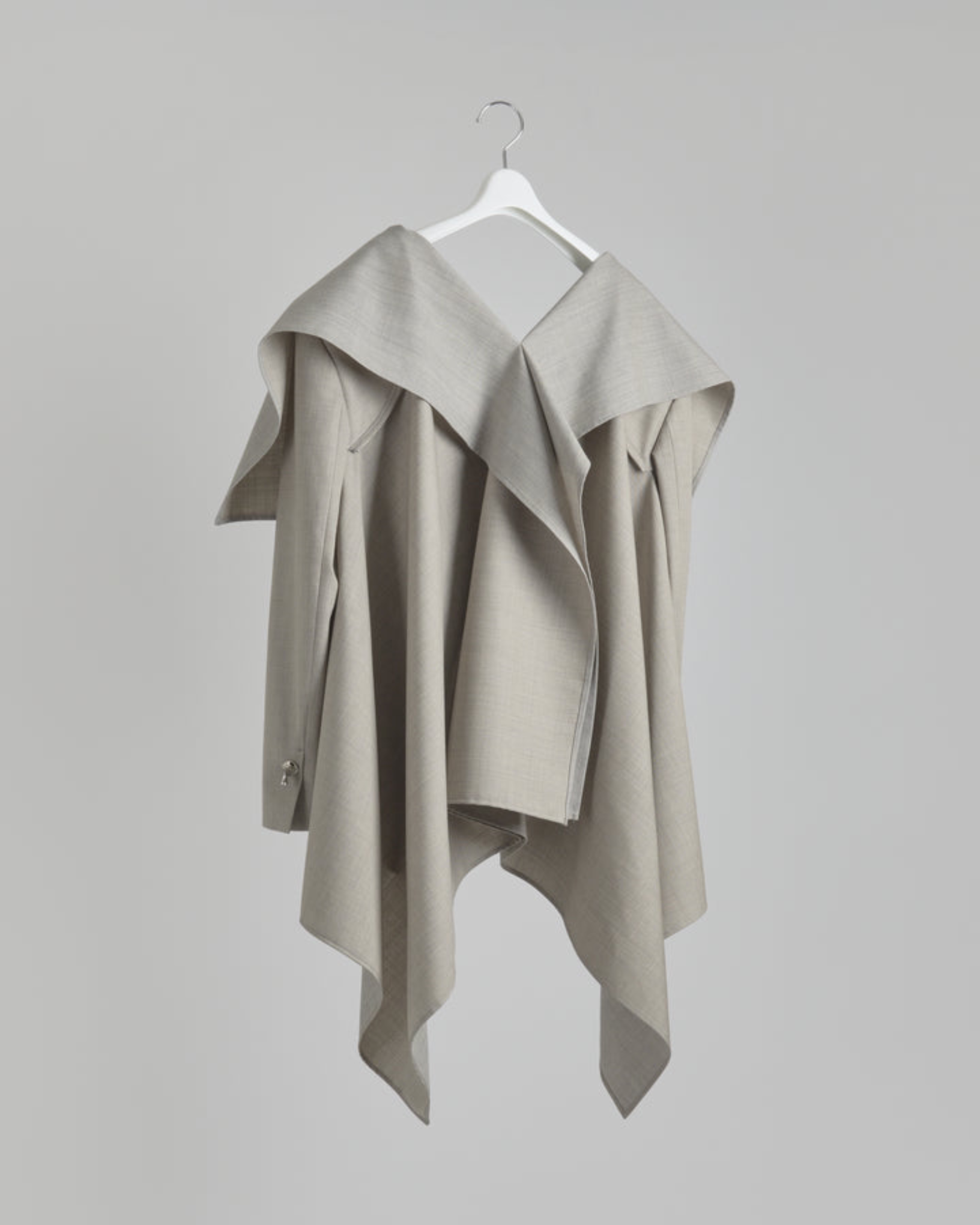 ・「四角形の布に穴をあけて、袖(肩)をとりつける。」というアイデアから生まれたジャケット。