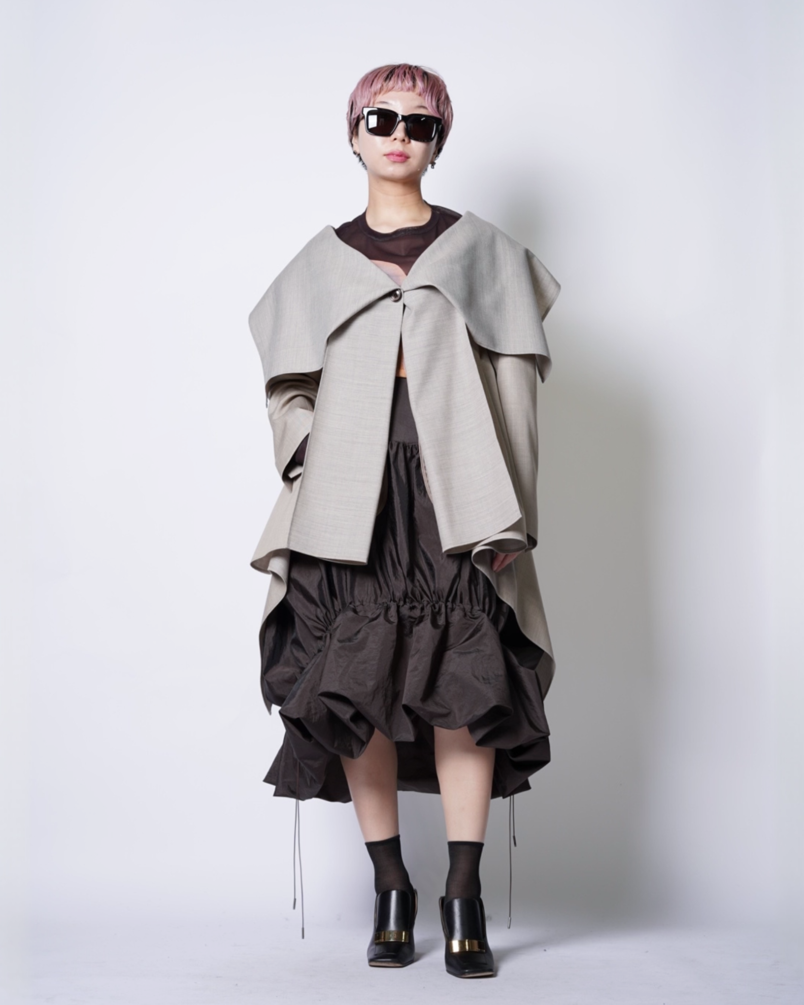 ・程よいハリのある生地感により更に立体感のあるシルエットを作り上げています。