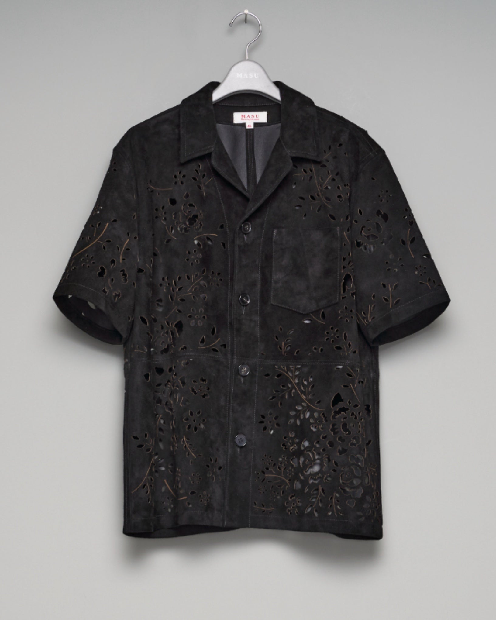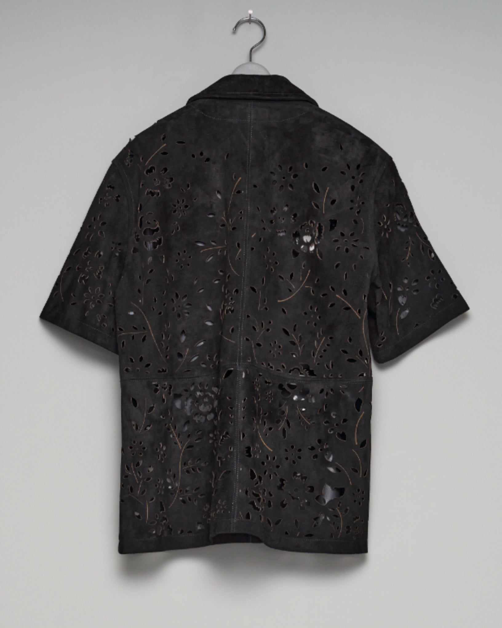 ゴートスウェードを使用、シグネチャーであるレーザーカットの技術を応用。