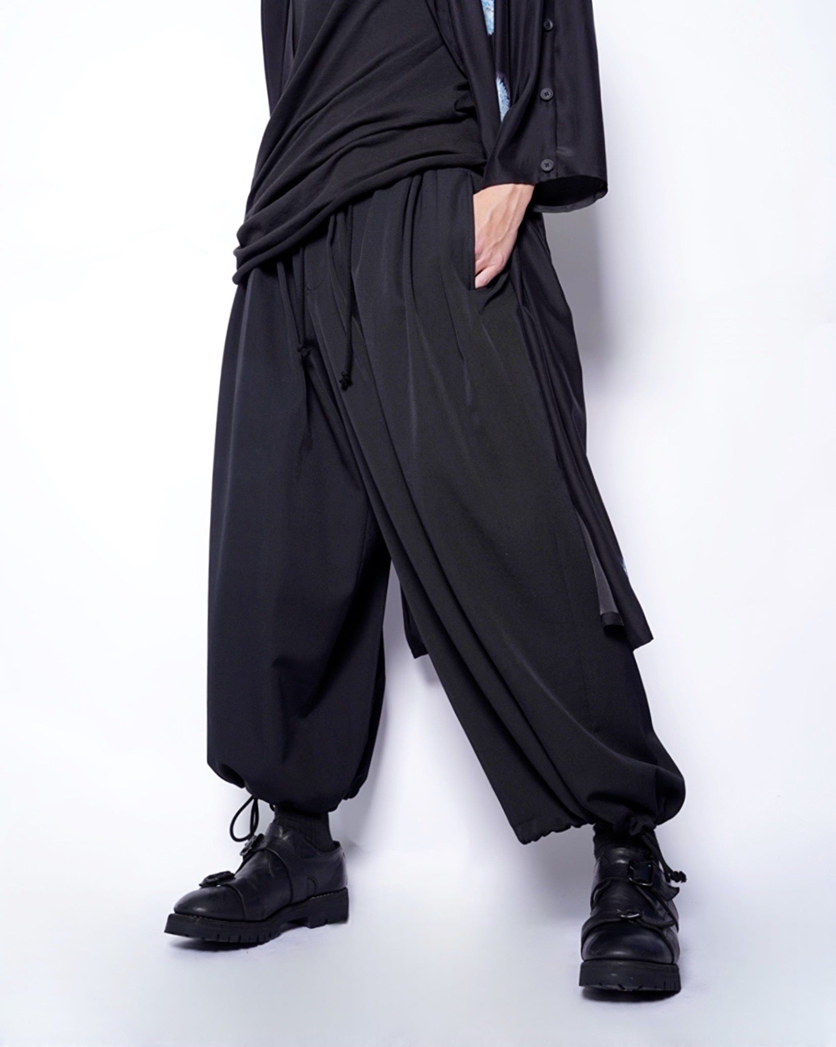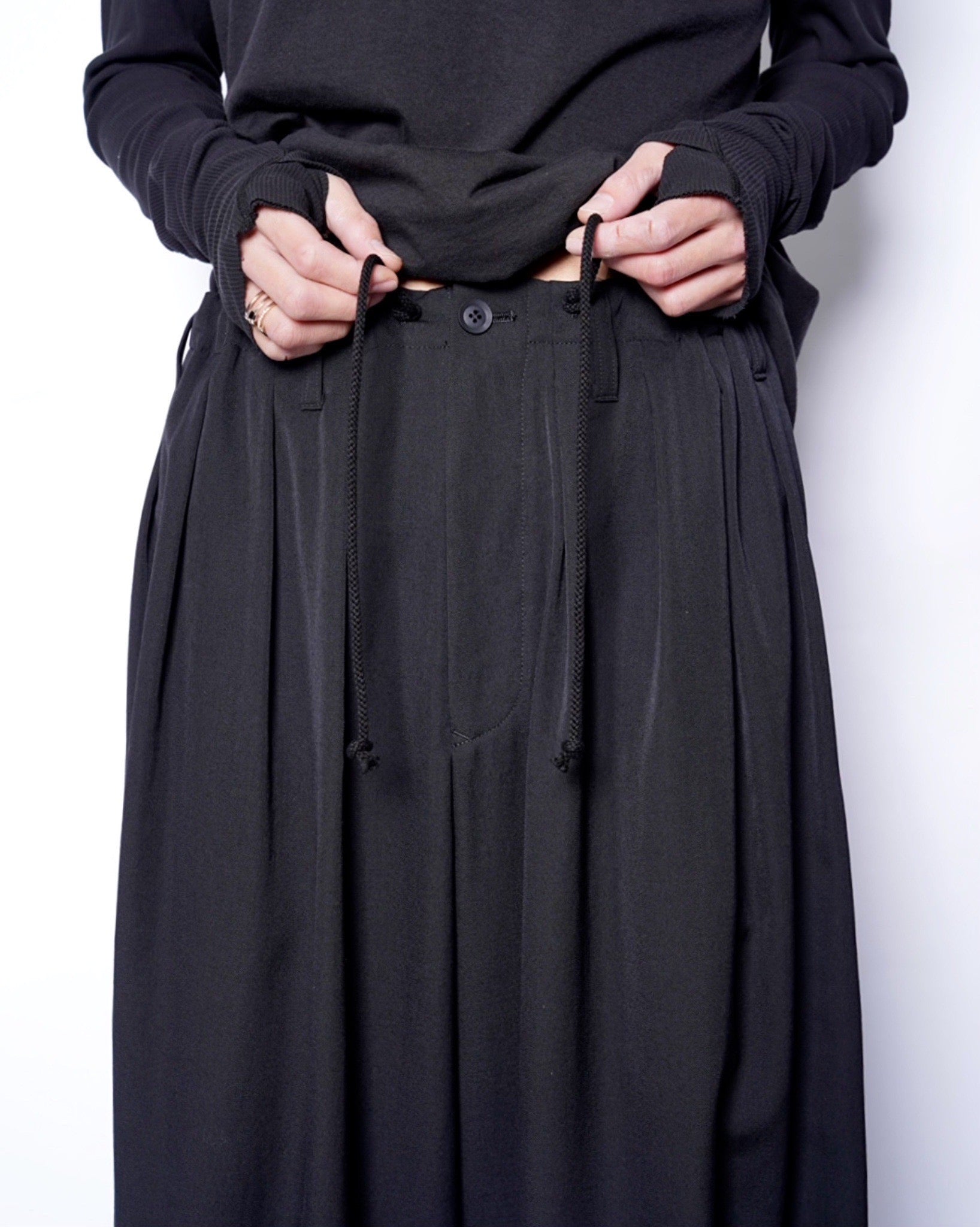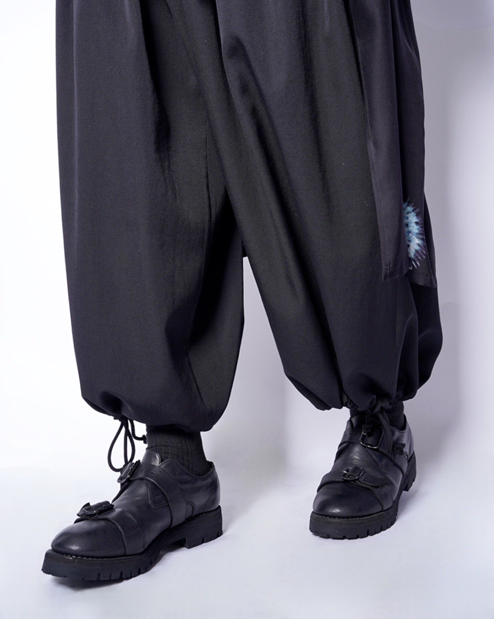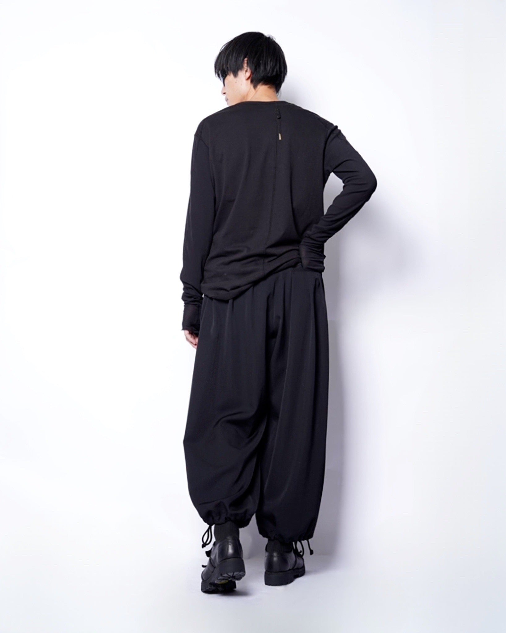 ・ワイドシルエットでゆったりとしたウエスト周り、落ち感のある素材感による、Yohji Yamamotoらしさを象徴するようなパンツ。