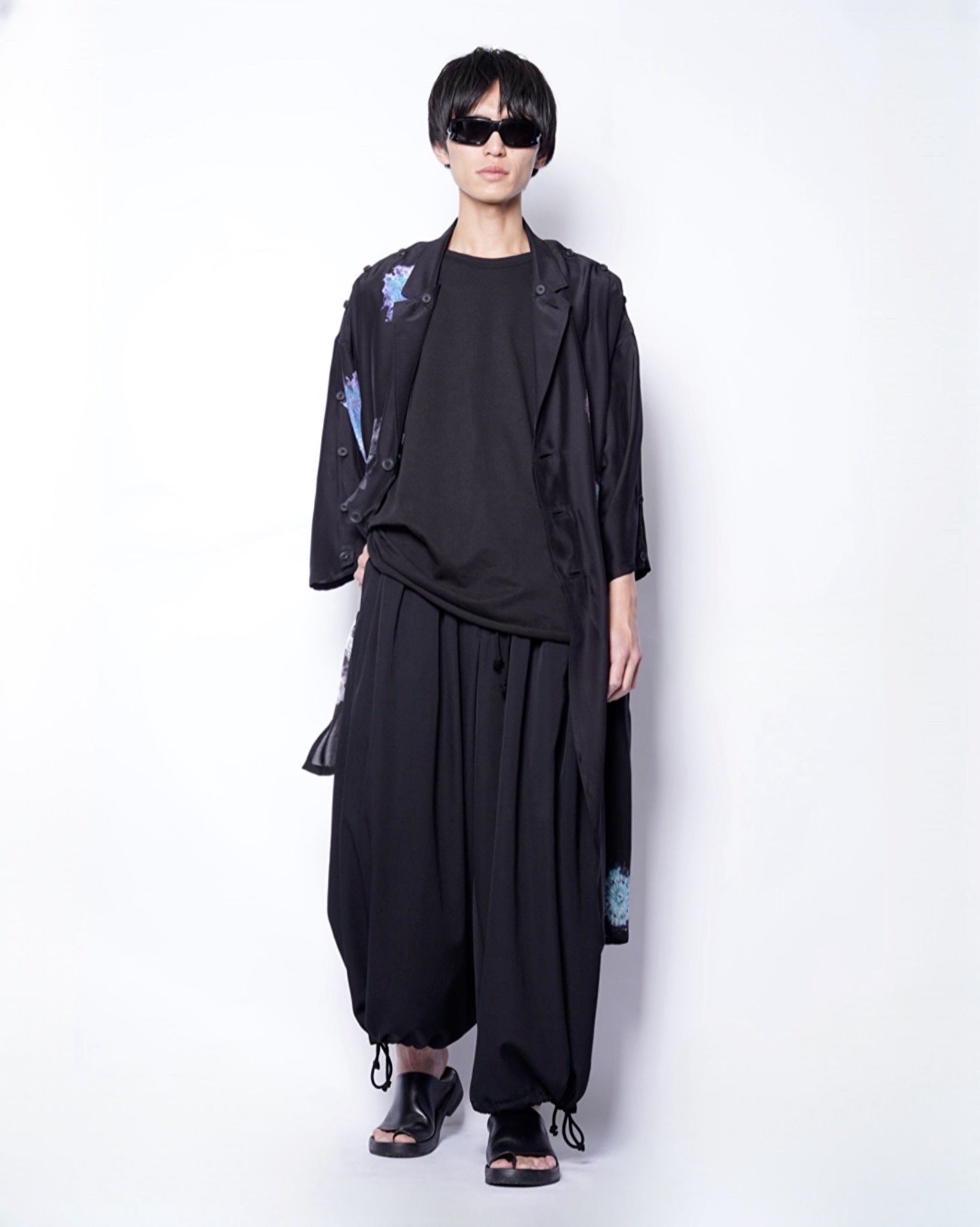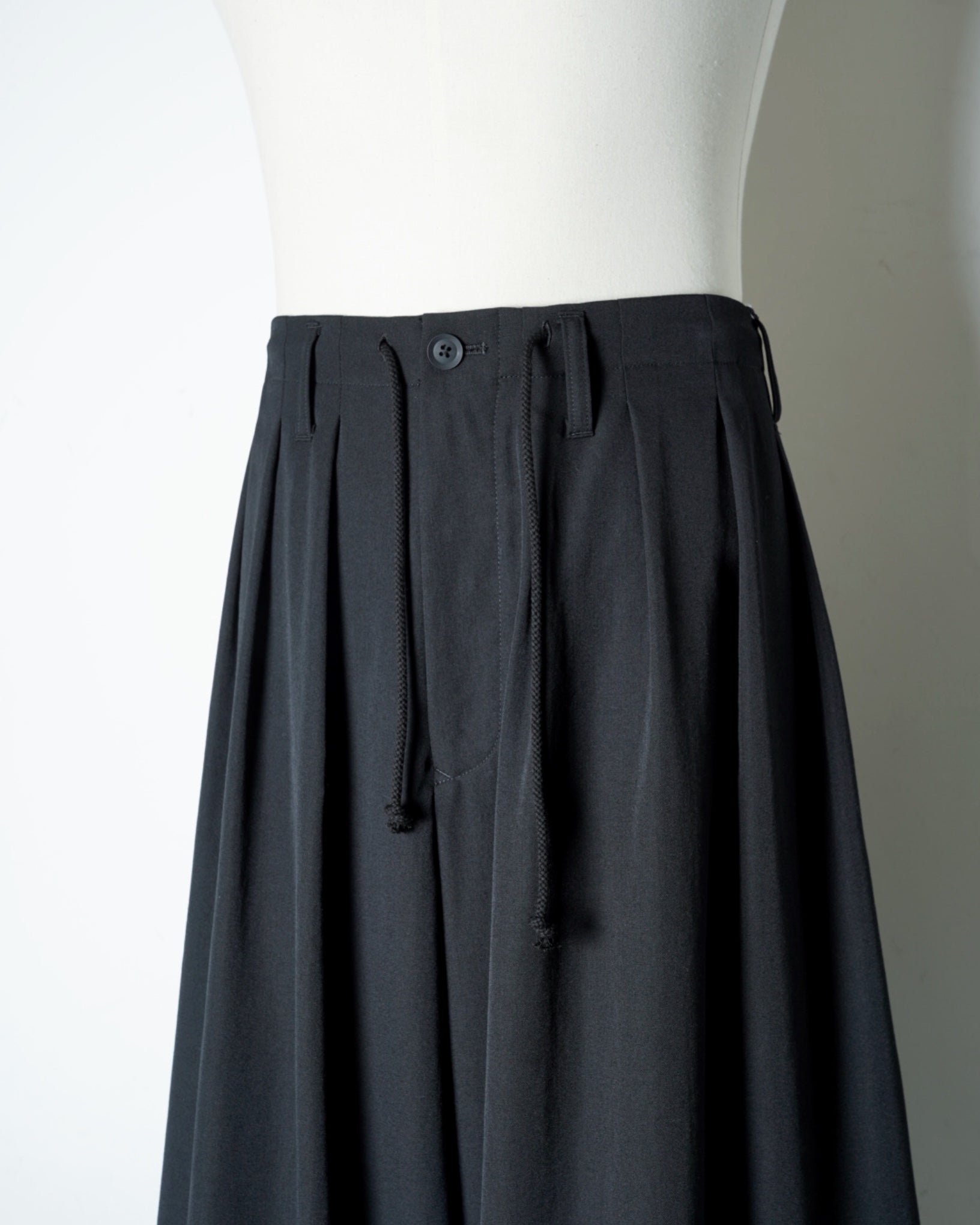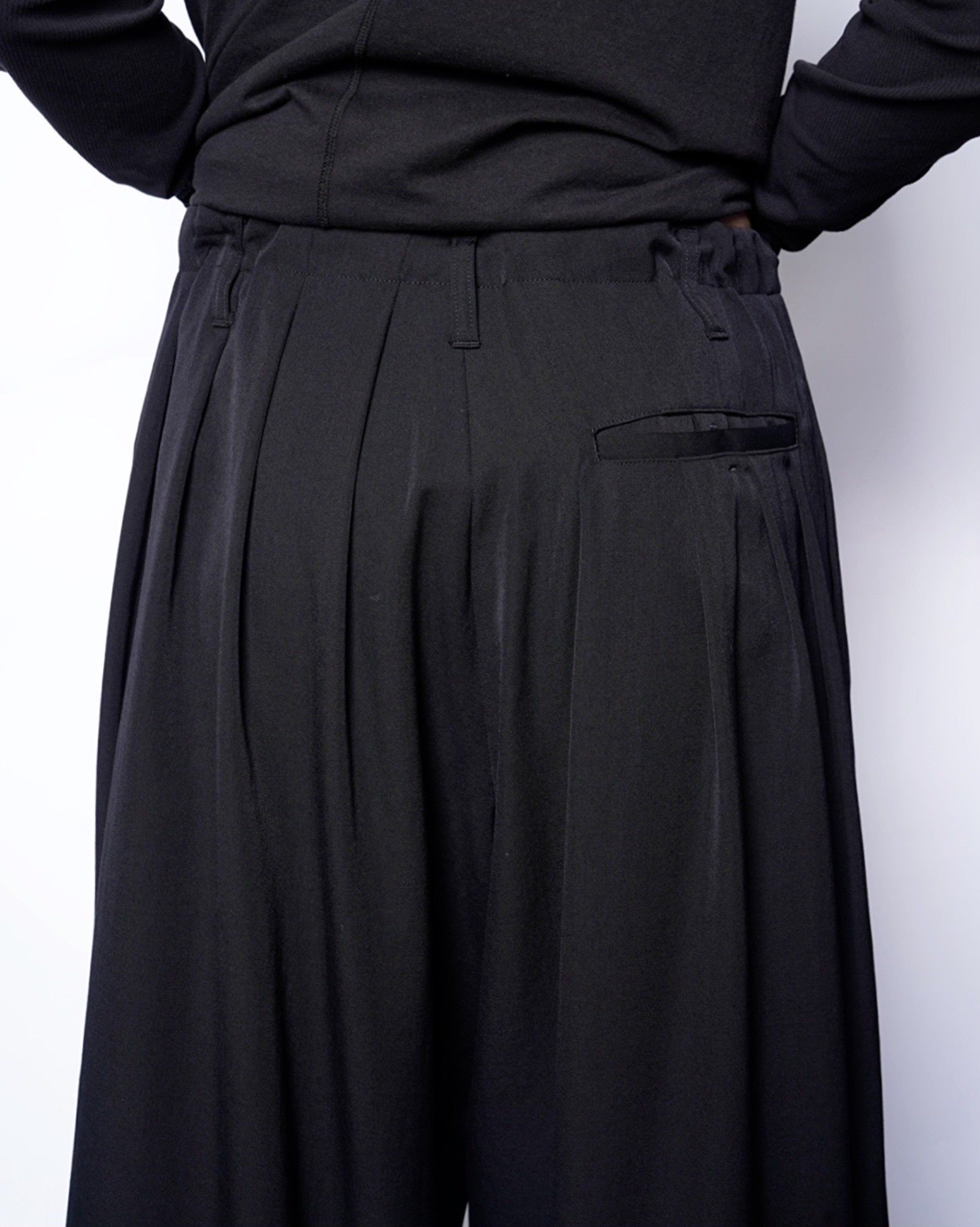 ・ワイドシルエットでゆったりとしたウエスト周り、落ち感のある素材感による、Yohji Yamamotoらしさを象徴するようなパンツ。