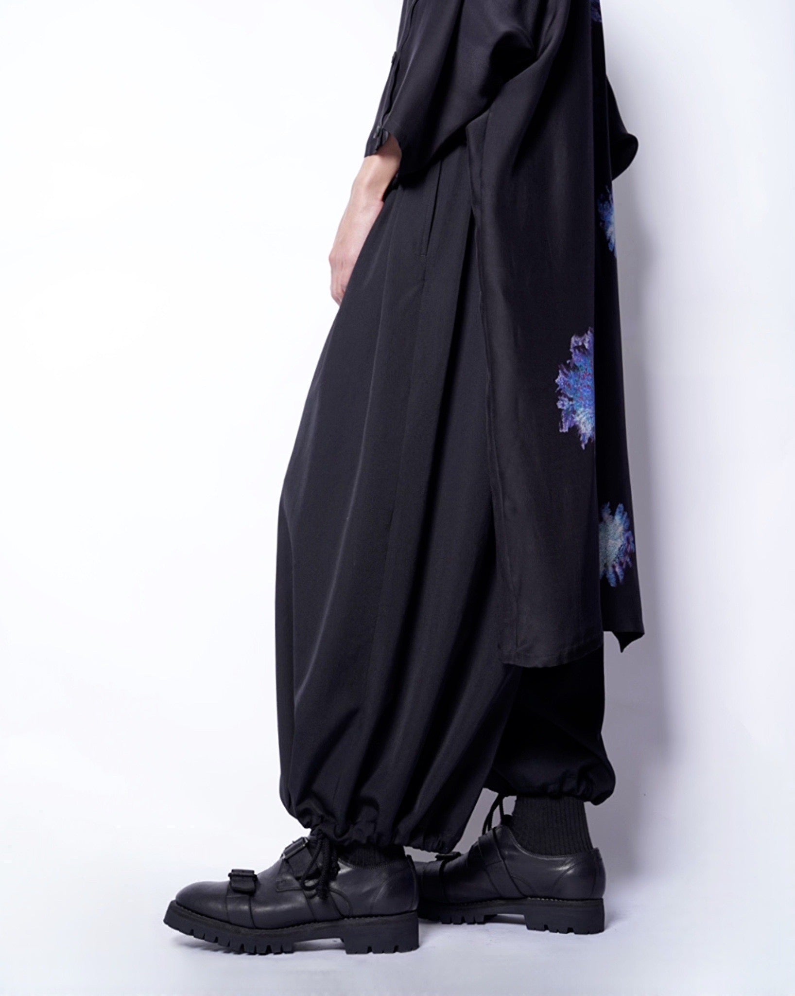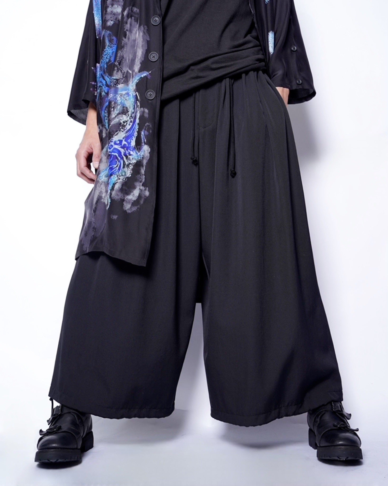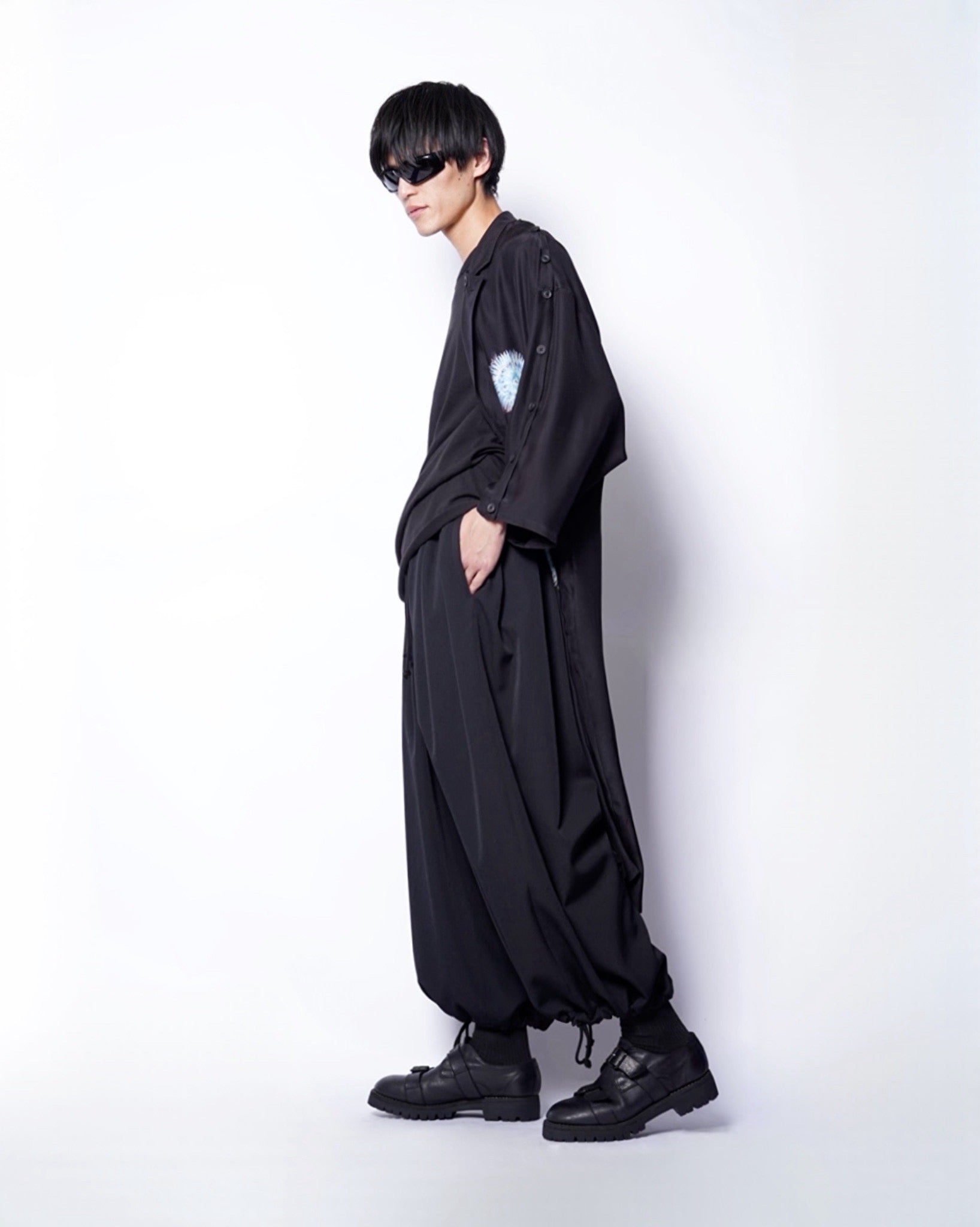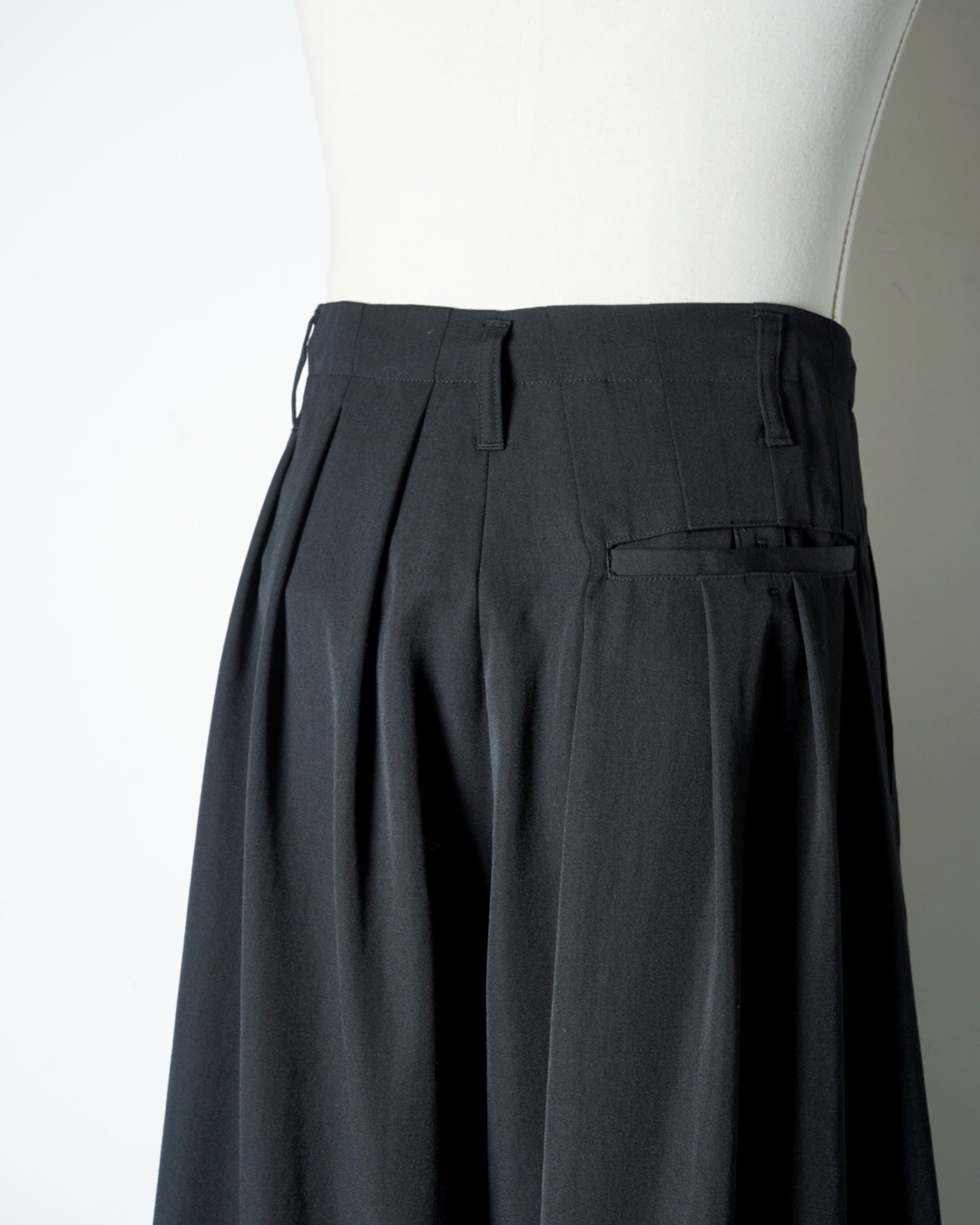 ・ワイドシルエットでゆったりとしたウエスト周り、落ち感のある素材感による、Yohji Yamamotoらしさを象徴するようなパンツ。