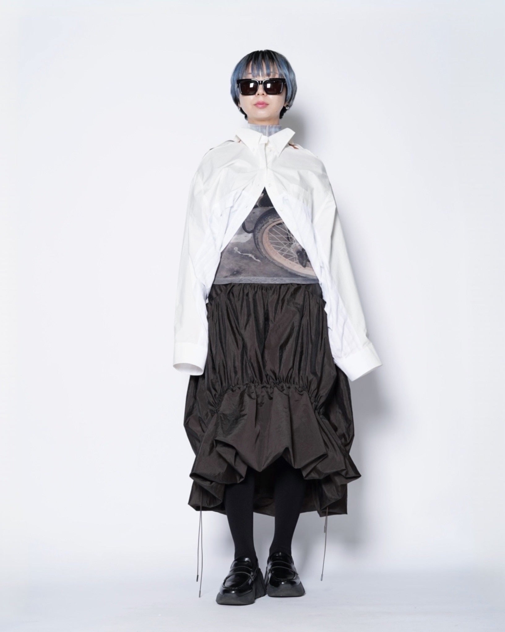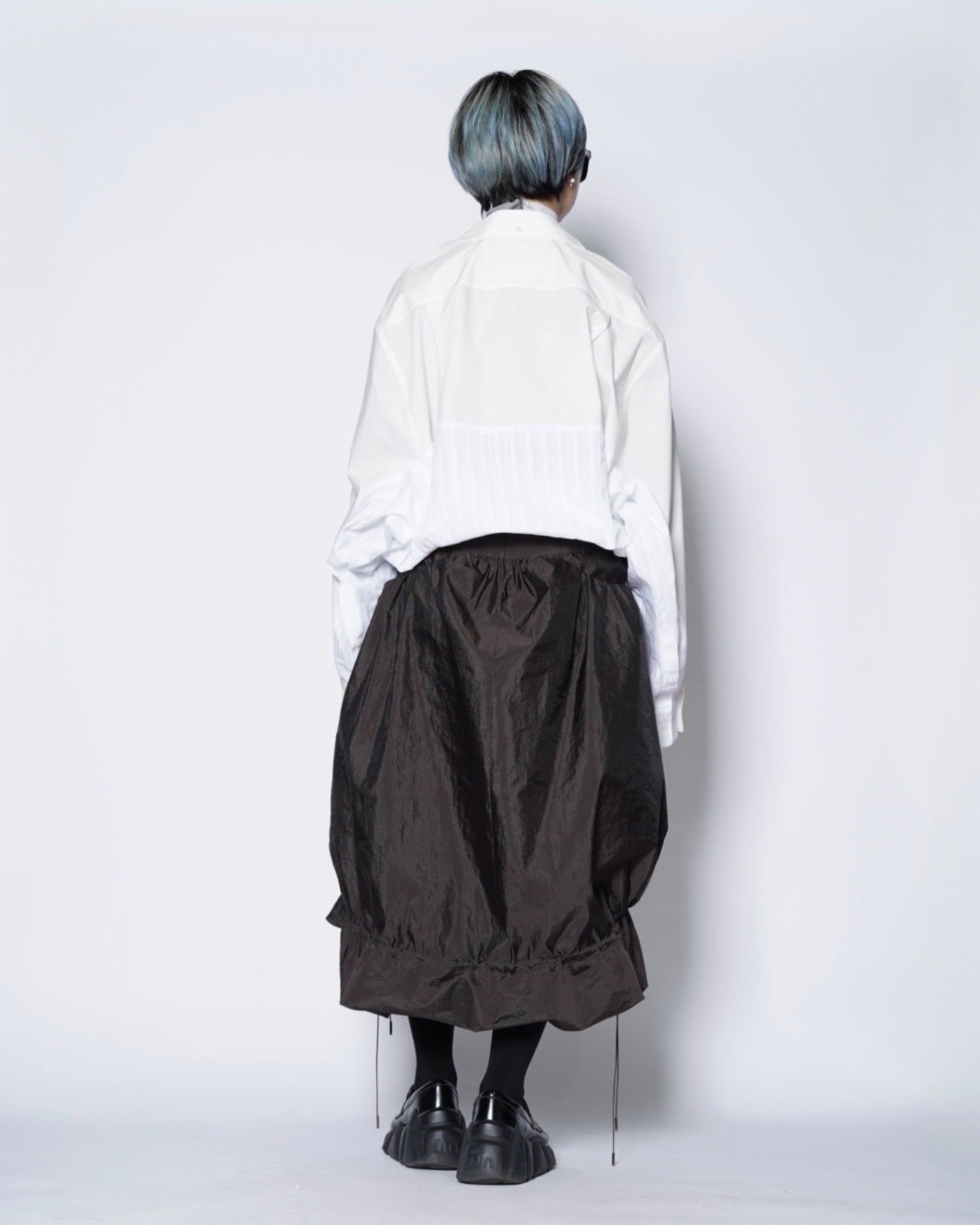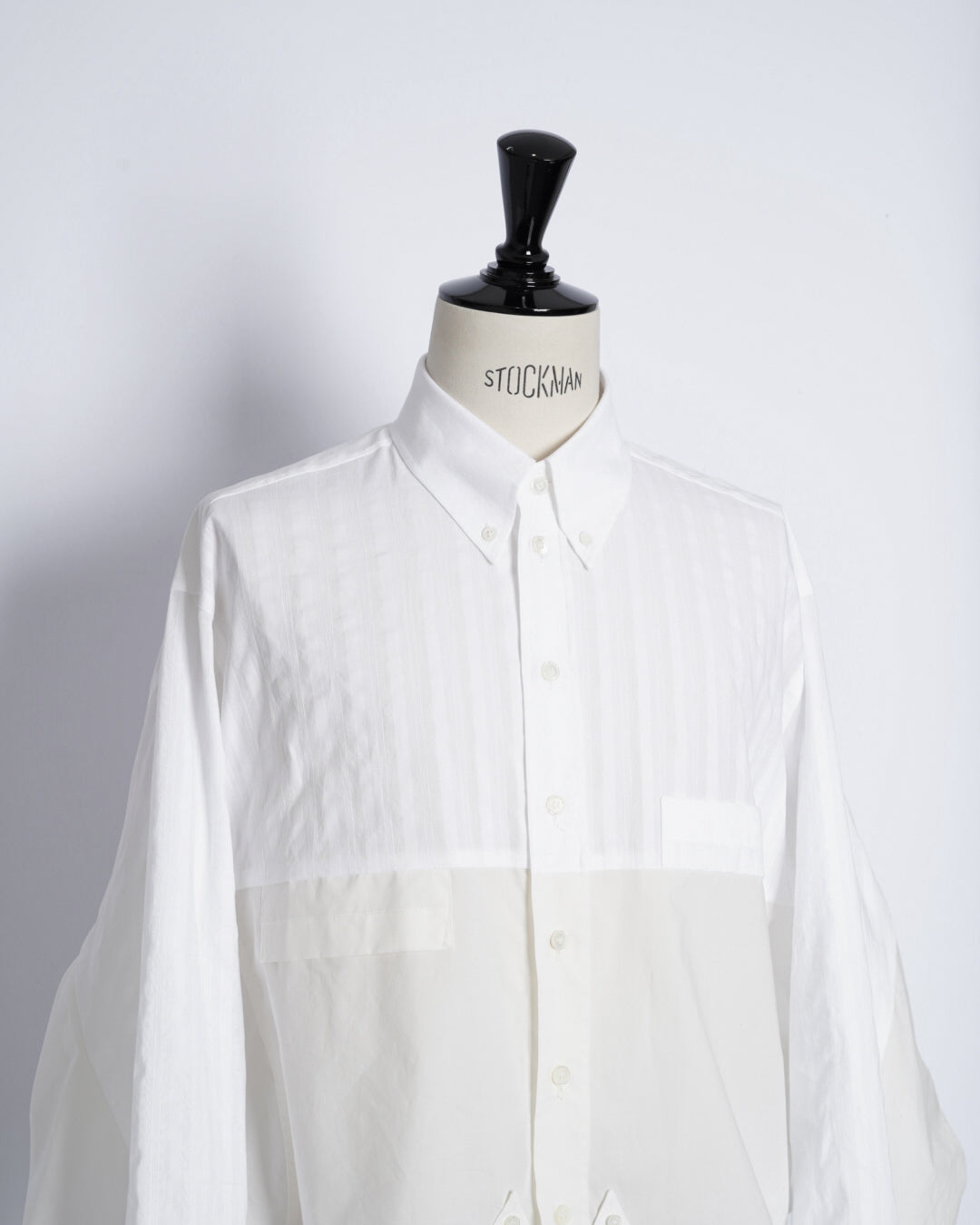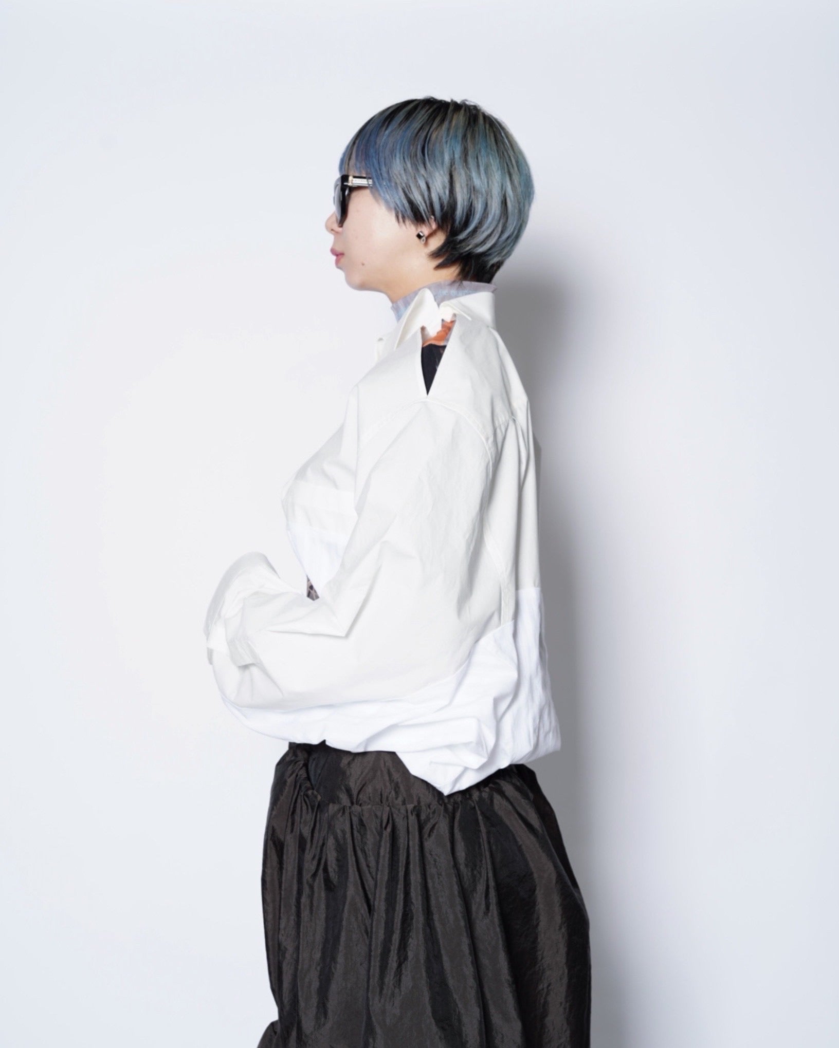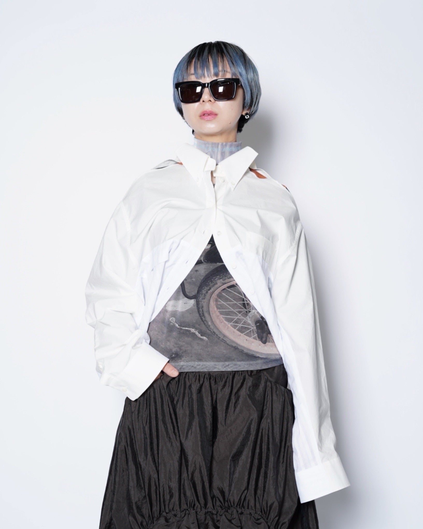 ・異なる素材のシャツを上下でドッキングした、マルタンマルジェラ期のメゾンマルジェラを彷彿とさせる、ユニークな再構築デザイン。