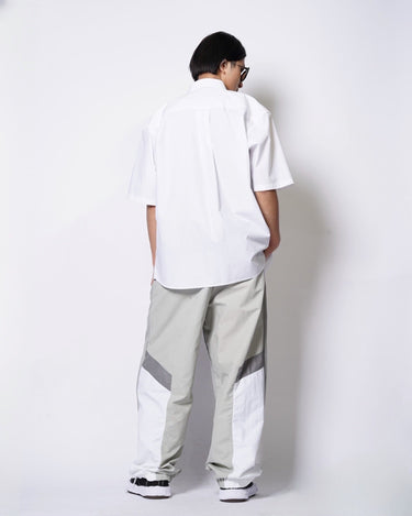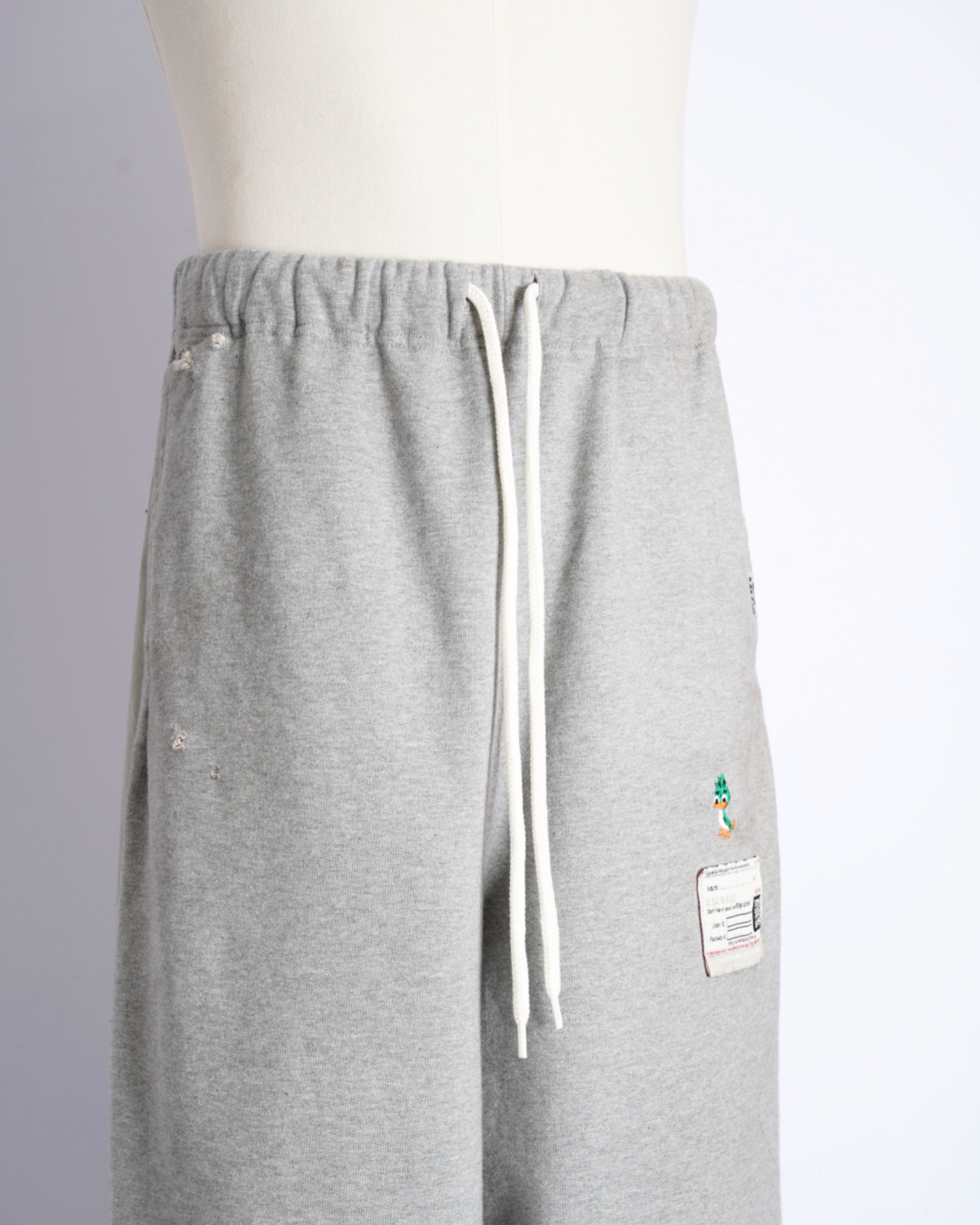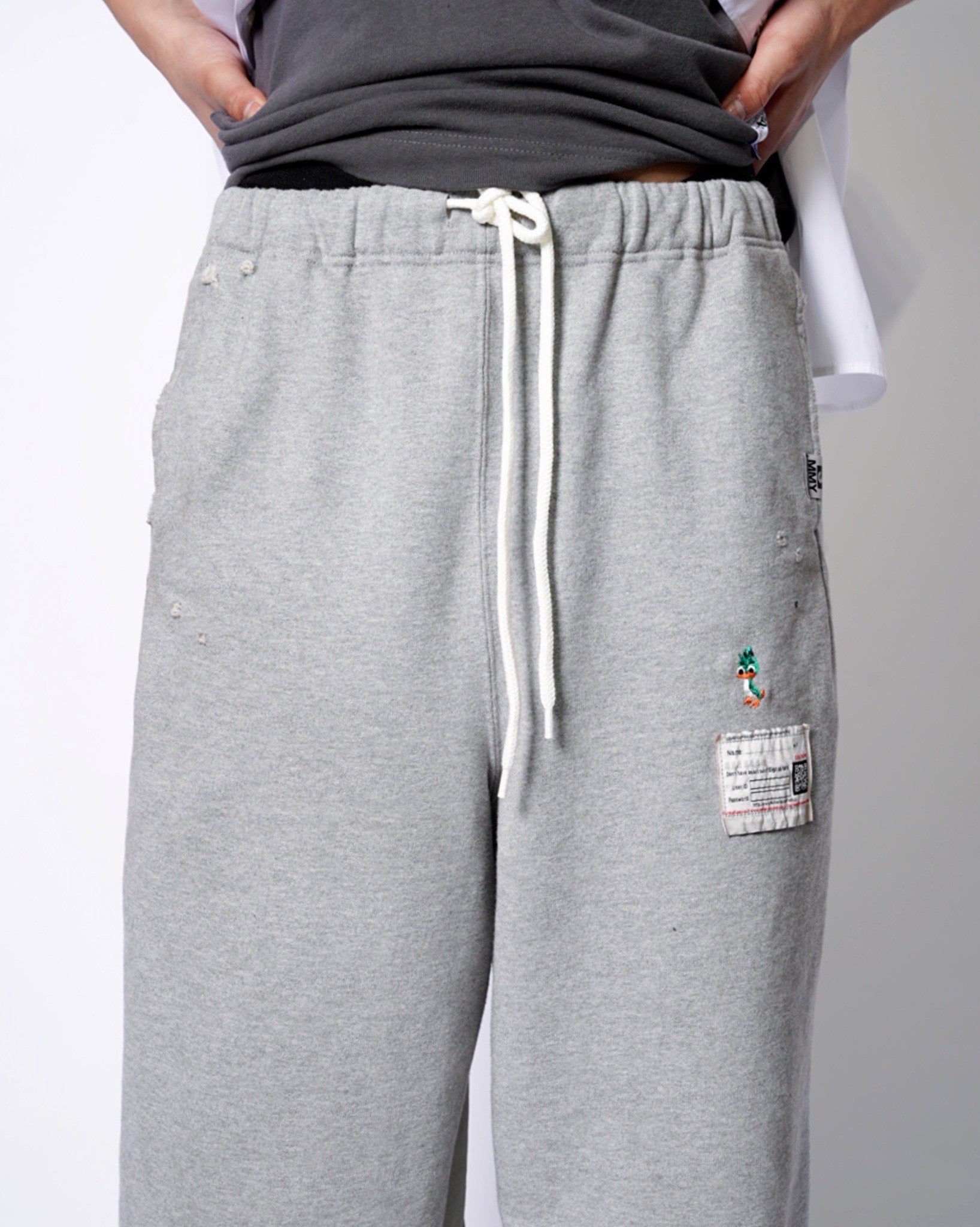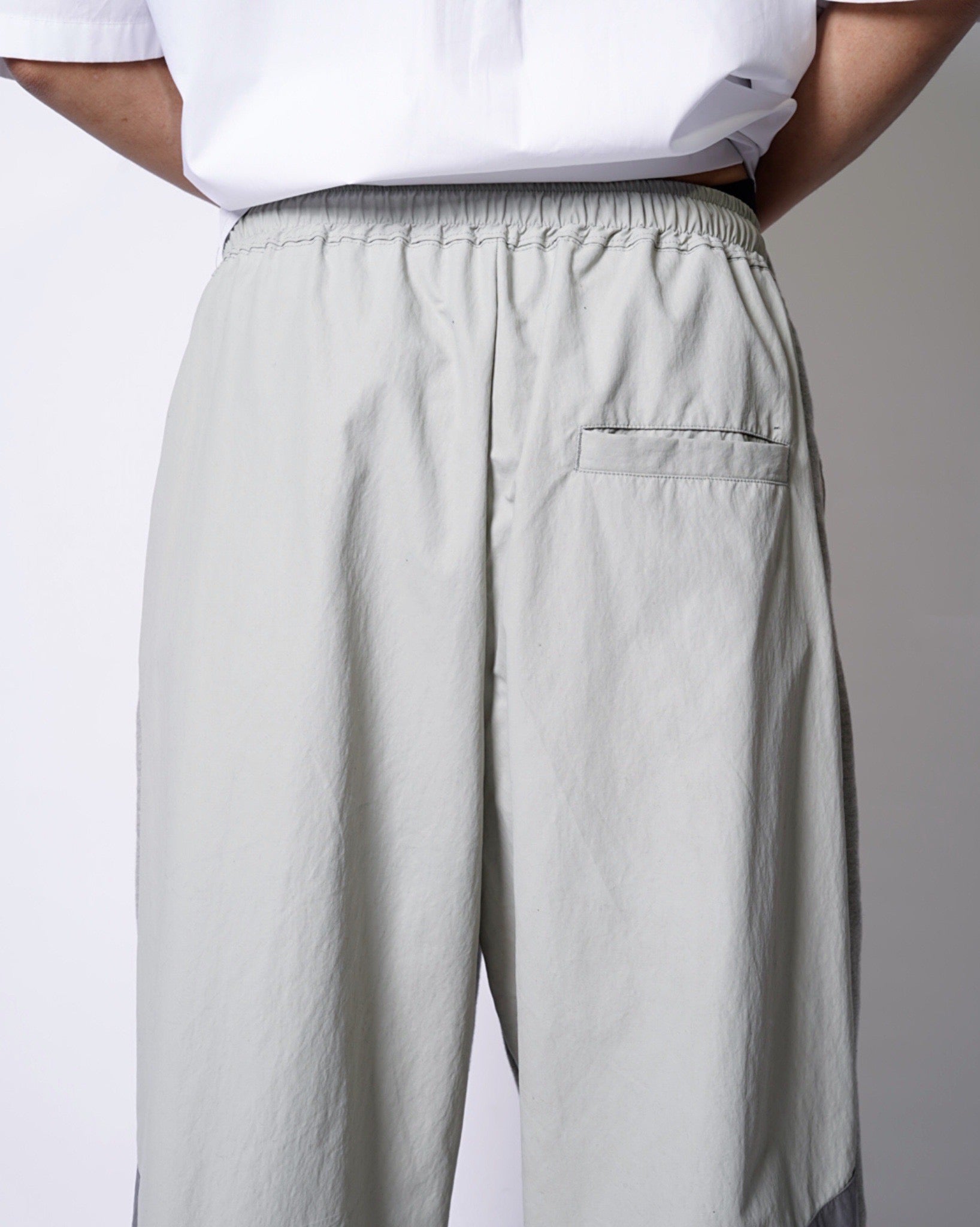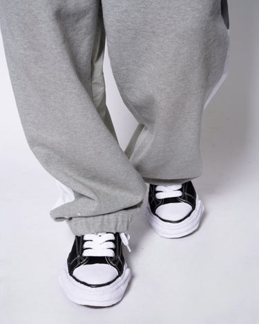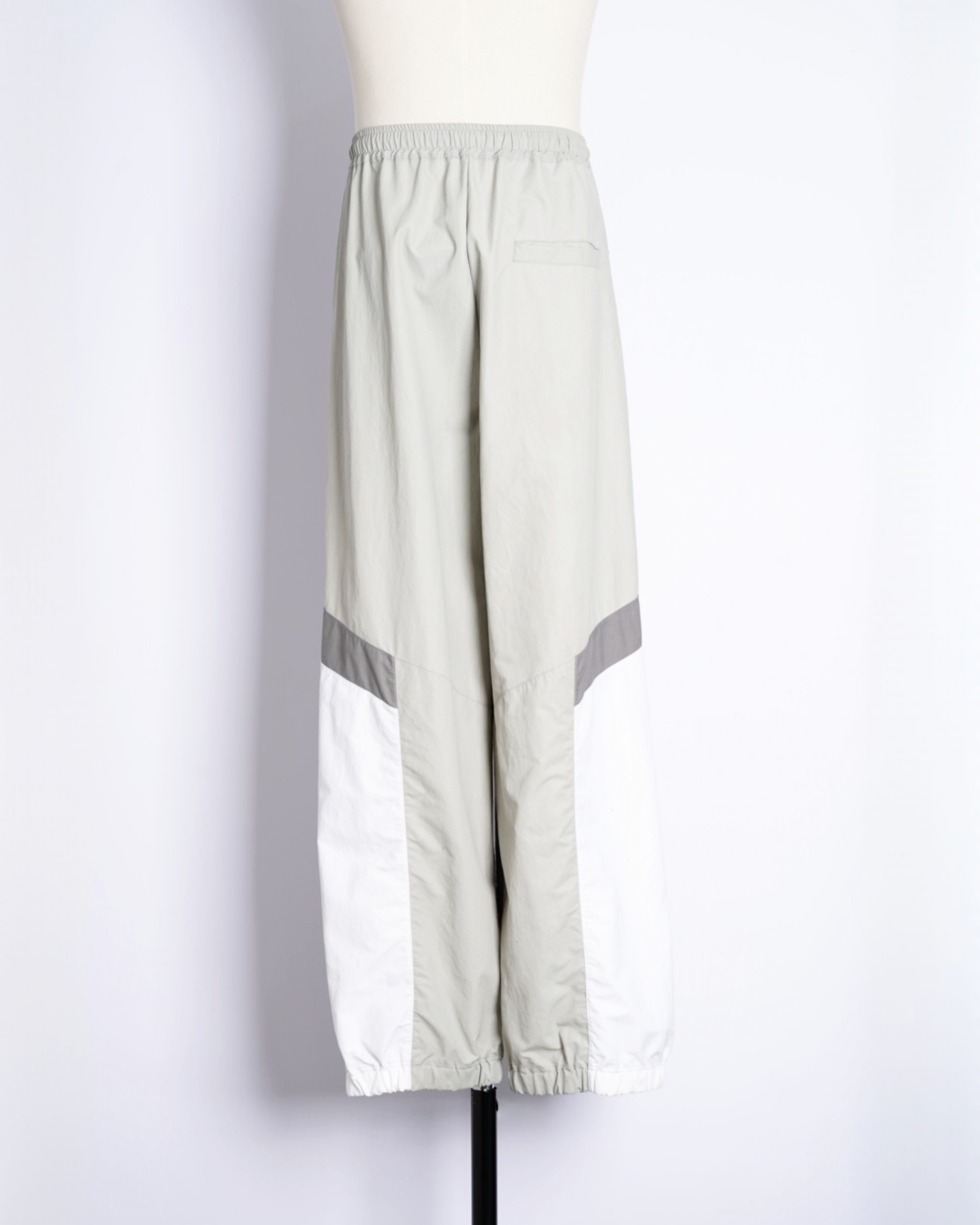 ・スウェットパンツとトラックジャケットをハーフでドッキングした、ミハラヤスヒロらしいユニークで大胆なデザイン。