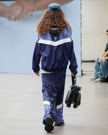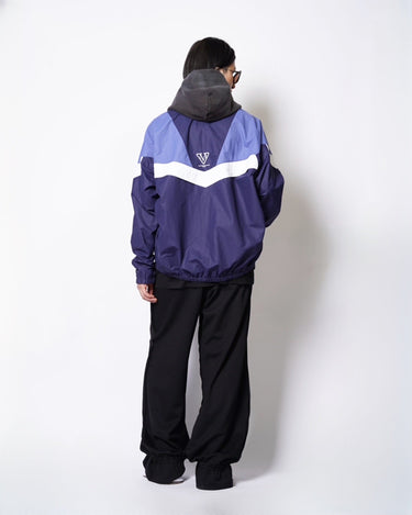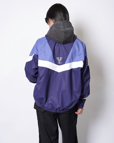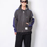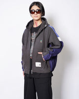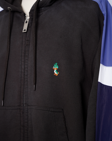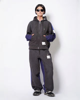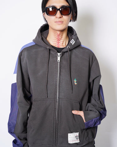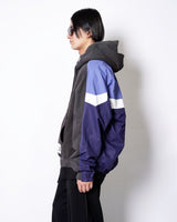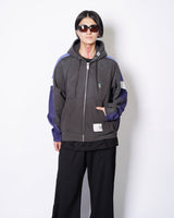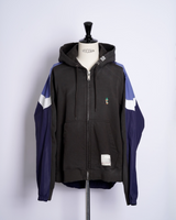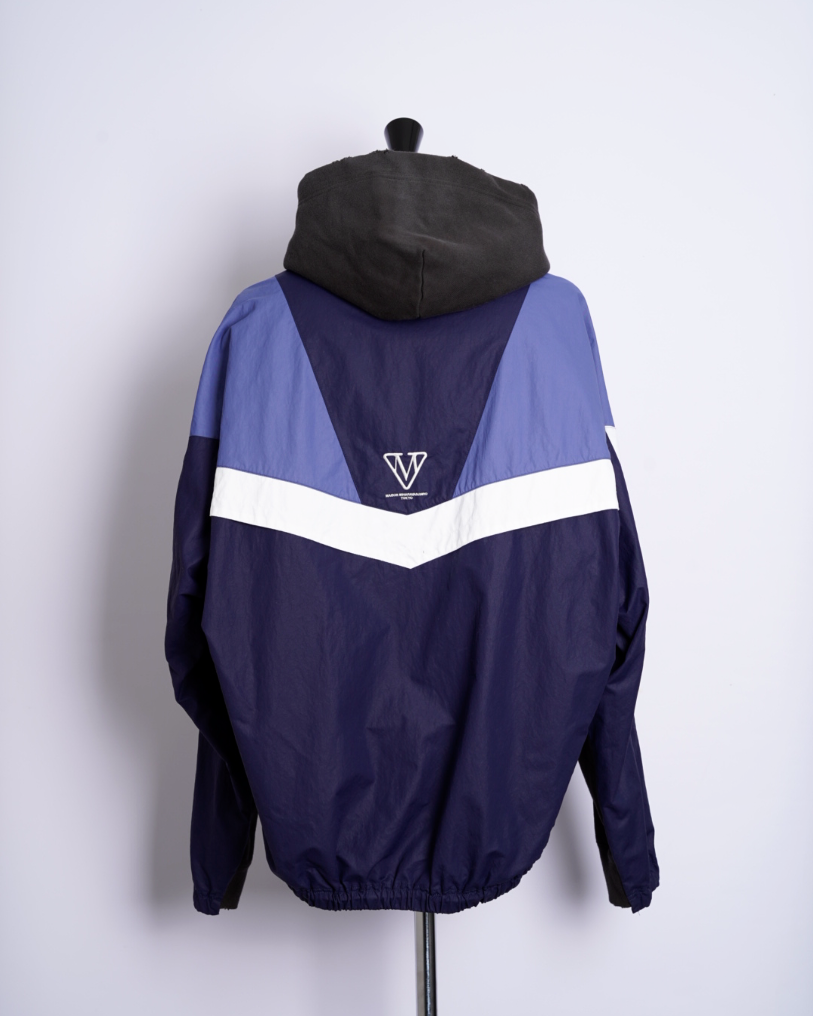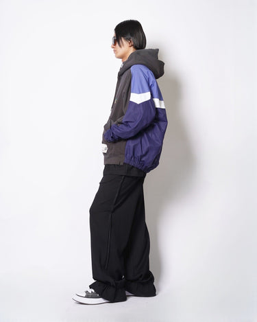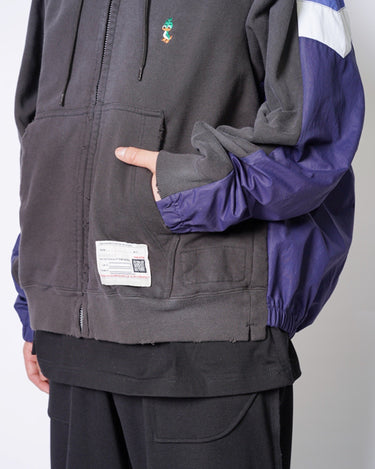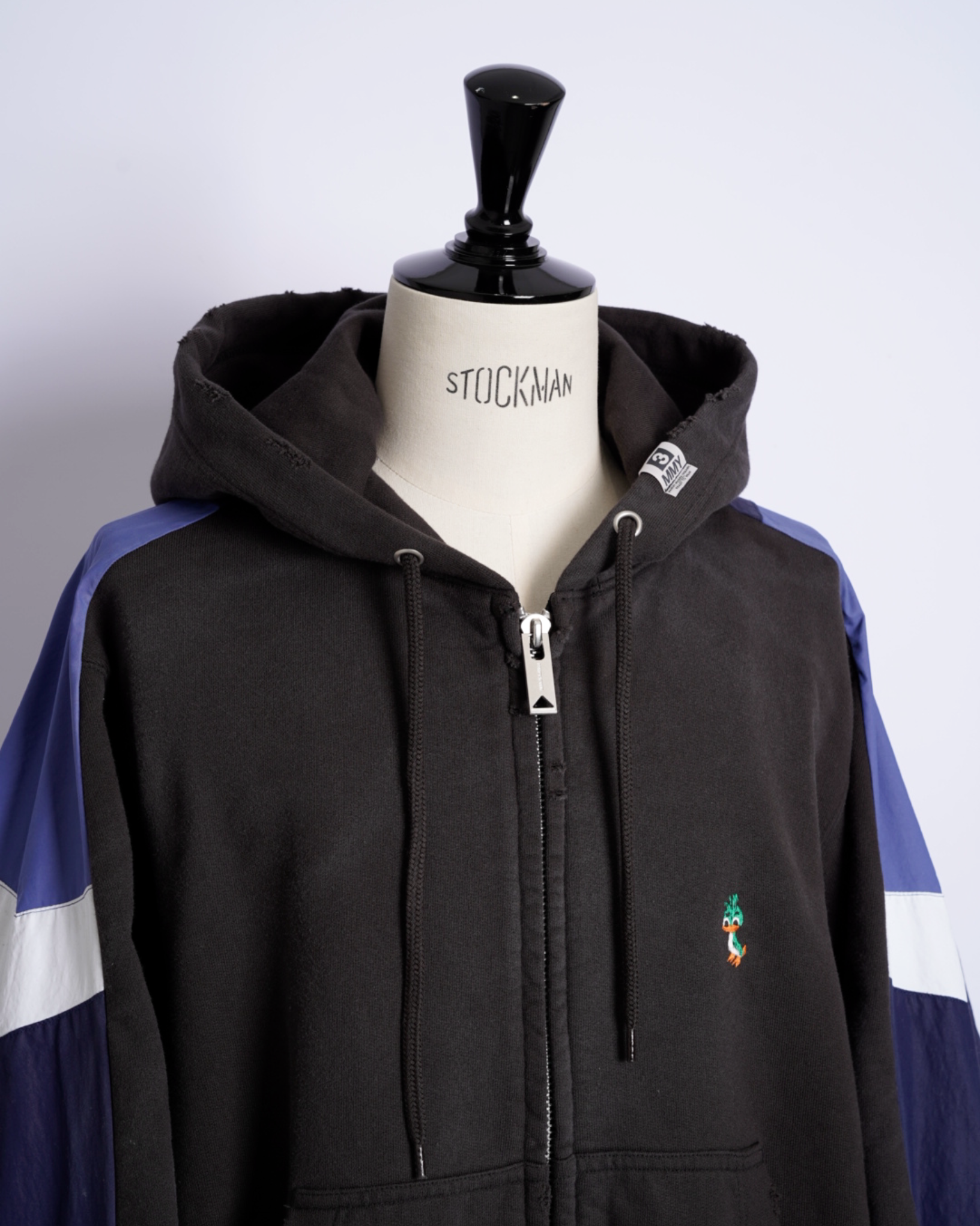 ・フーディーとトラックジャケットをハーフでドッキングした、ミハラヤスヒロらしいユニークで大胆なデザイン。
