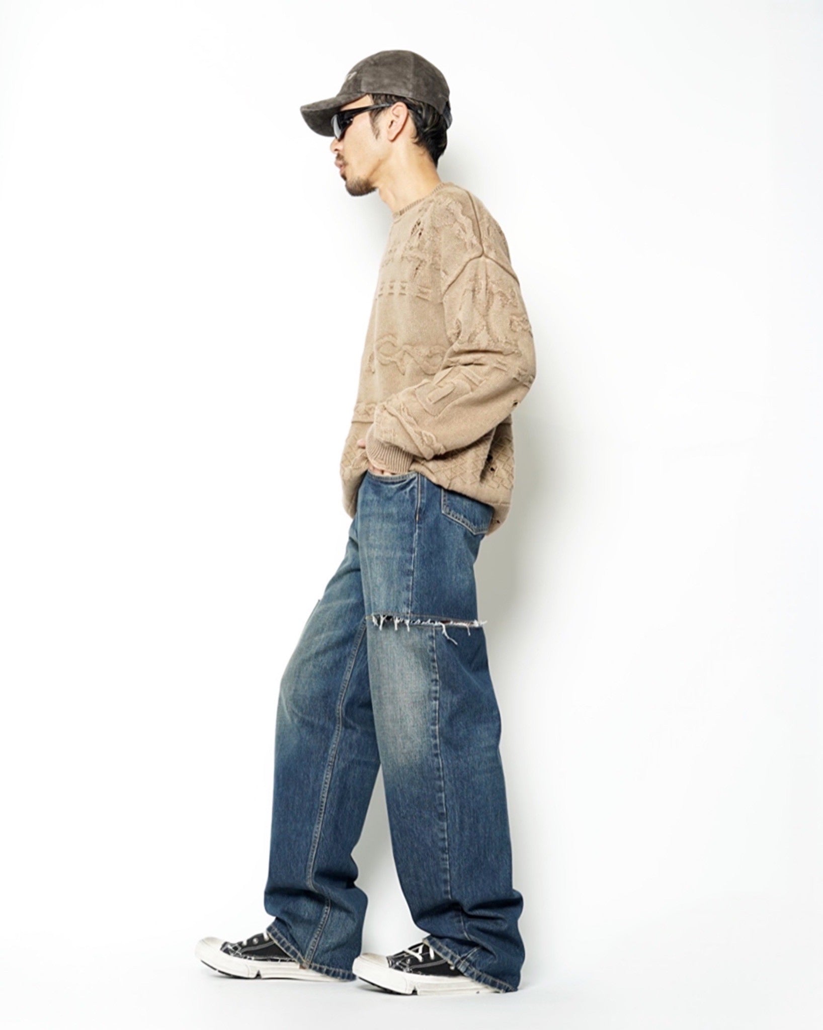 ・普遍的なデニムパンツに脱構築的なデザインを入れることにより、パッと目を引き付ける、心地よい違和感を感じるアクセントに。