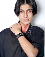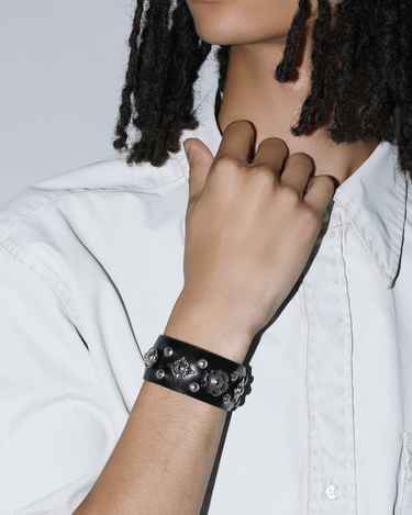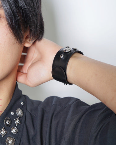 ・楽に付けていただけるバングルながら、エッジの効いたメタルパーツでモードなアイテムとなっています。