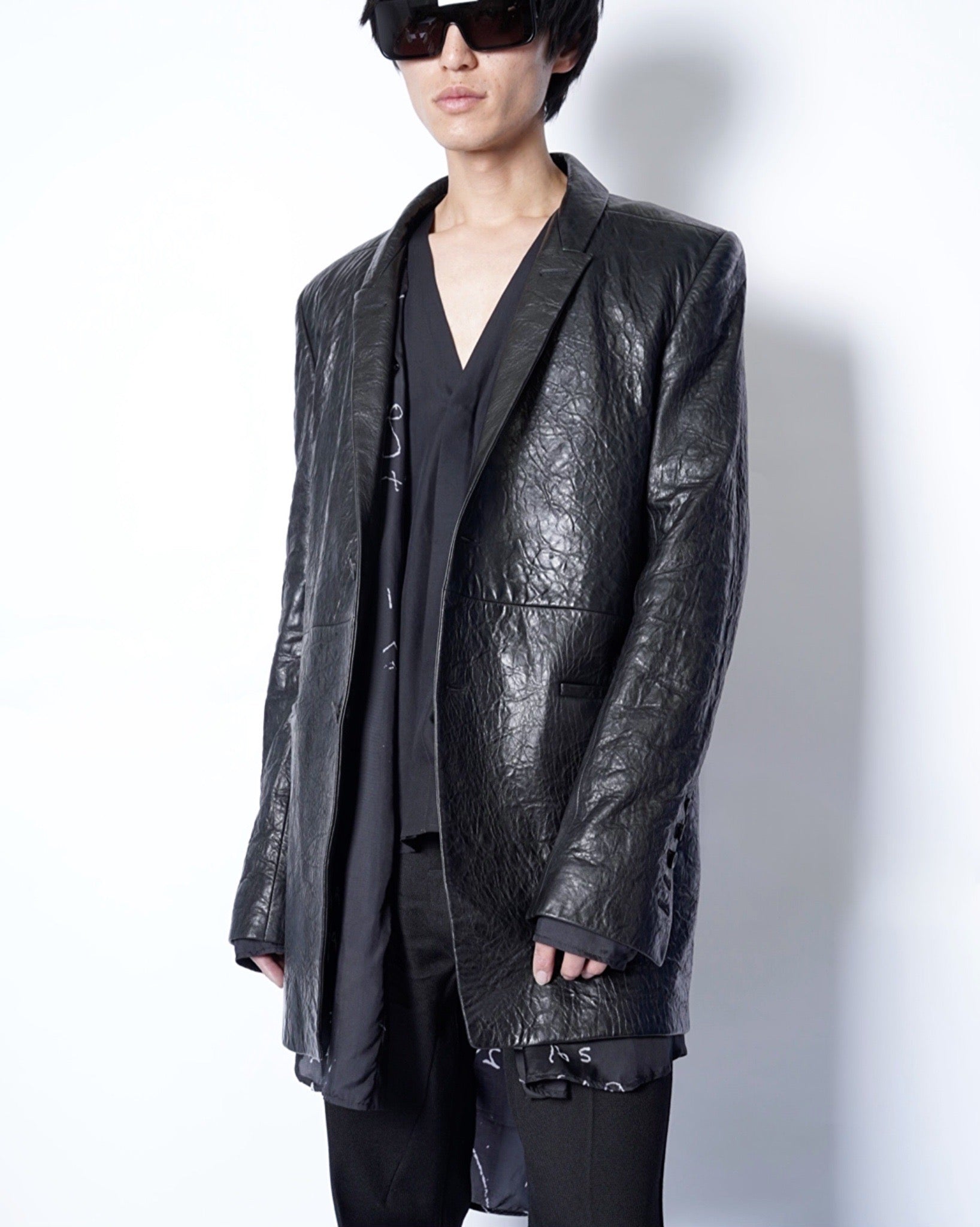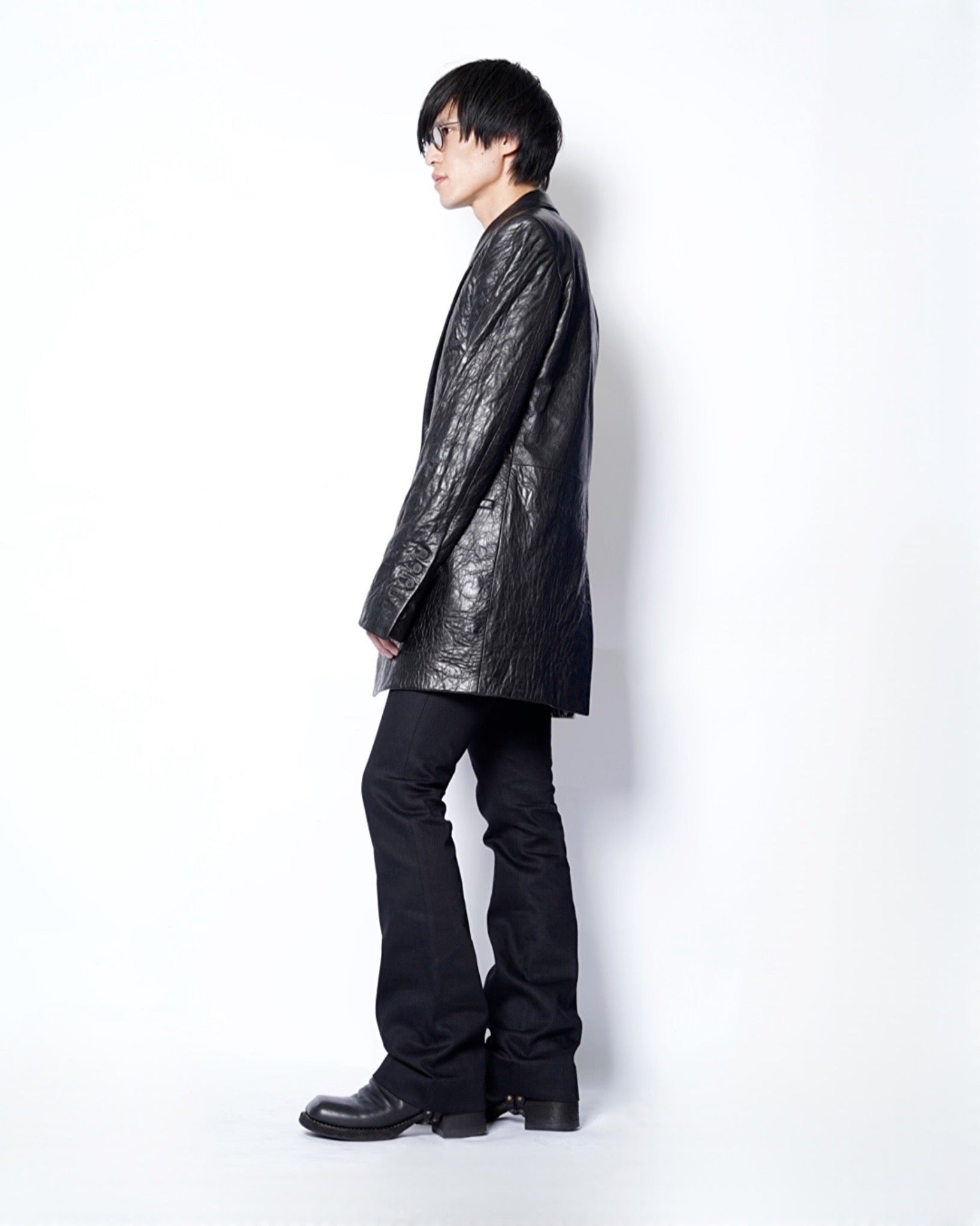 ・エッジの効いたフォルムと意匠が特徴的な、Rick Owensらしさを表したような一着。