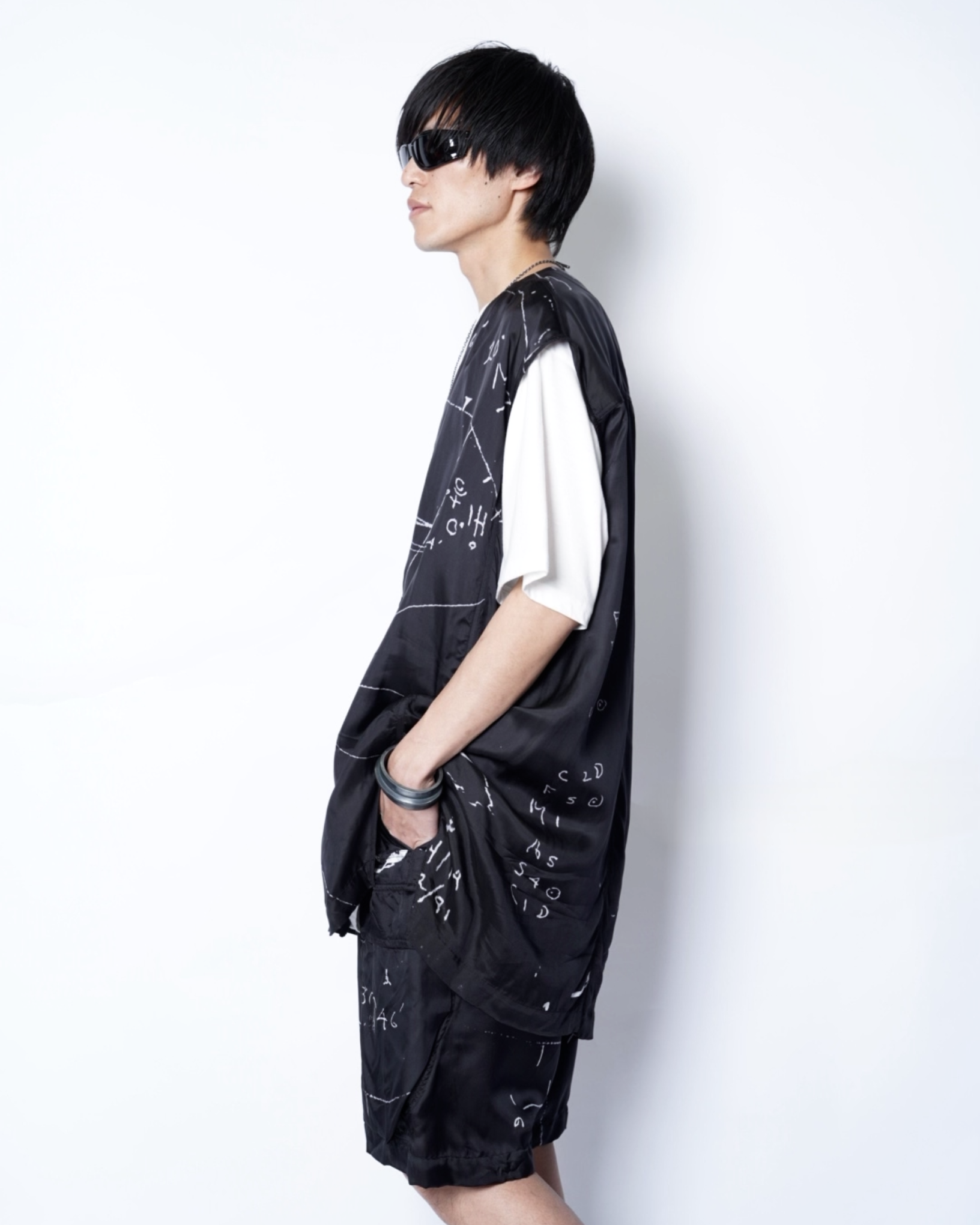 ・オーバーサイジングでドレーピーにドロップしたフォルムも特徴的で、特徴的なグラフィックの存在感が一層際立っています。