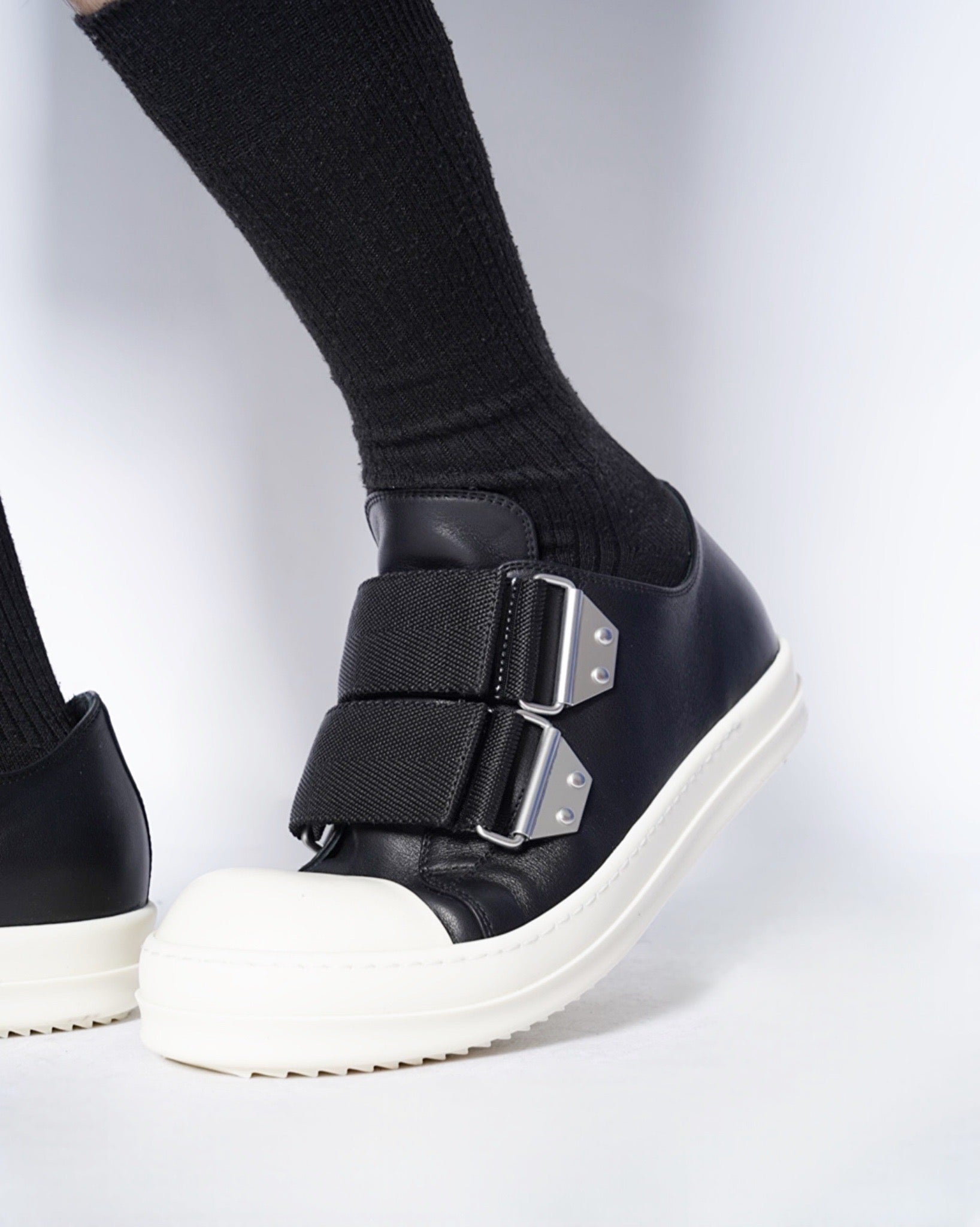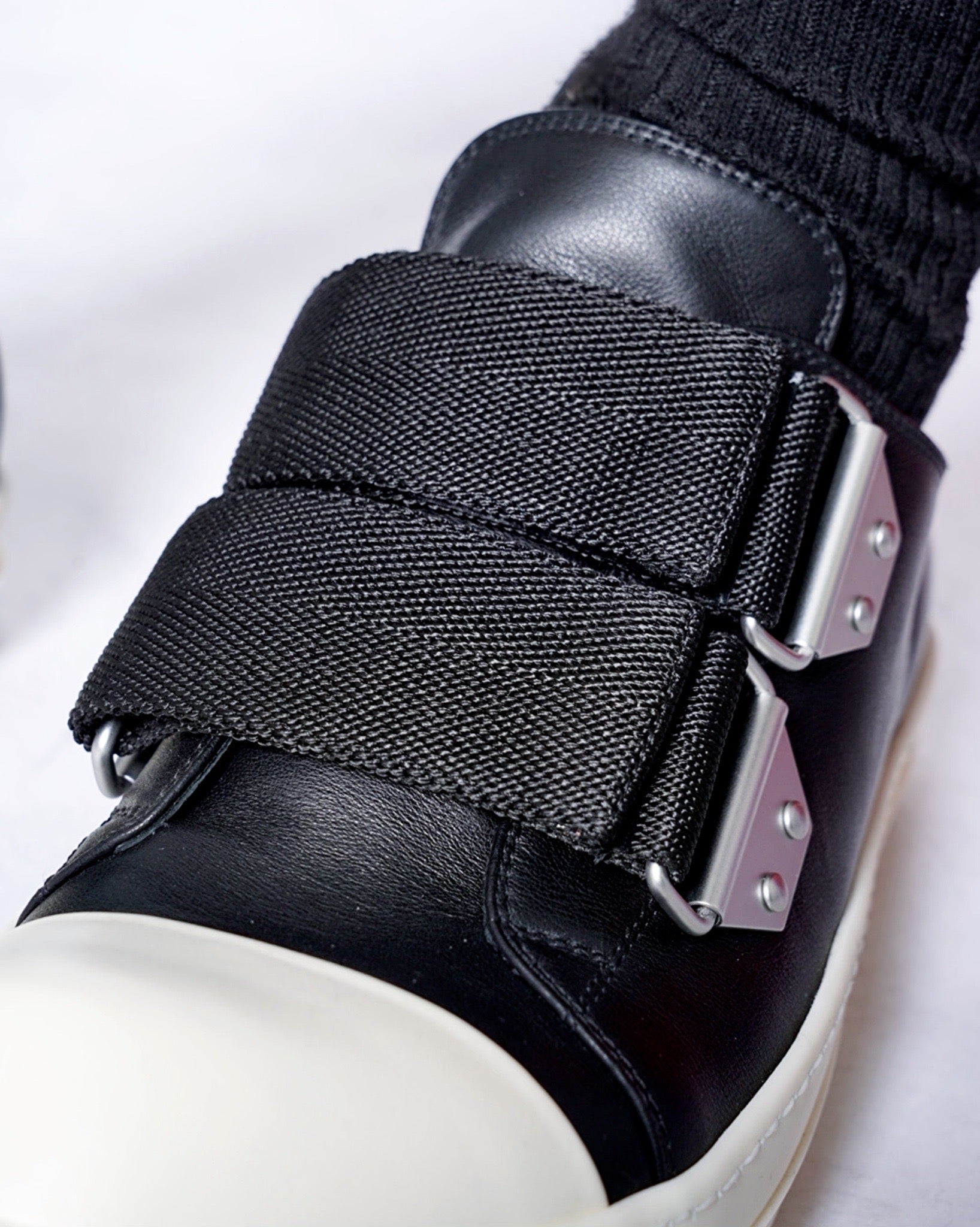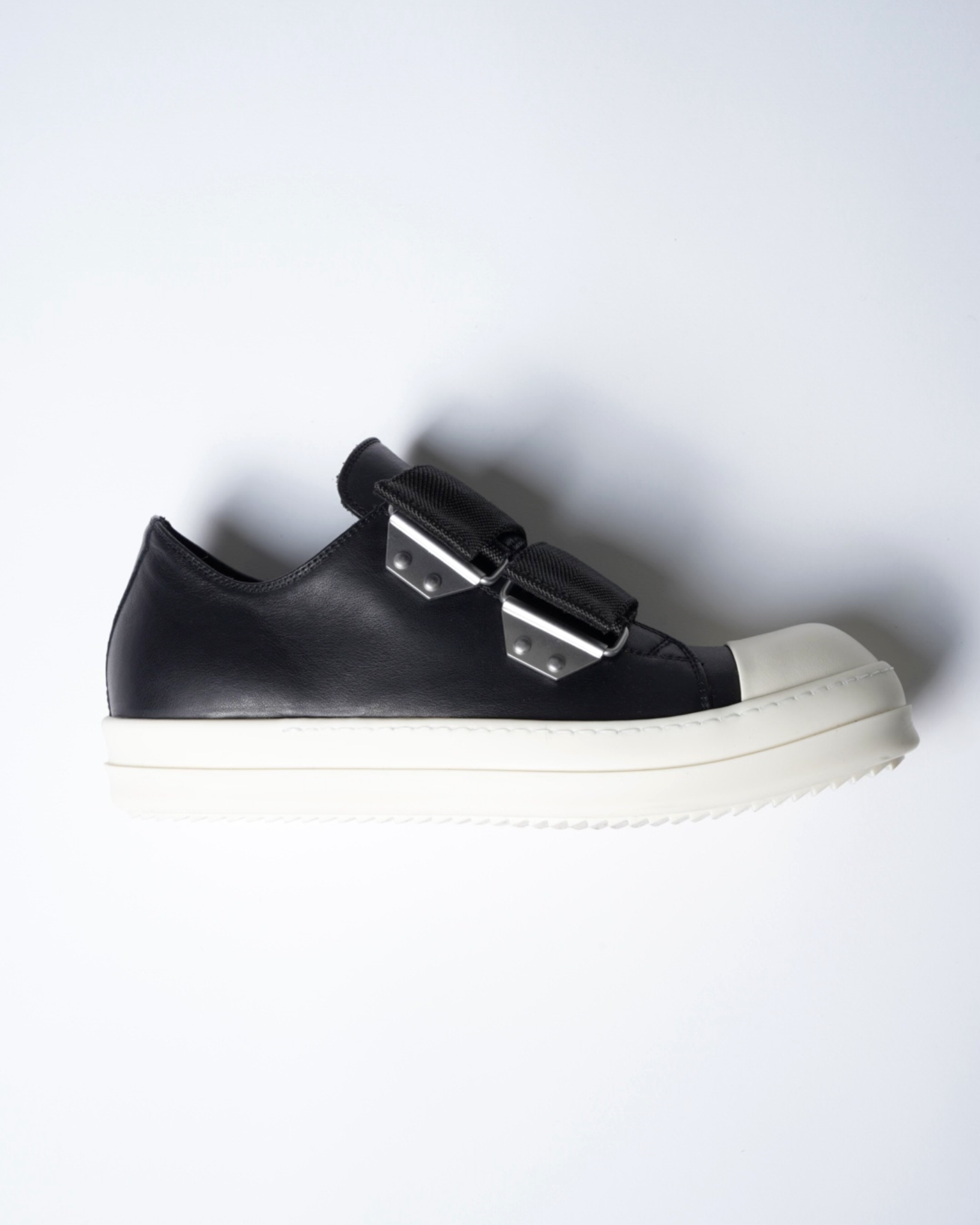 ・ワイドストラップが象徴的なRick Owensらしいデコラティブな一足。