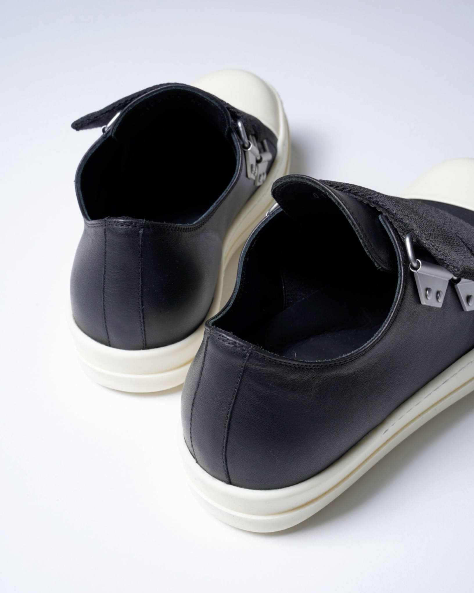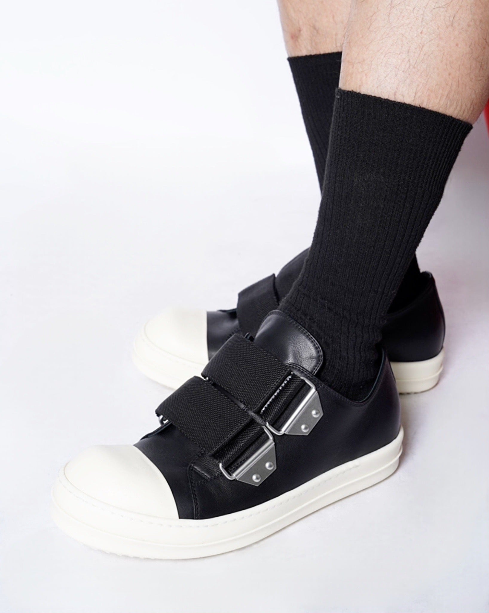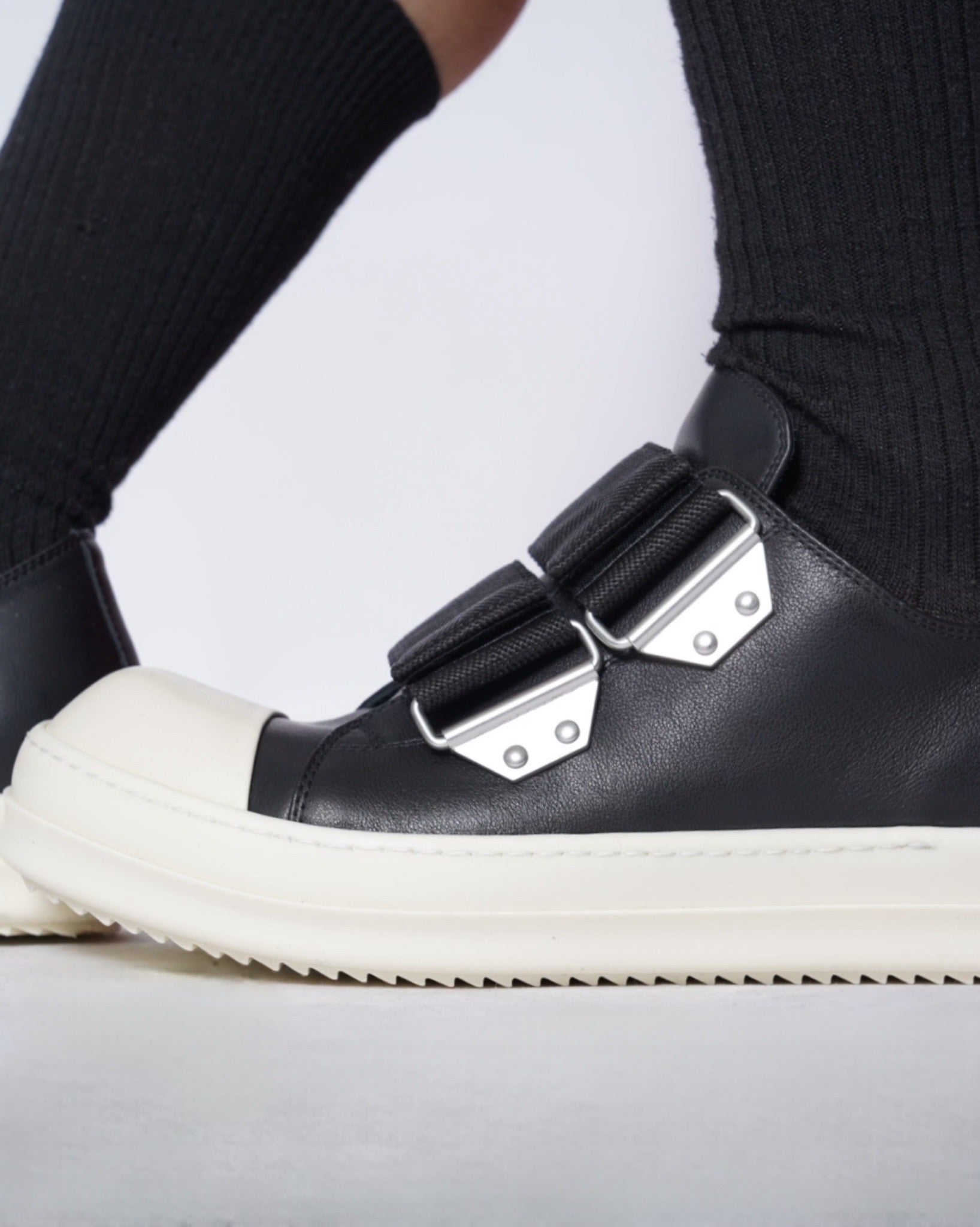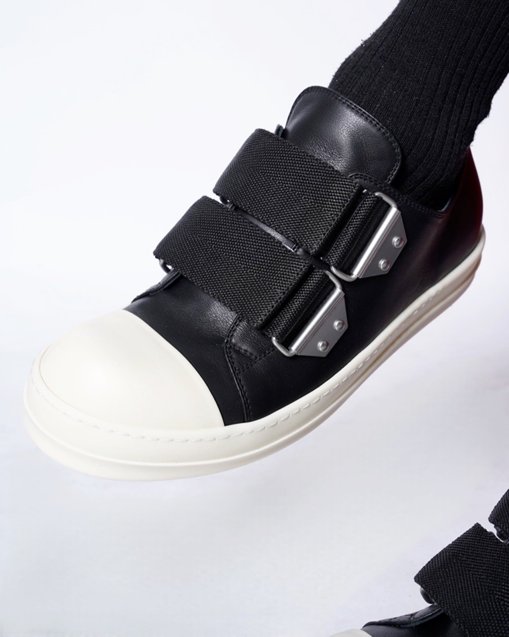 ・ワイドストラップが象徴的なRick Owensらしいデコラティブな一足。