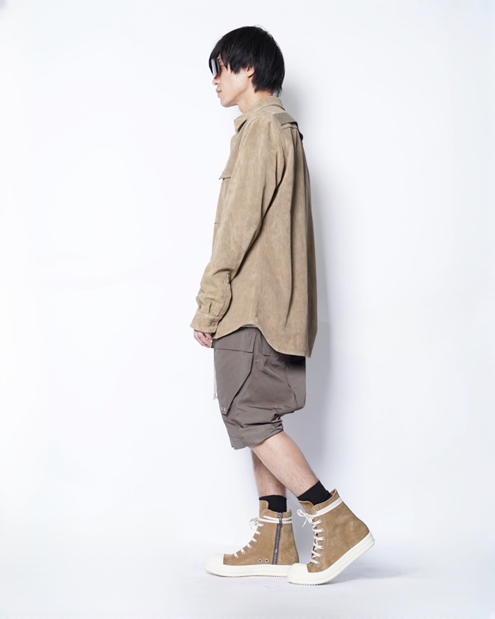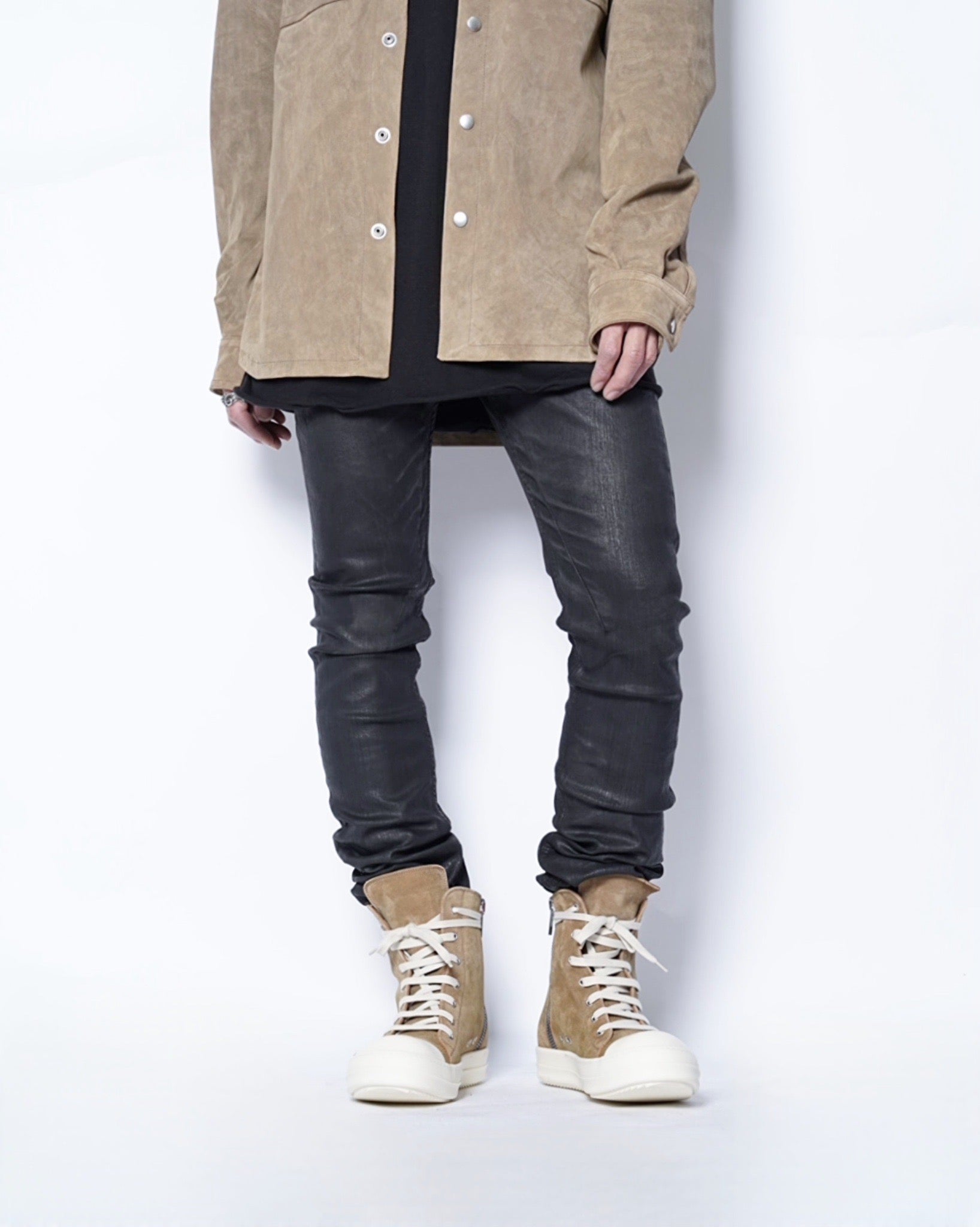 ・SUMI BROWNと呼ばれる発色を絶妙に抑えた色味も特徴的で、RICK OWENS定番のカラーであるDUSTのようにカジュアル過ぎずにソリッドな仕上がりとなっています。