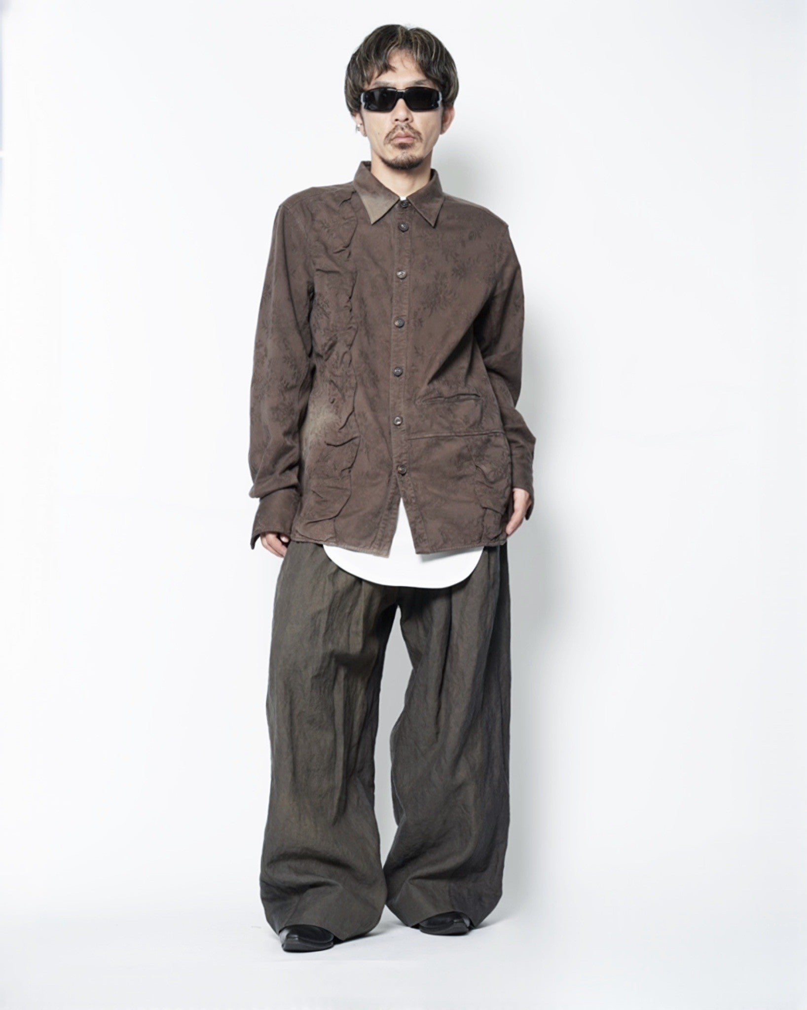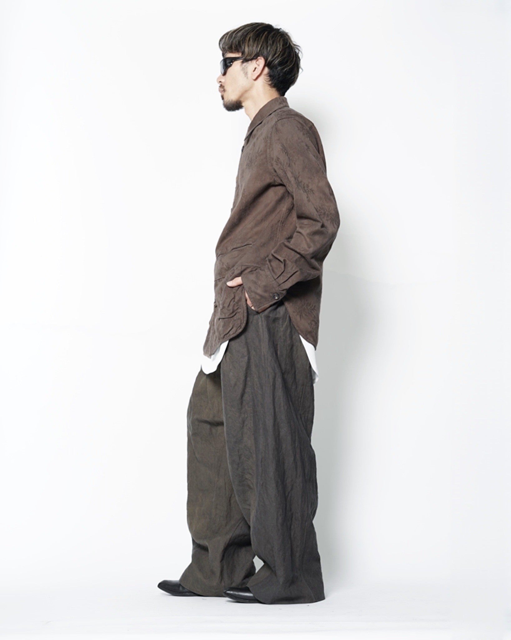 ・今シーズンのコンセプトらしいリラックス感のあるサイジングながら、シルクのしなやかさが合わさることで、縦に綺麗に落ちるフォルムを作り出しています。
