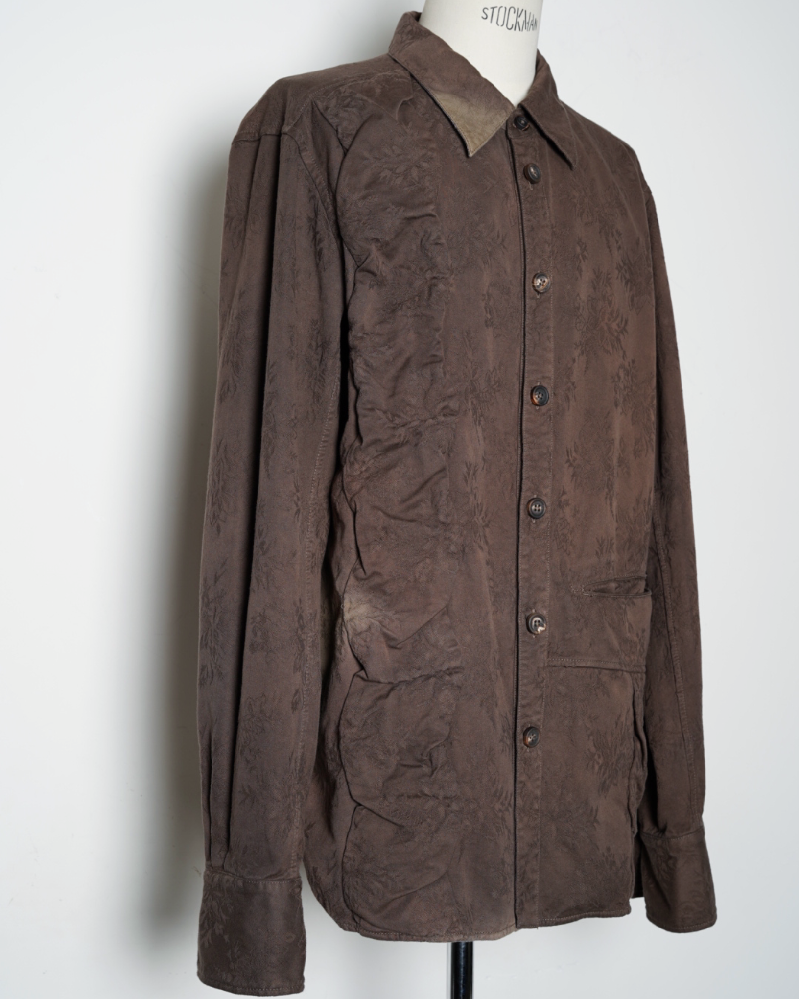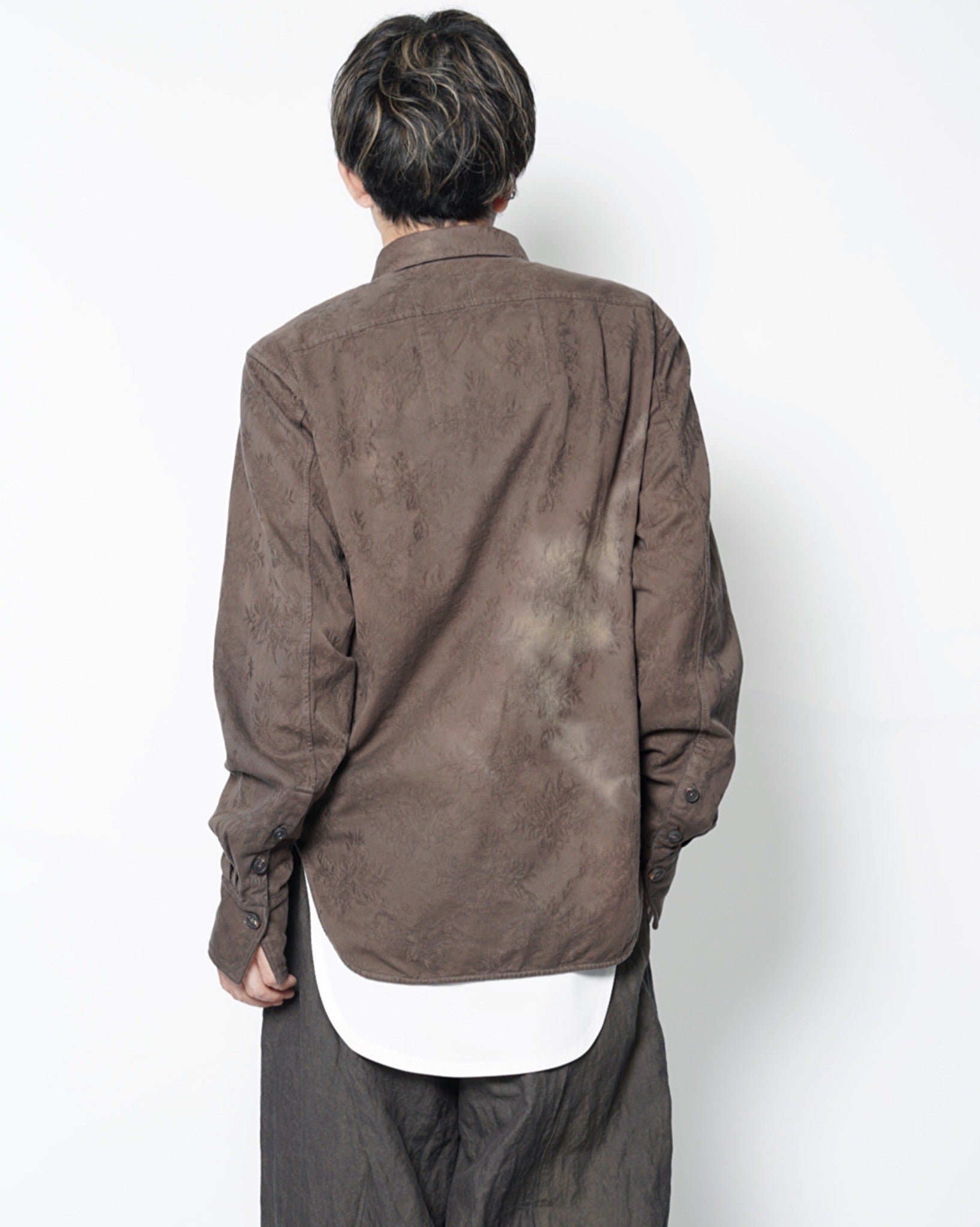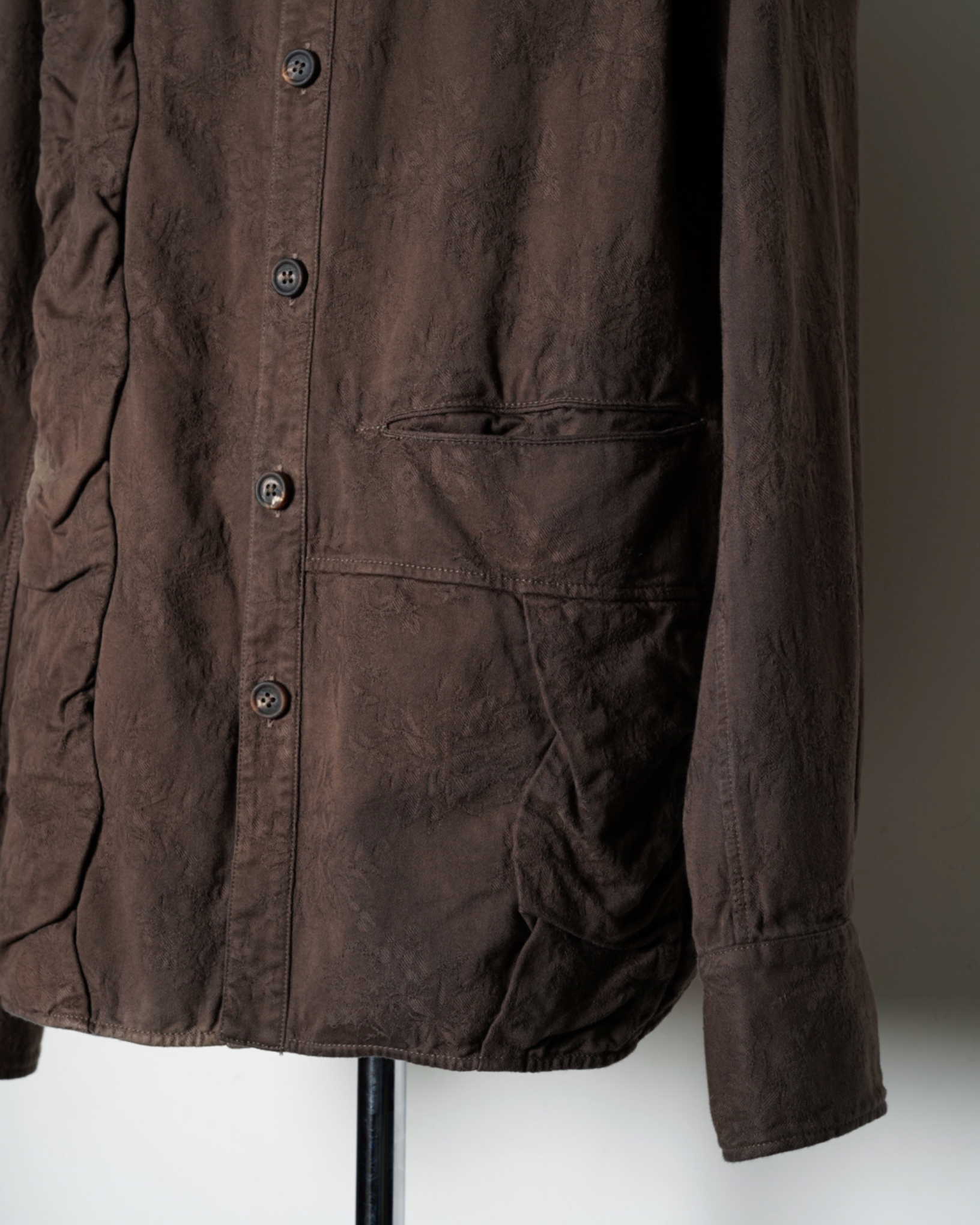 ・動くたびに表情を変えて覗く、ジャガード織りによるフローラルな柄が特徴的で、アーティザナルな印象を強めています。