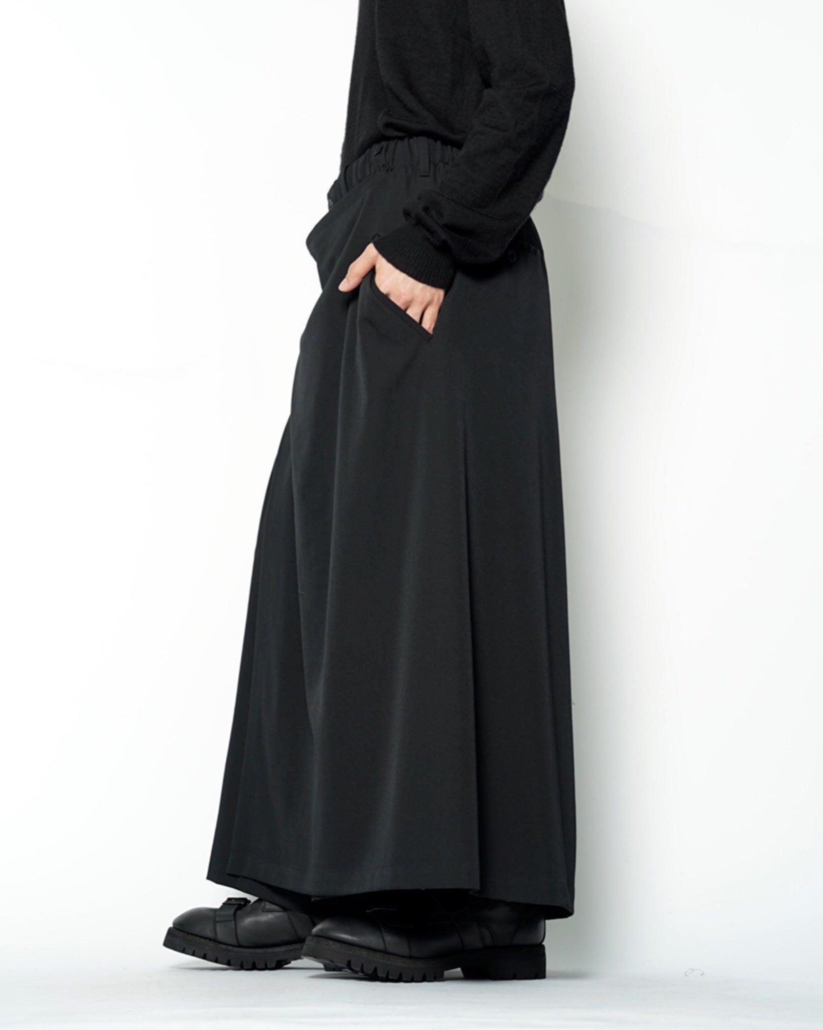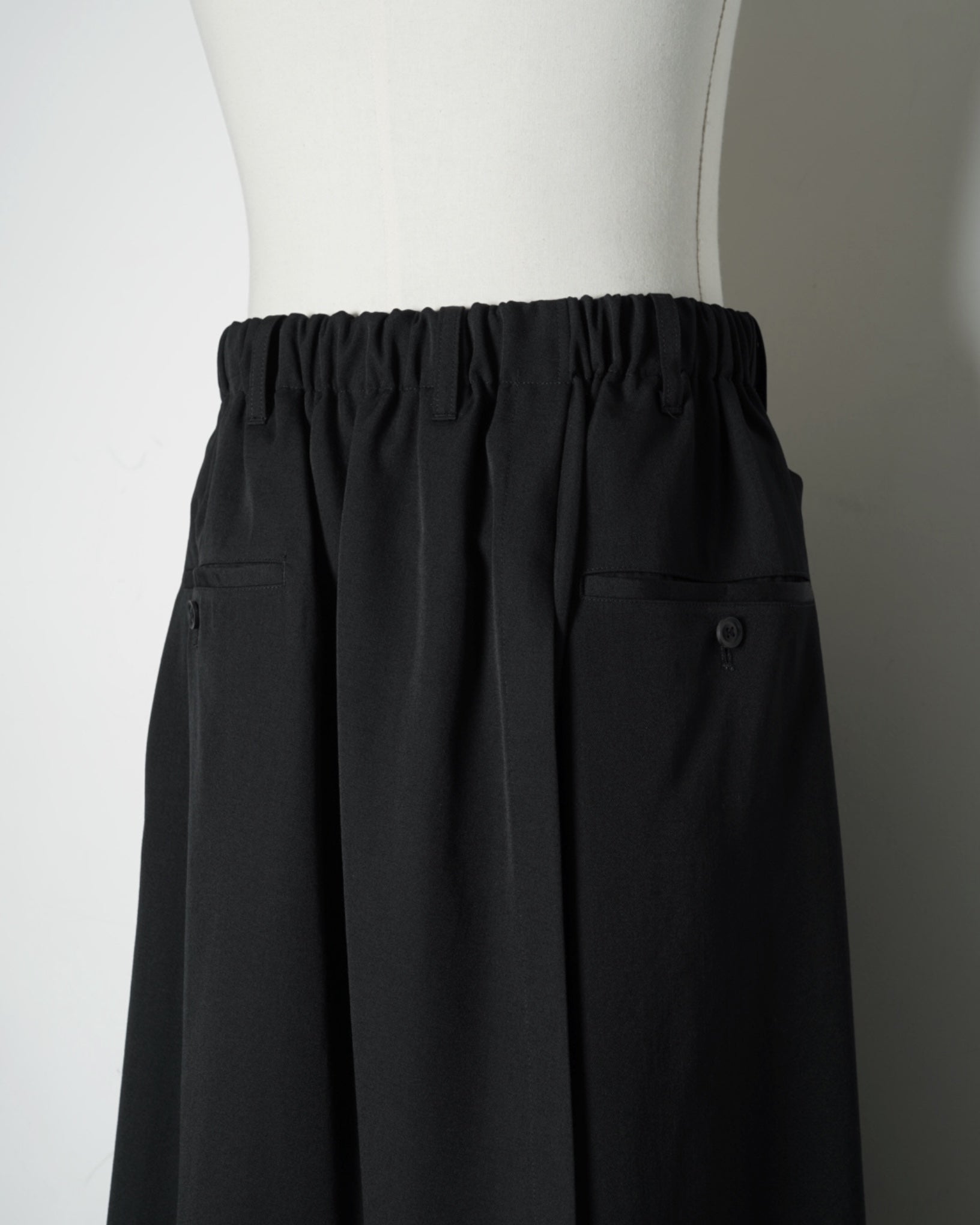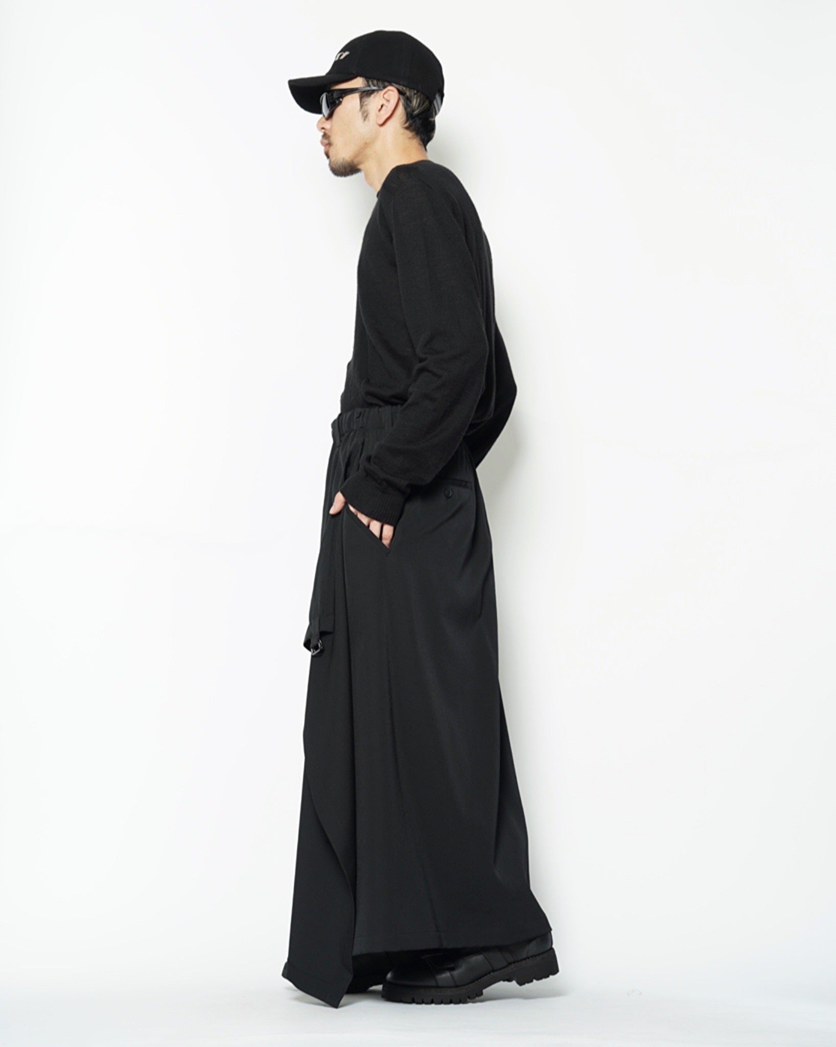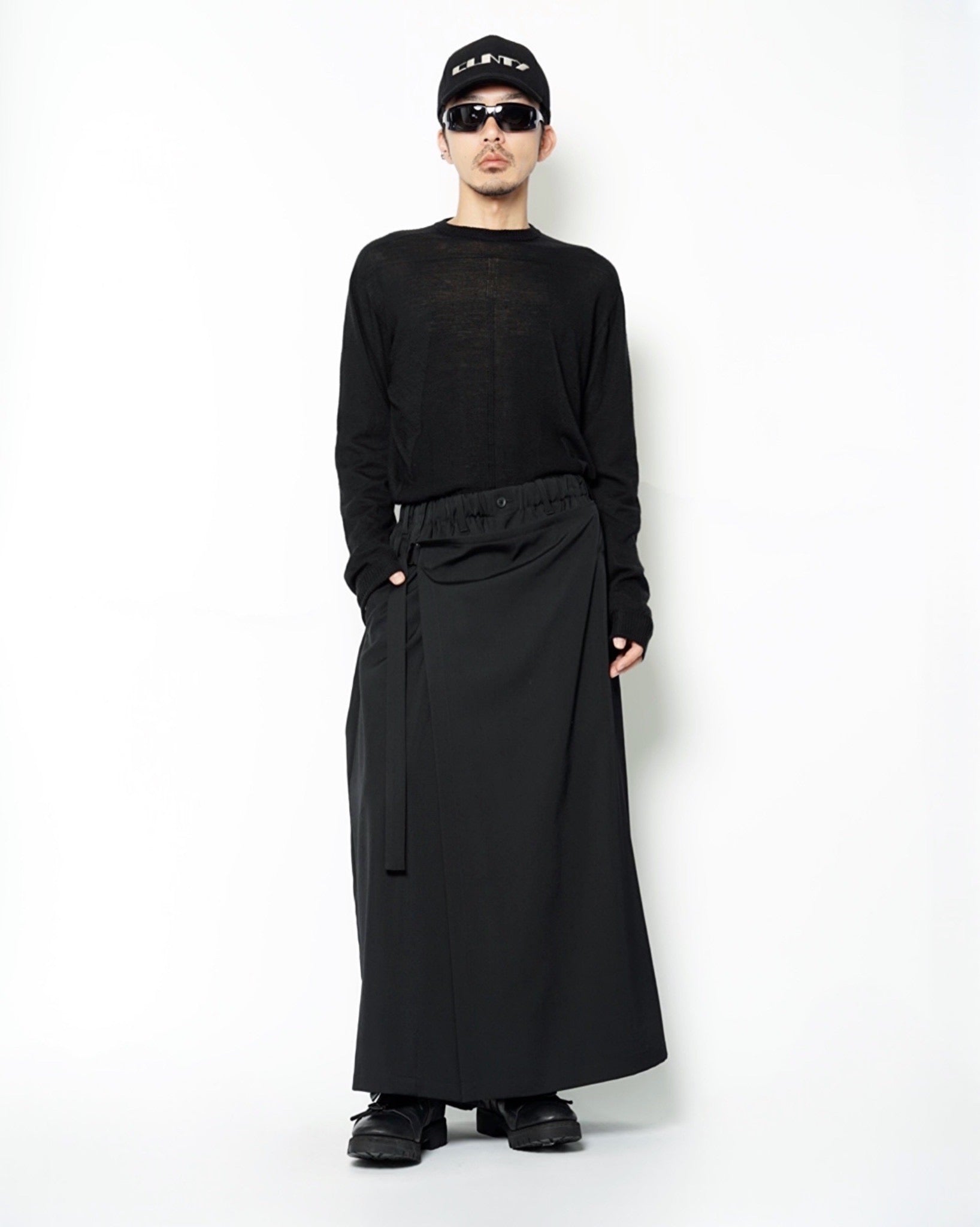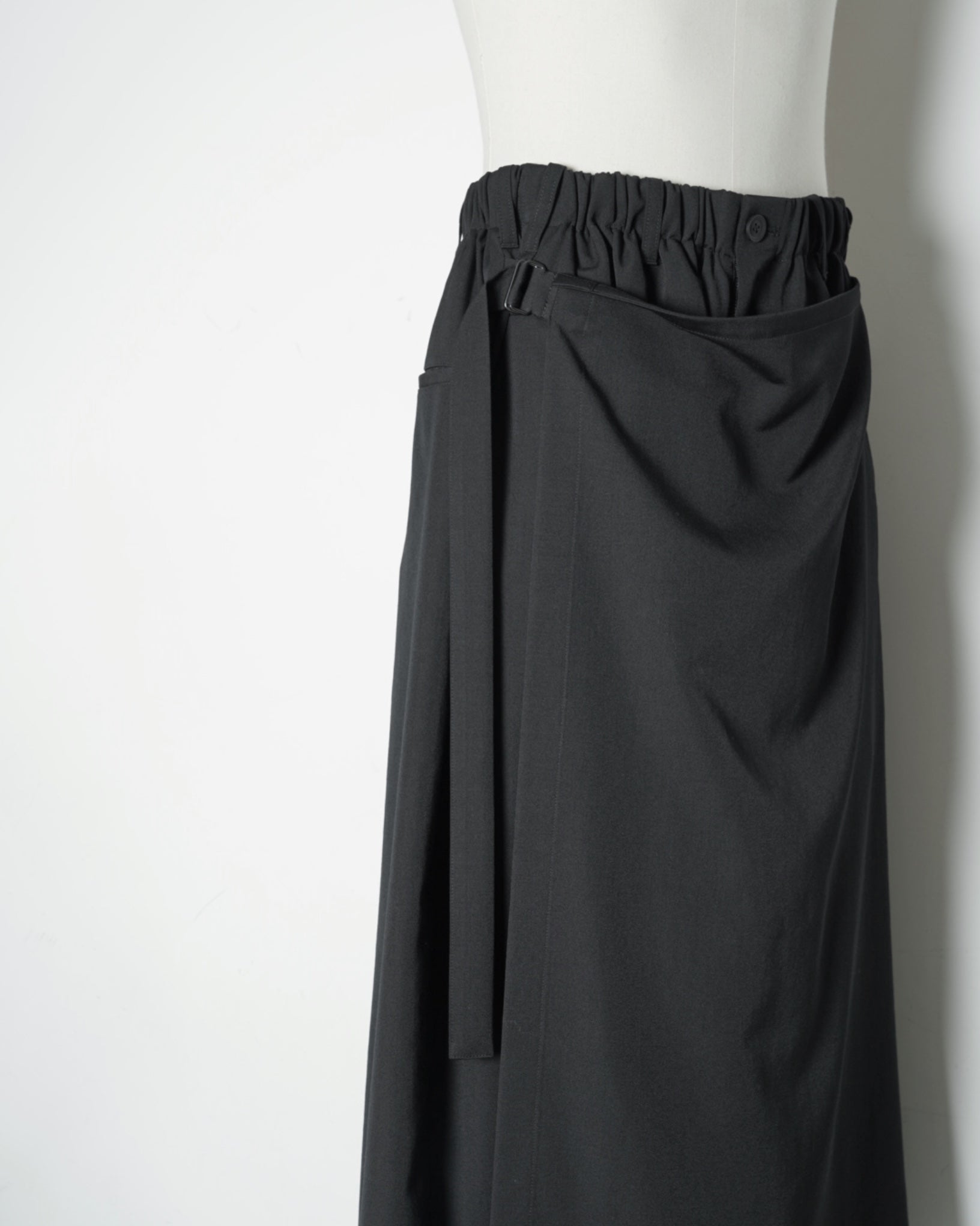・ドレーピーな表情がラップパーツとワイドなシルエットにより複雑なデザインを作り出しており、穿くだけでスタイリングの主役となる存在感に溢れています。