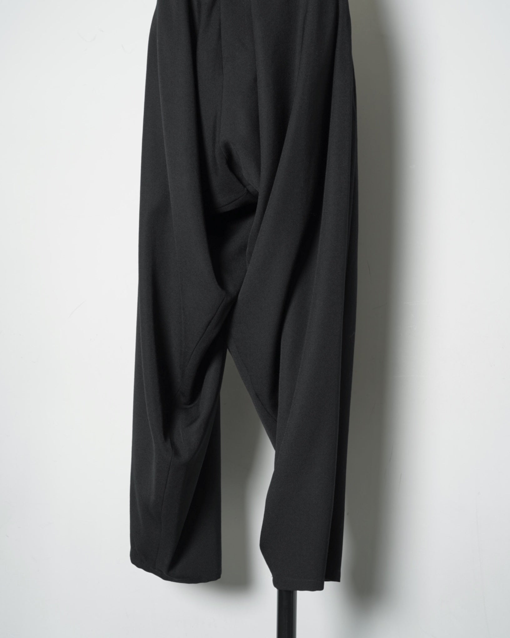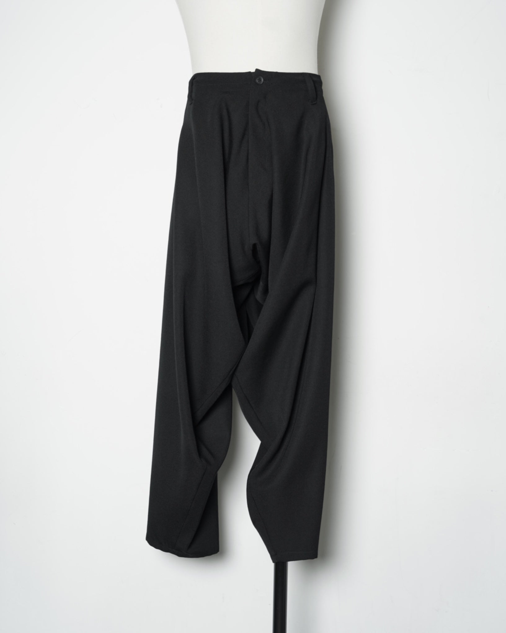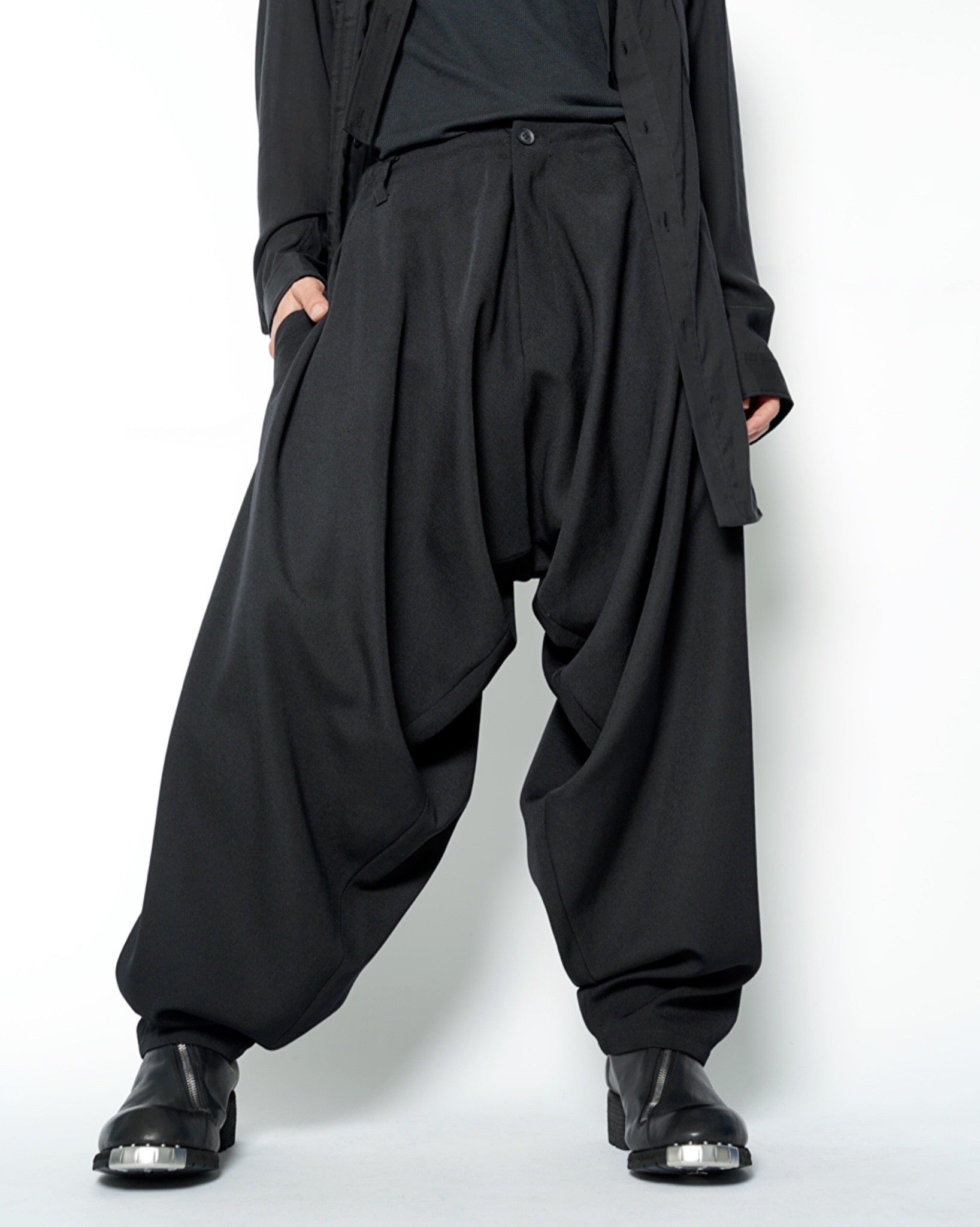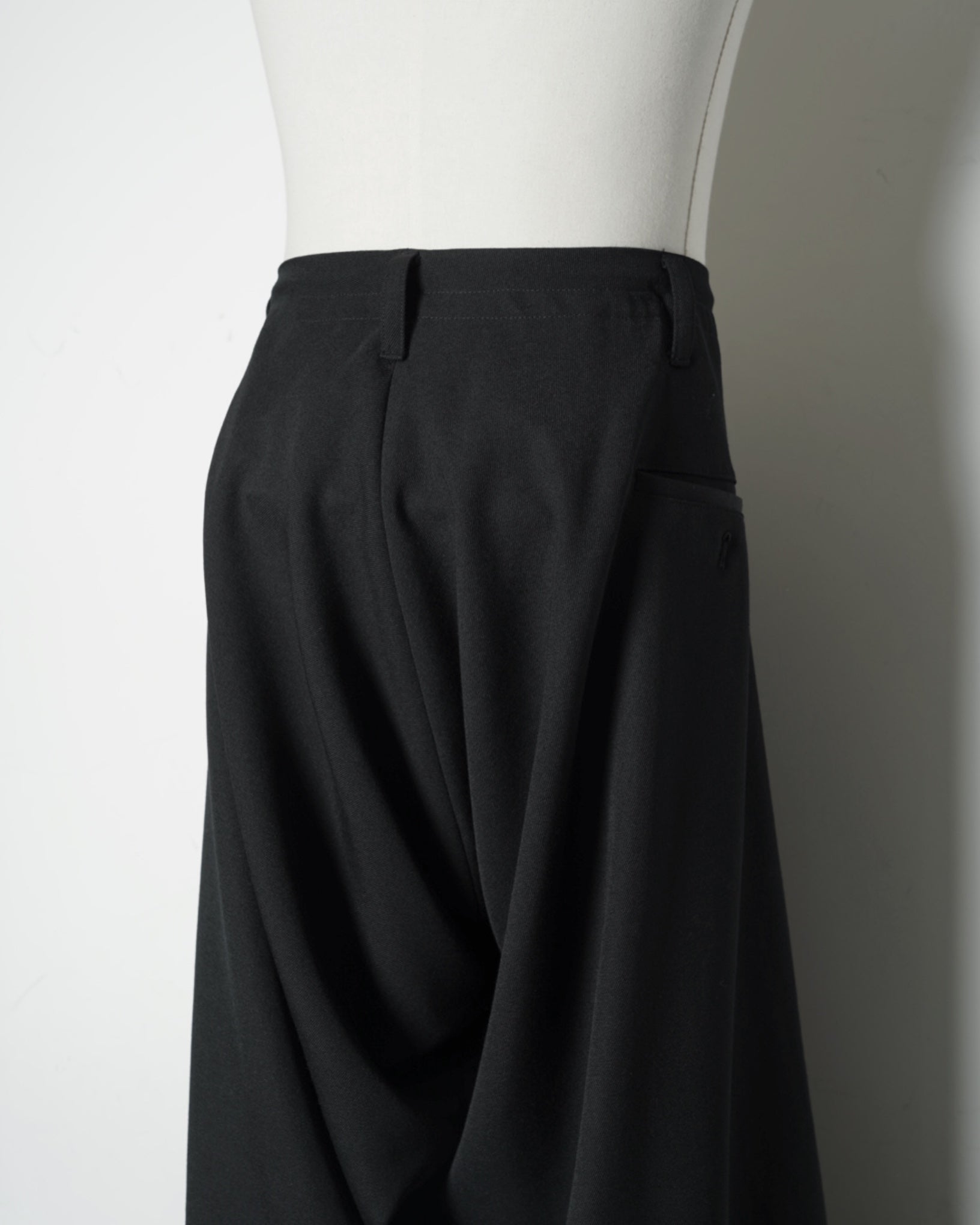・深い股上で内またに寄った独自のシルエット形成のパンツは穿くことにより、複雑なドレープを作り出します。