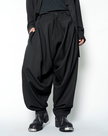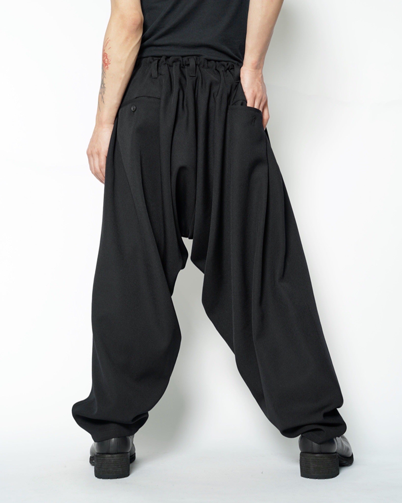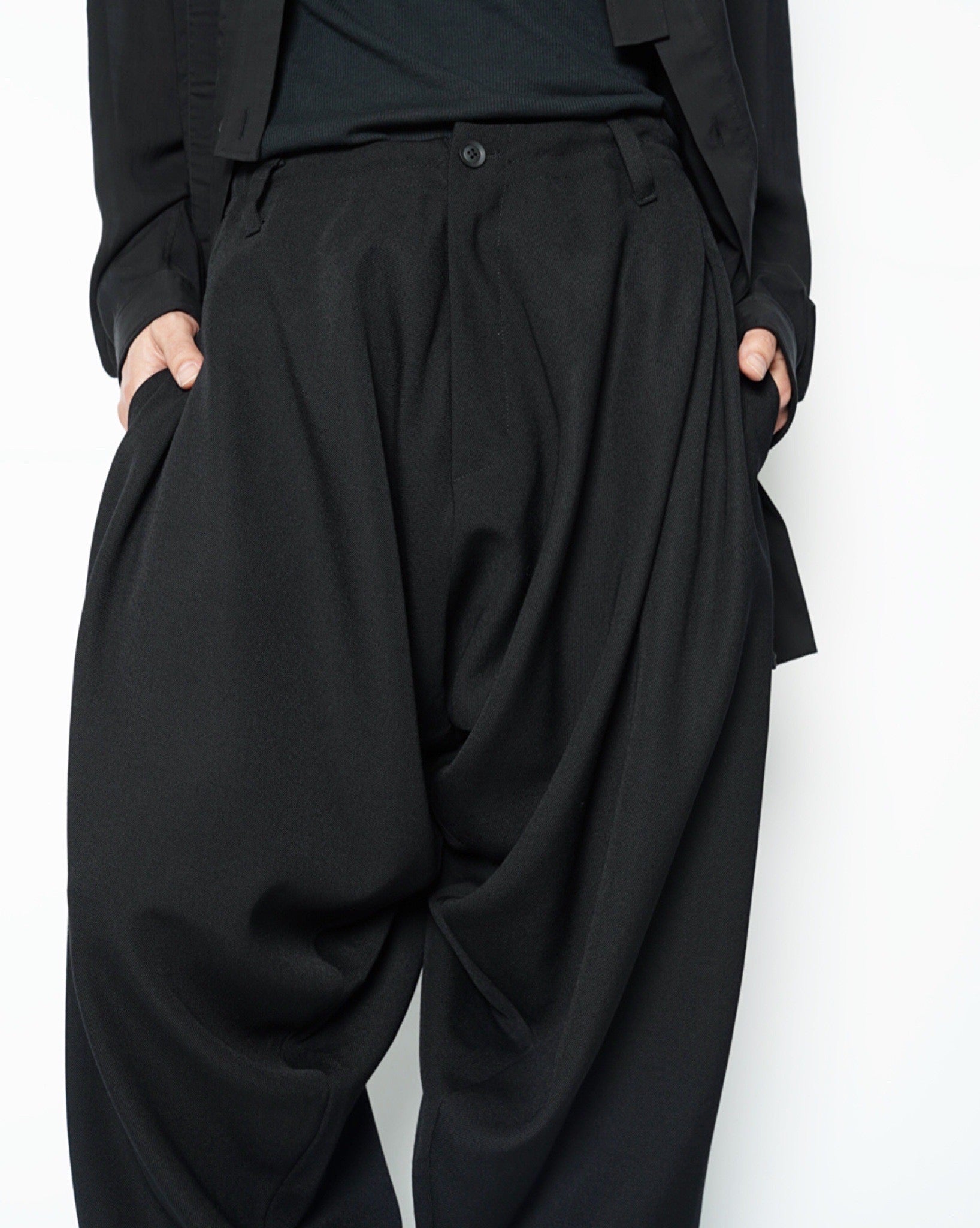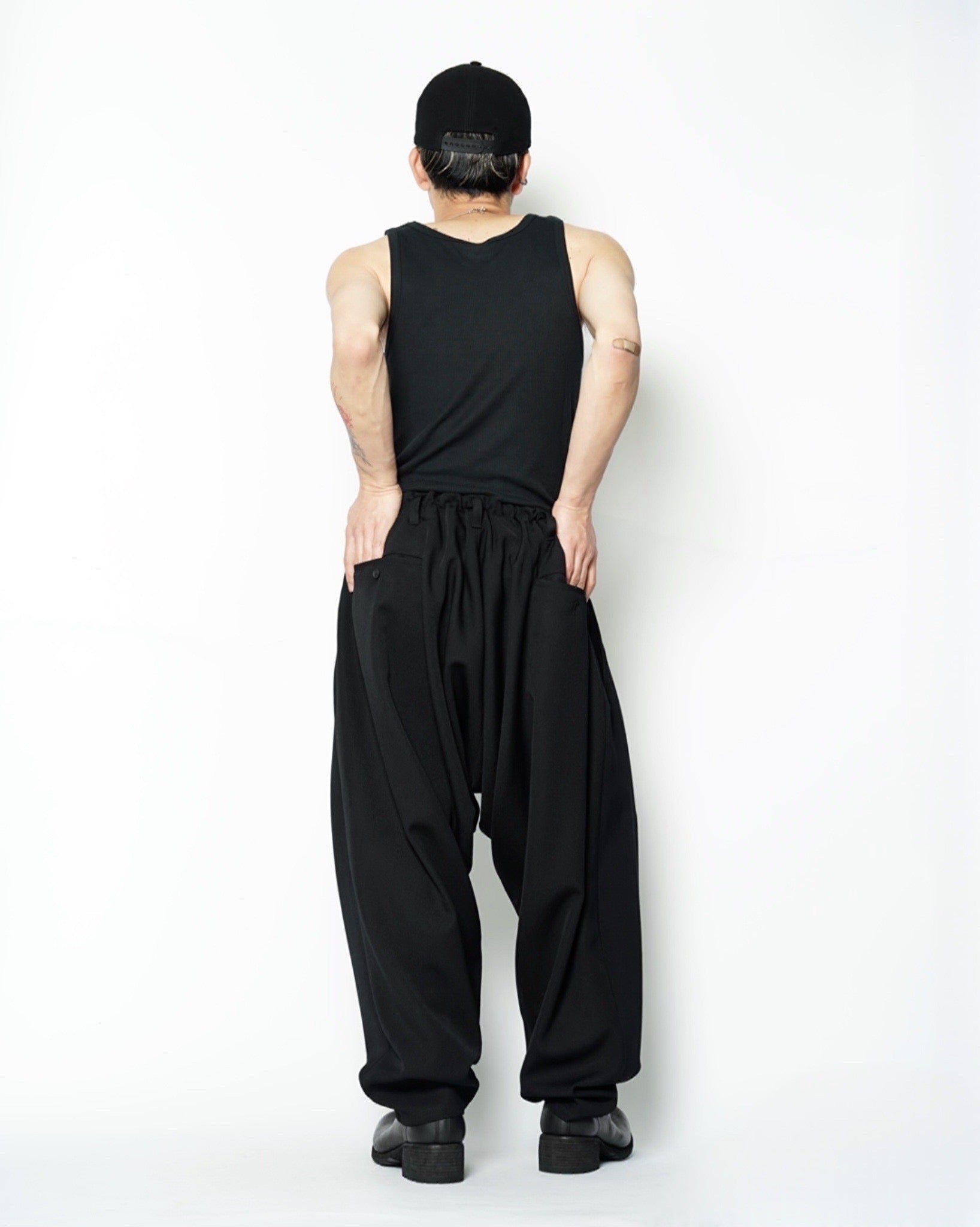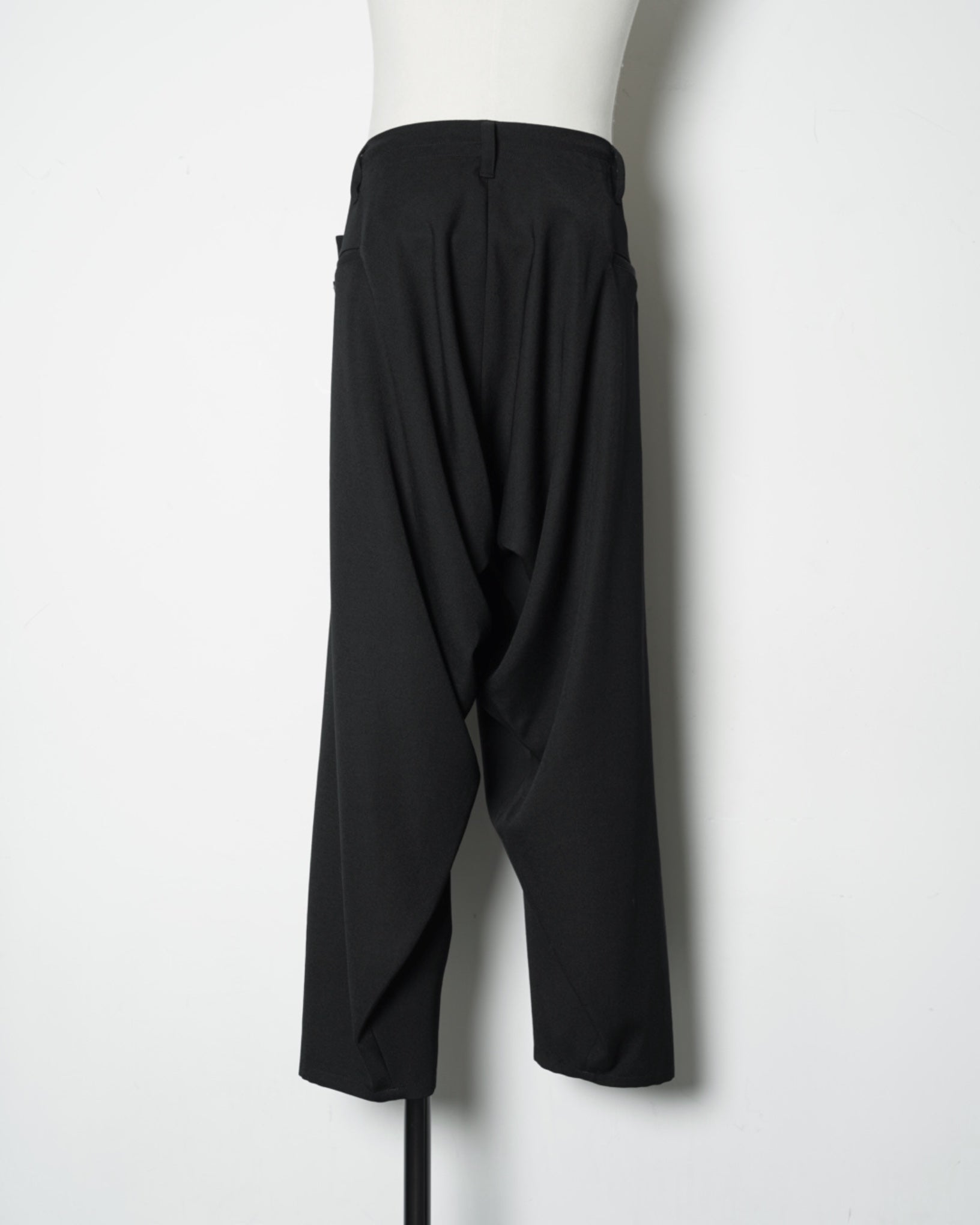 ・深い股上で内またに寄った独自のシルエット形成のパンツは穿くことにより、複雑なドレープを作り出します。