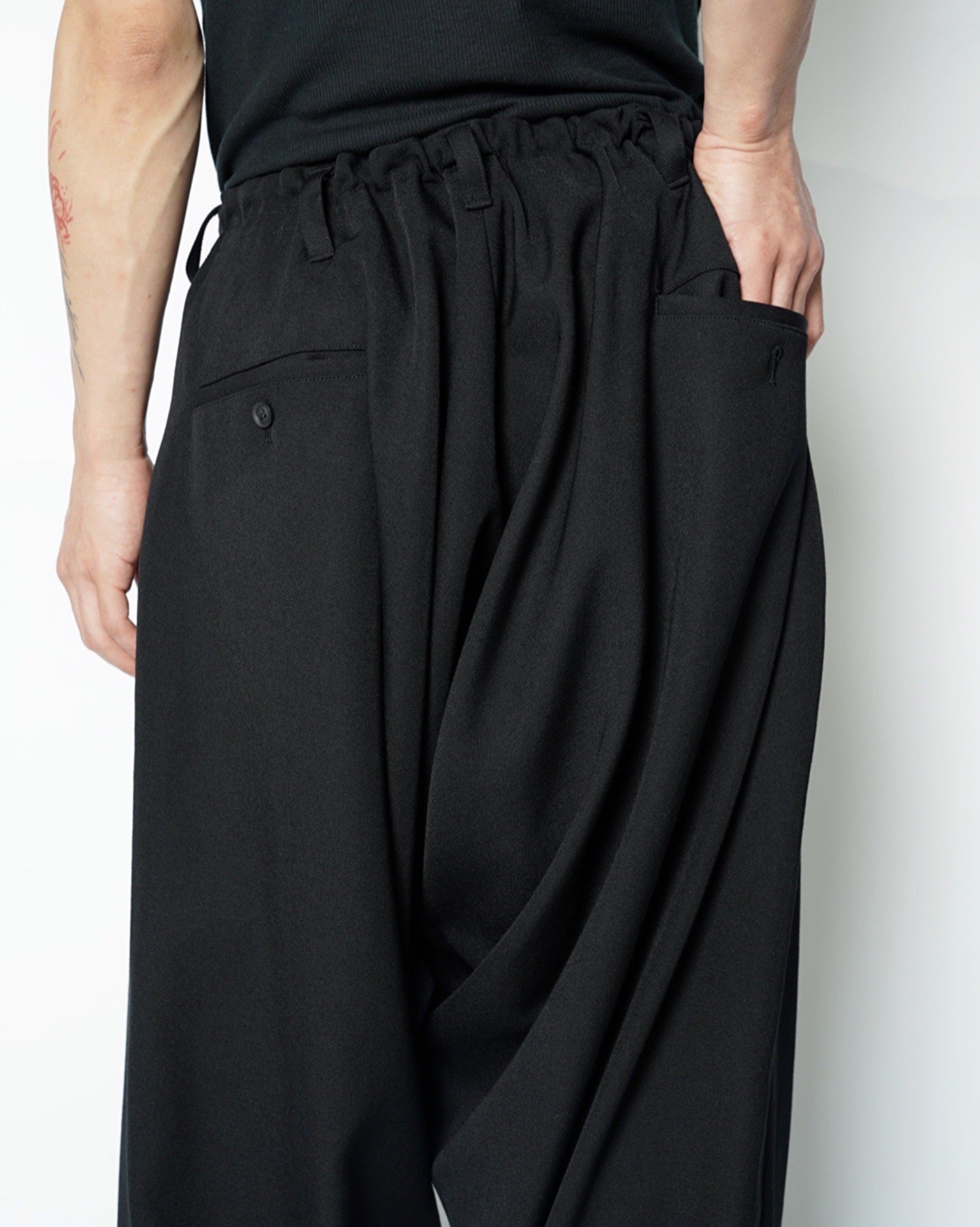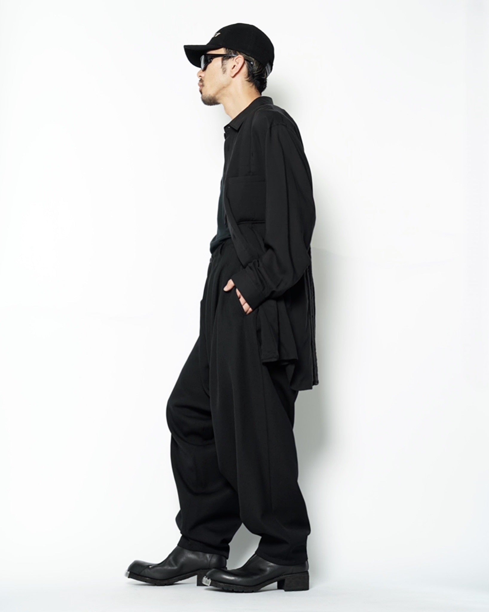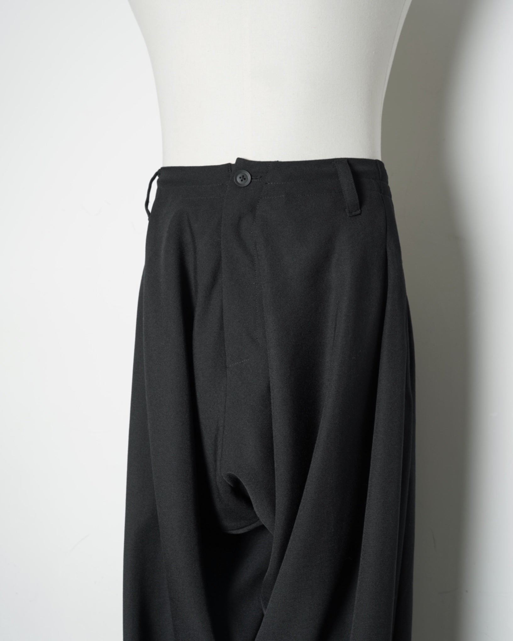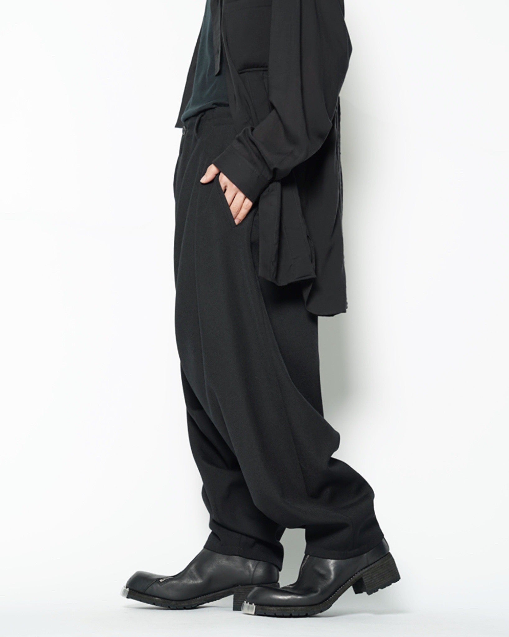 ・ゆとりのある腰とモモから緩やかにテーパードをかけた、Yohji Yamamotoらしさ溢れる独自的なシルエット。