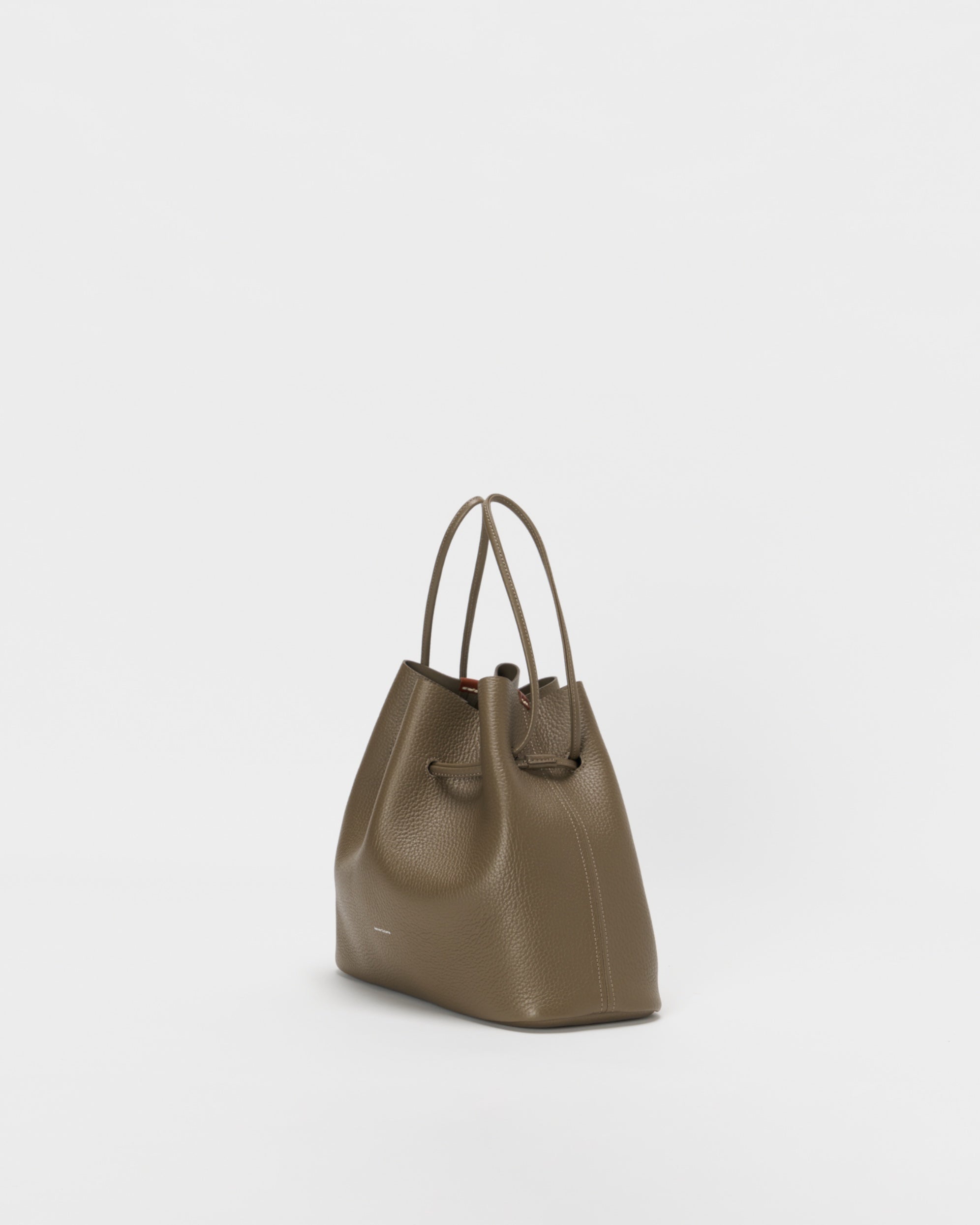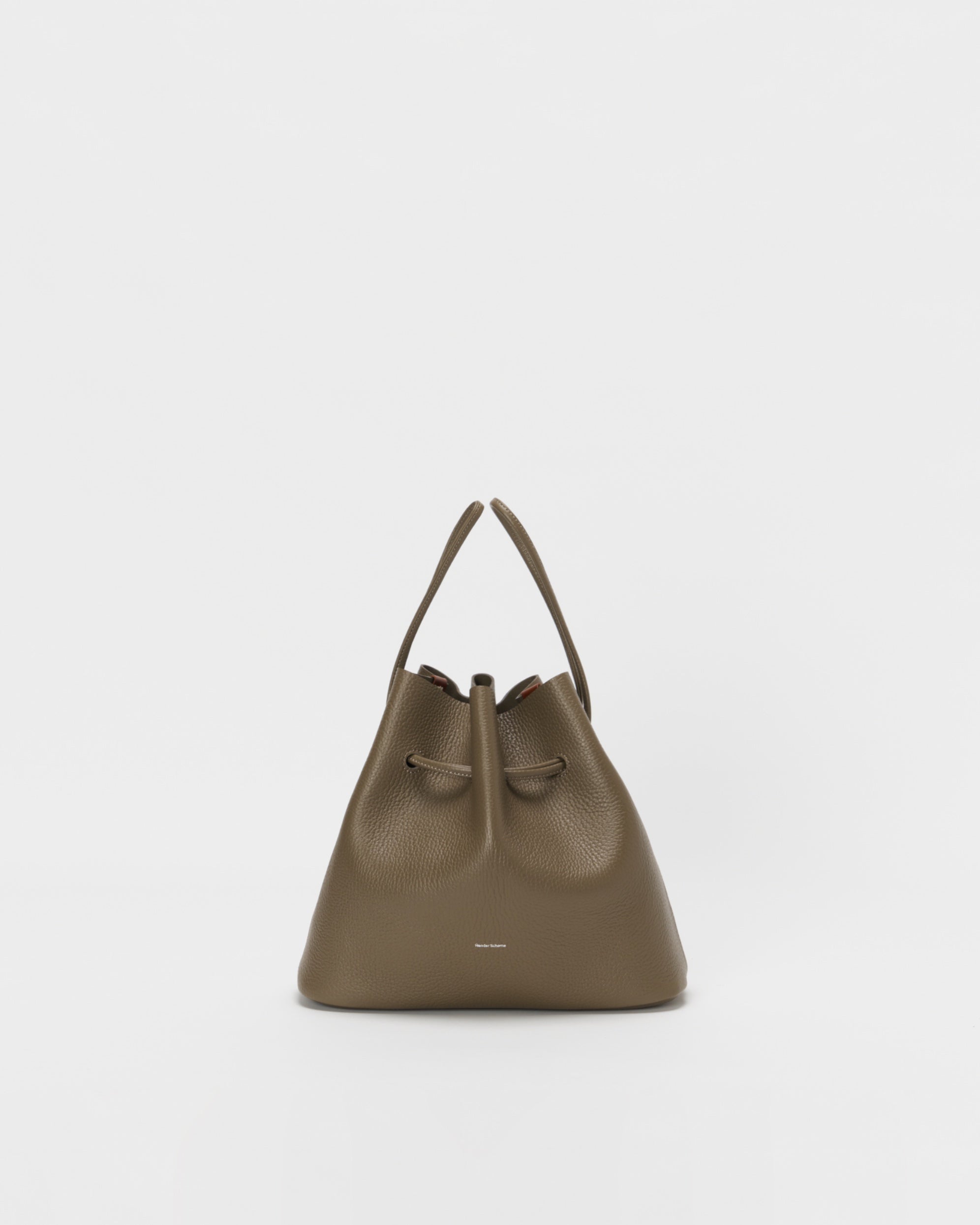 ・巾着のようにトップのレザーコードを絞って使っていただくデザイン。