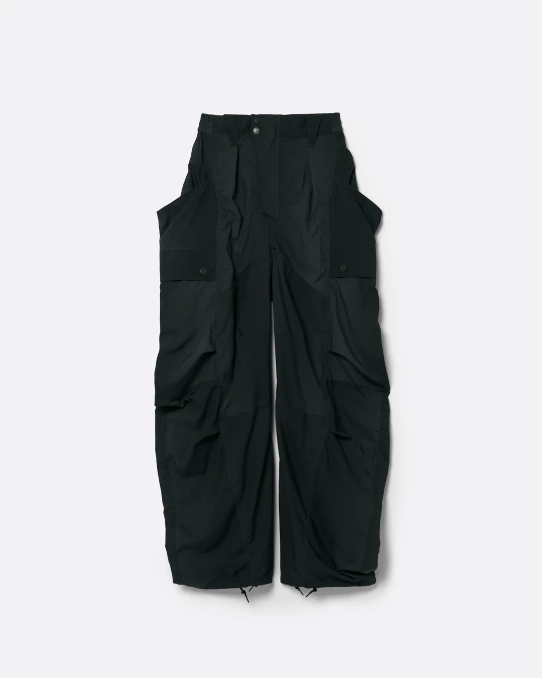 90年代のデニムパンツに着想を得た構築的なカッティングと、内側にカーブした独特のパターンワークが融合し、まるで”着る彫刻”のような立体的なフォルムを実現。