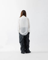 「KIVULI(スワヒリ語で“影”の意)」という名の通り、ぼんやりと影を落とすようなオリジナルグラフィックを全面に配したファブリックを使用し、SUBLATIONSの代表的シルエットであるBANANA CUTTINGを再構築。