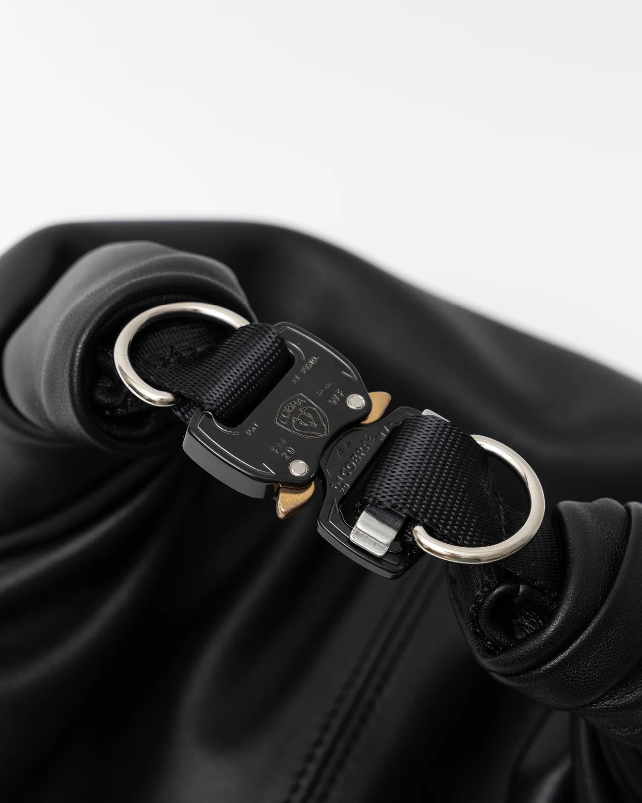 イギリス軍のラバー製バッグを、ラグジュアリーな素材と丁寧な縫製で再構築した、モードなバッグです。
