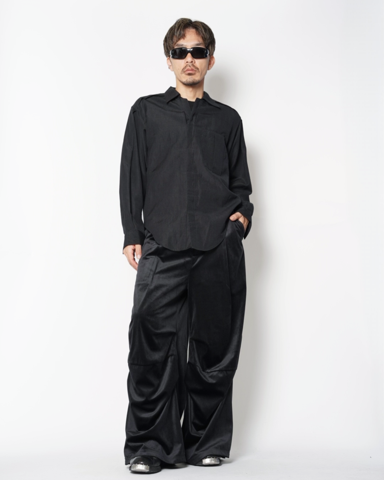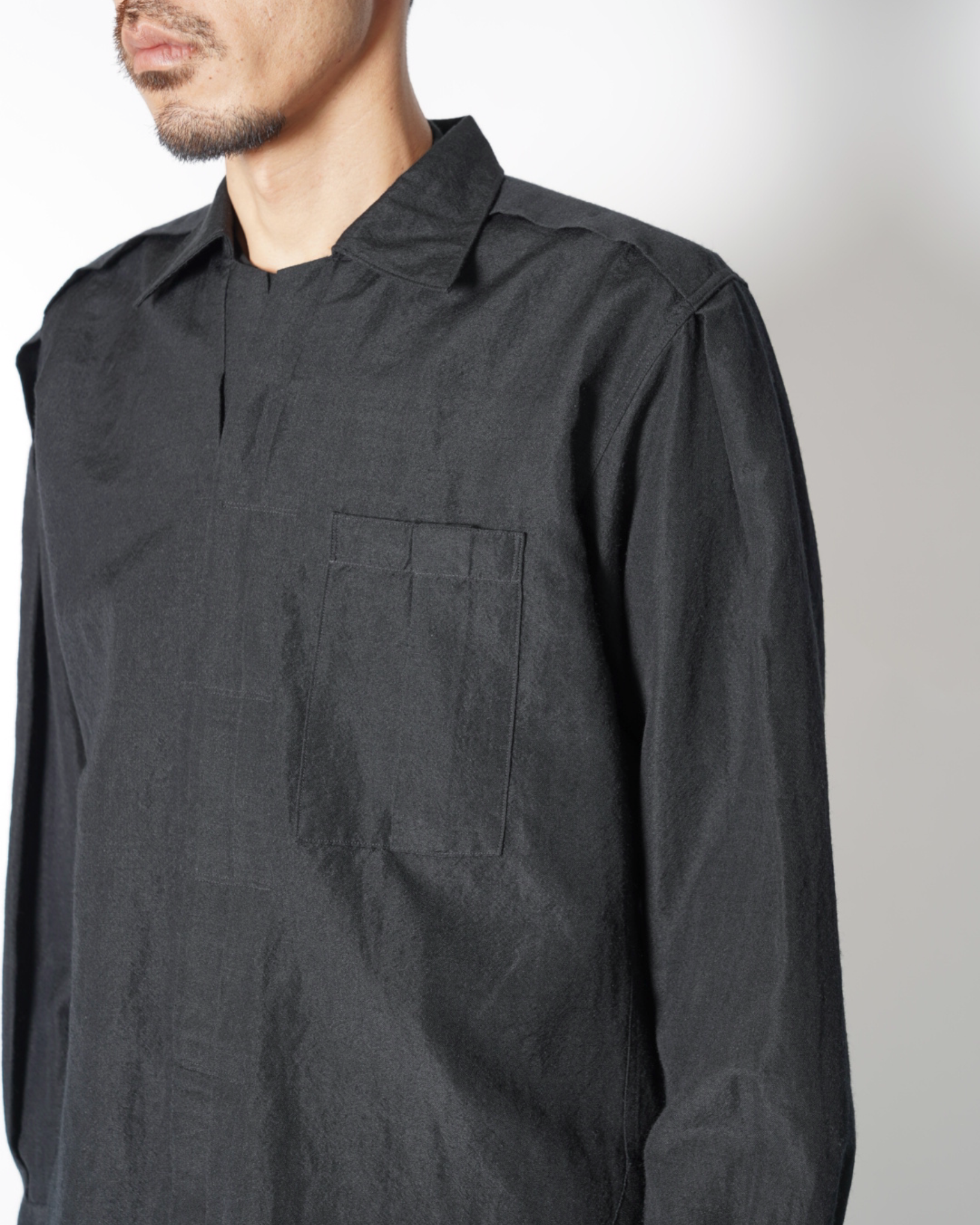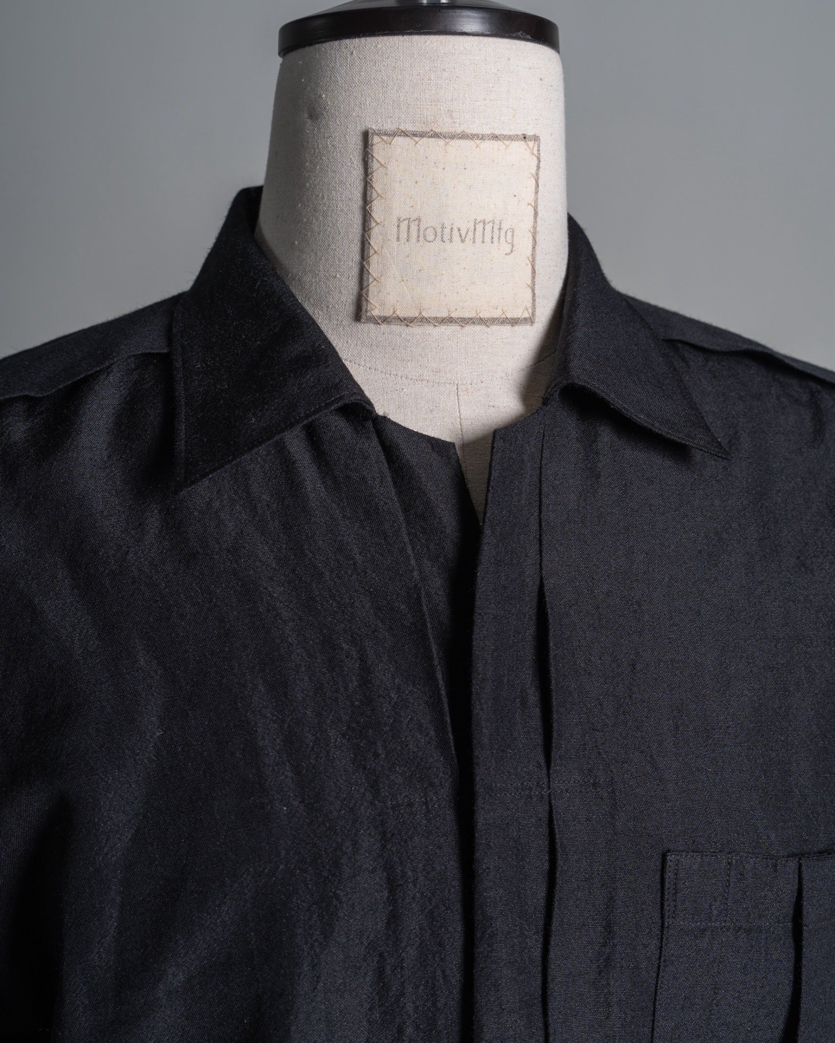・閉めても開けても様になるシルエットとなっており、スタイリングに欠かせないシャツへと昇華しています。