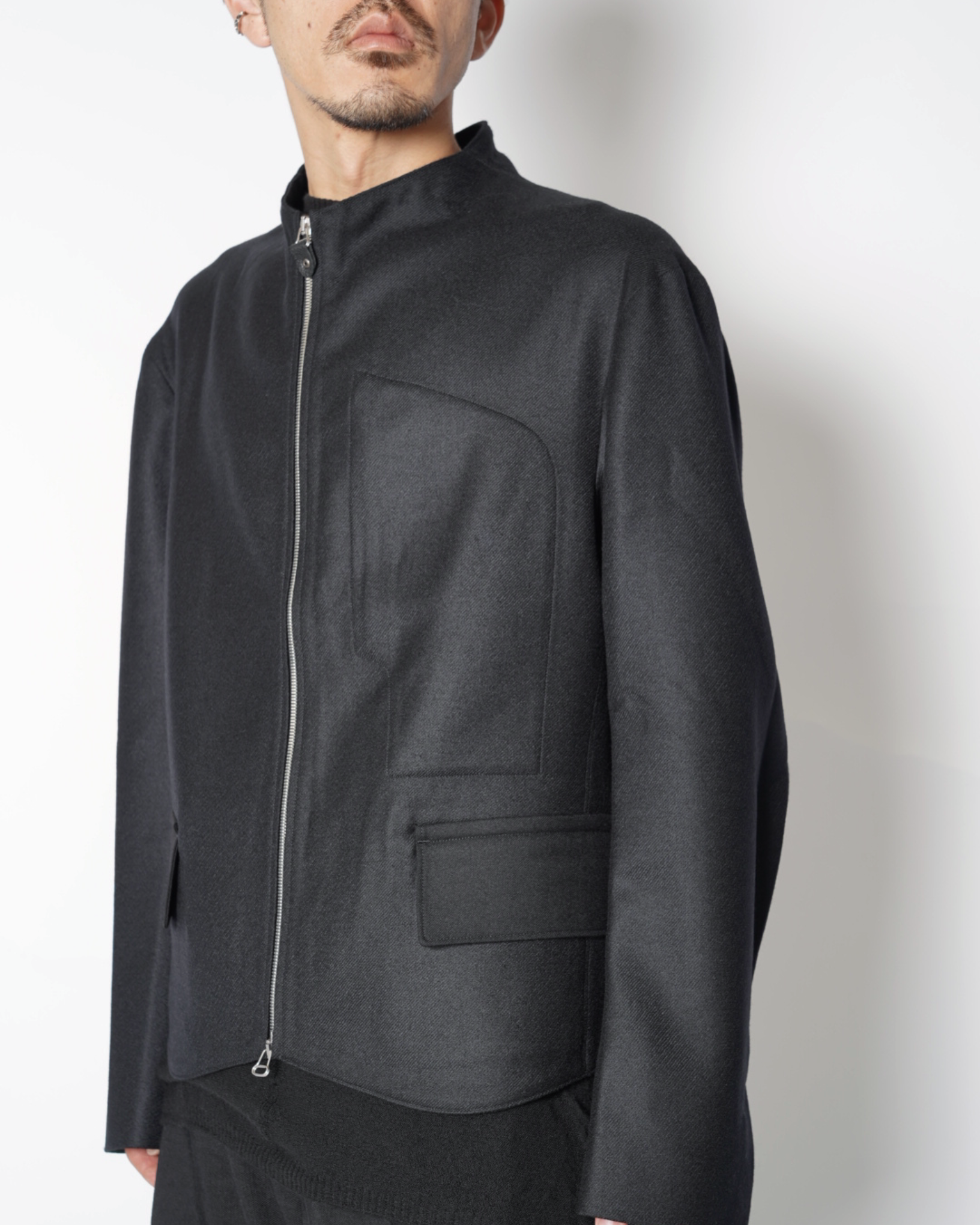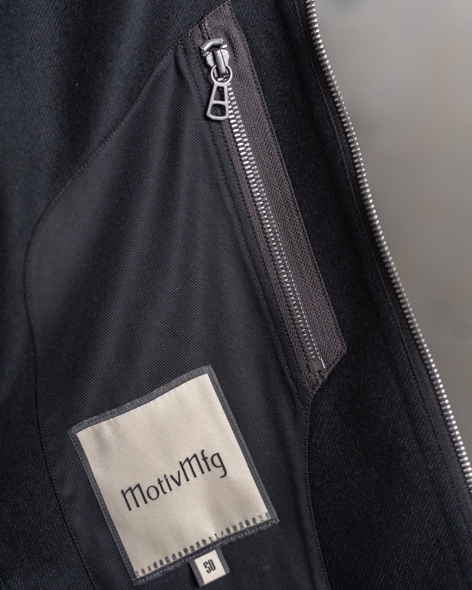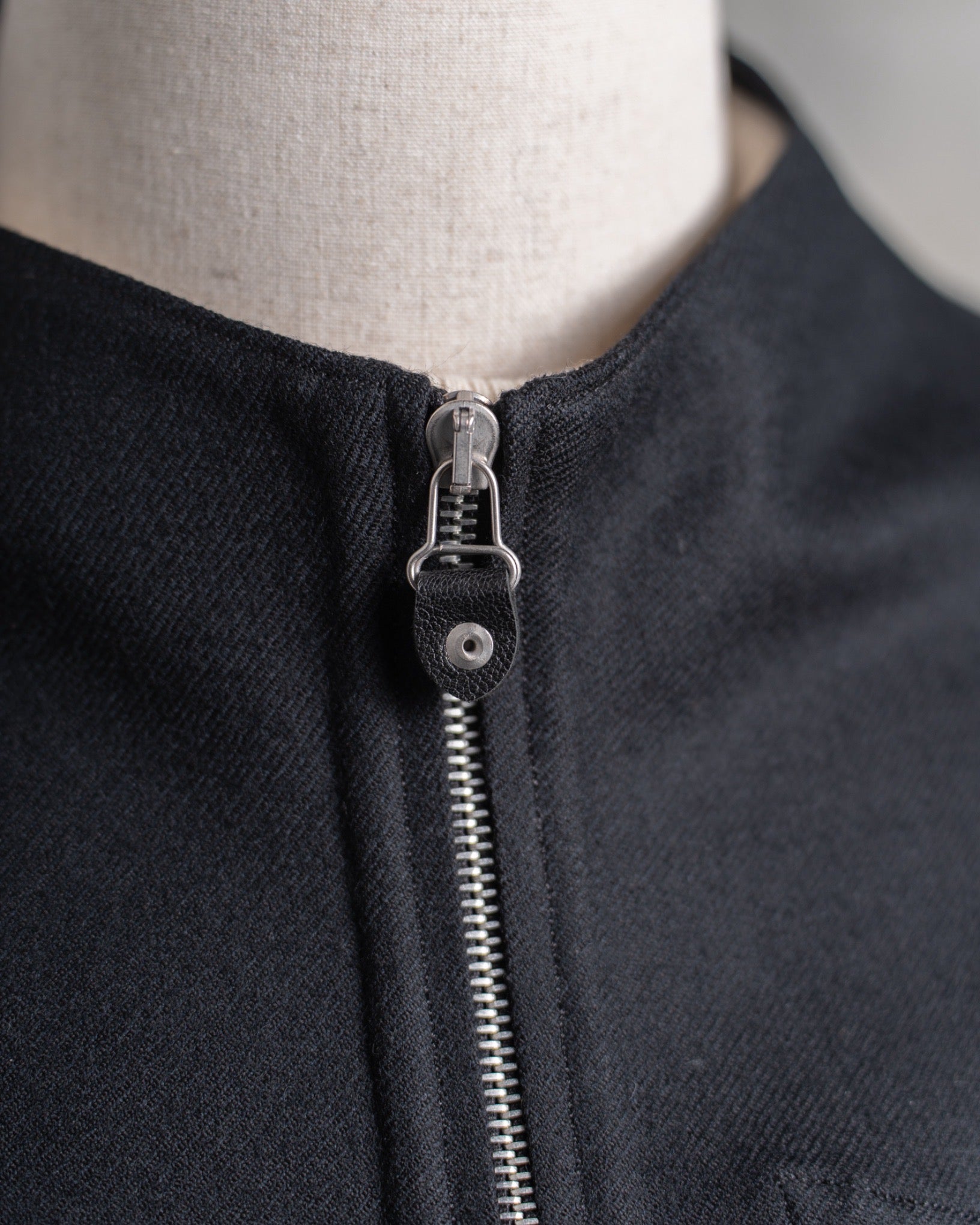 ・前振りの袖付けと直線的なアウトラインによる収まりの良いフォルムにより、ブルゾンながらもテーラージャケットのような端正な仕上がりです。