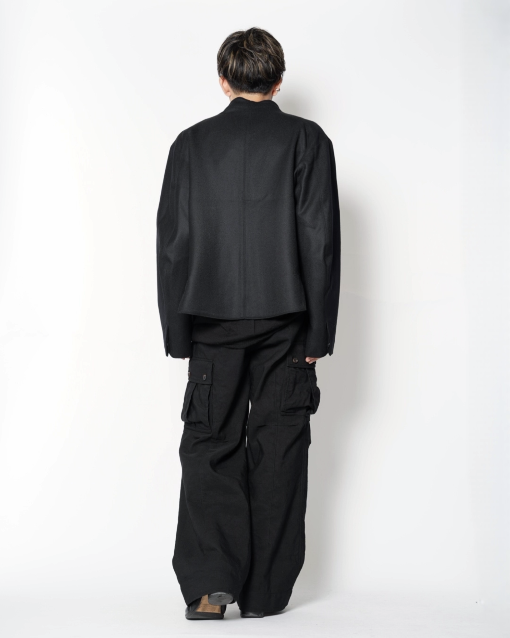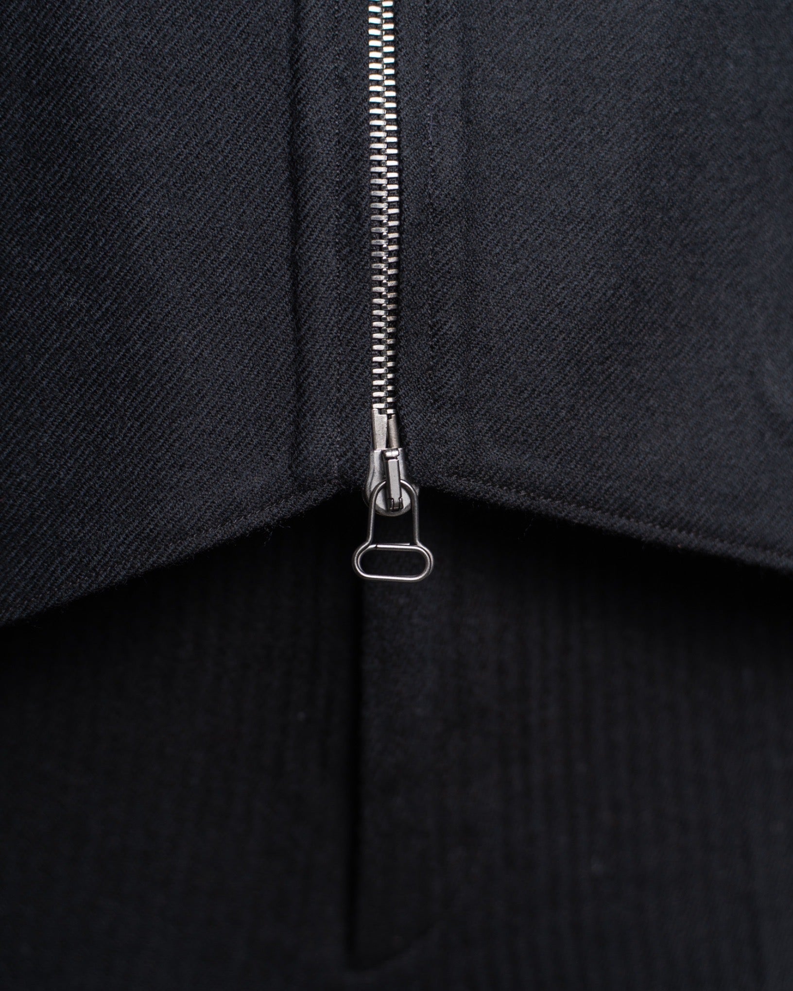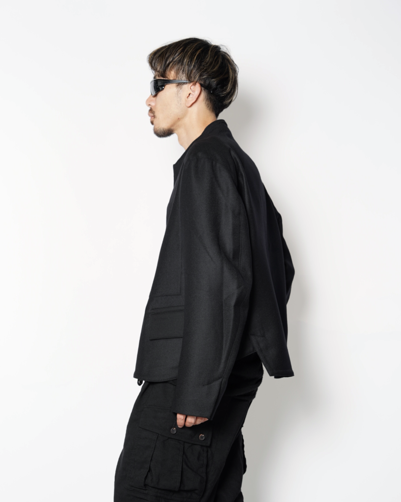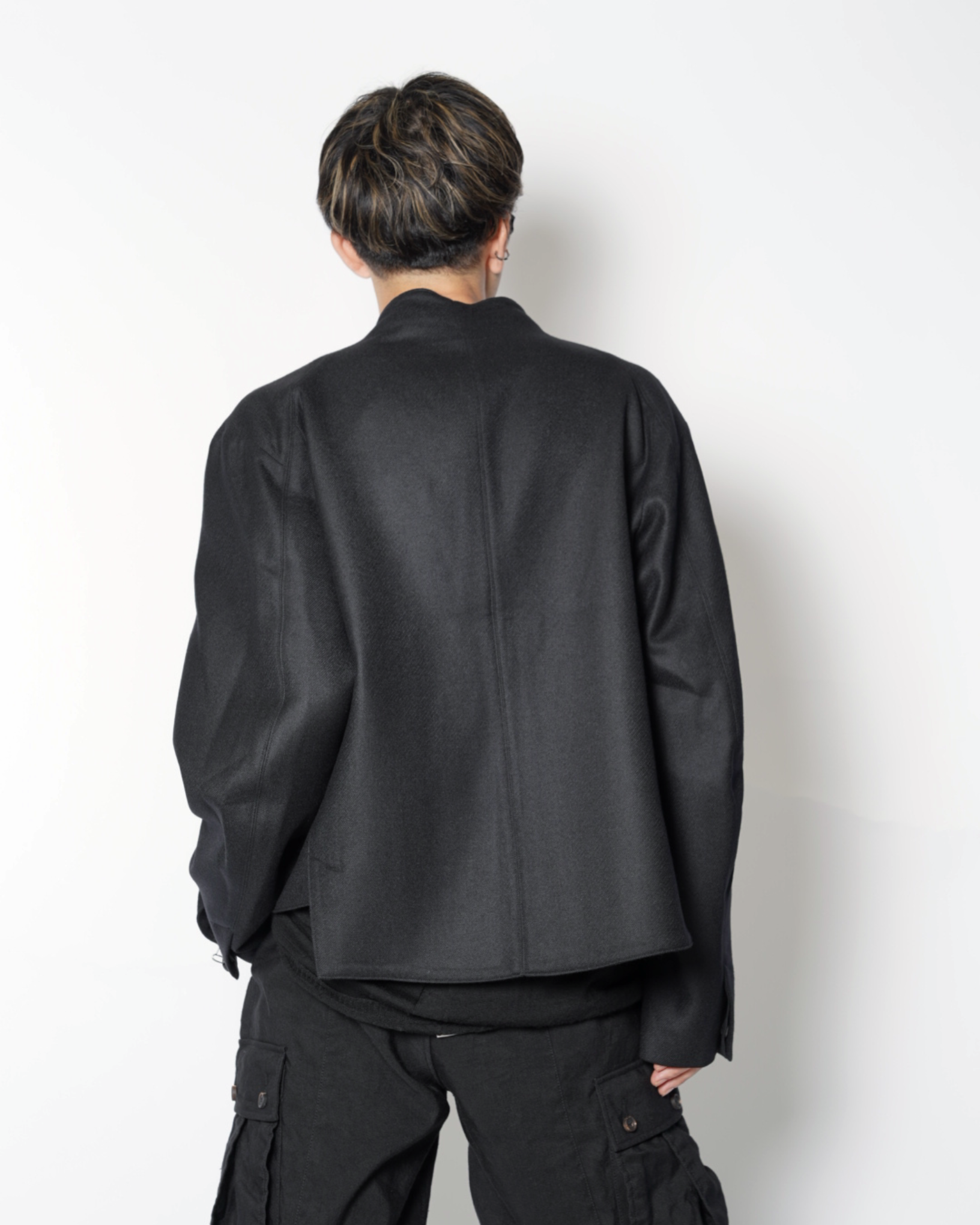 ・前振りの袖付けと直線的なアウトラインによる収まりの良いフォルムにより、ブルゾンながらもテーラージャケットのような端正な仕上がりです。