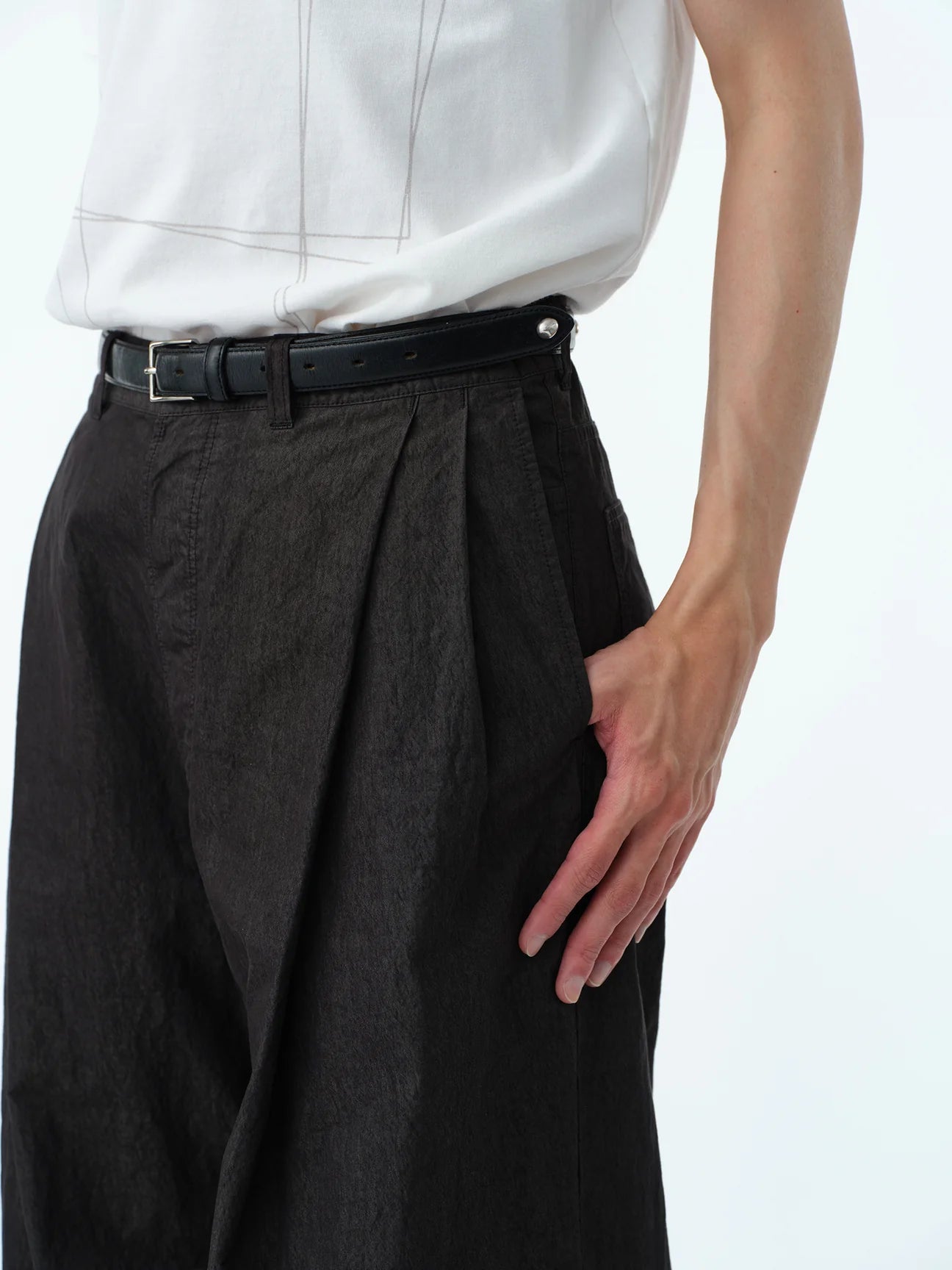 フロントには大小2つのタックを施し、裾幅を大きくとったデザインにより、どの角度から見ても特徴的なシルエットが際立ちます。