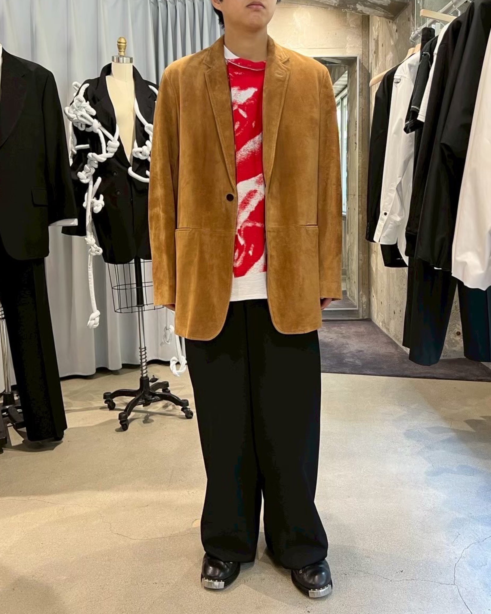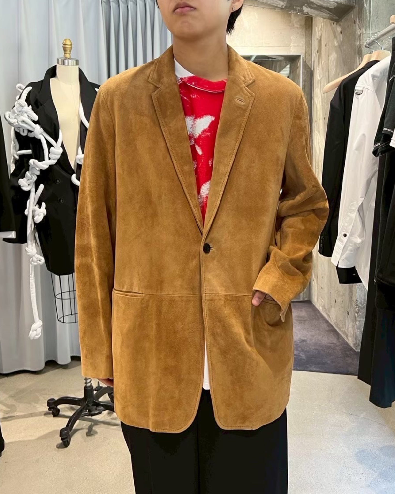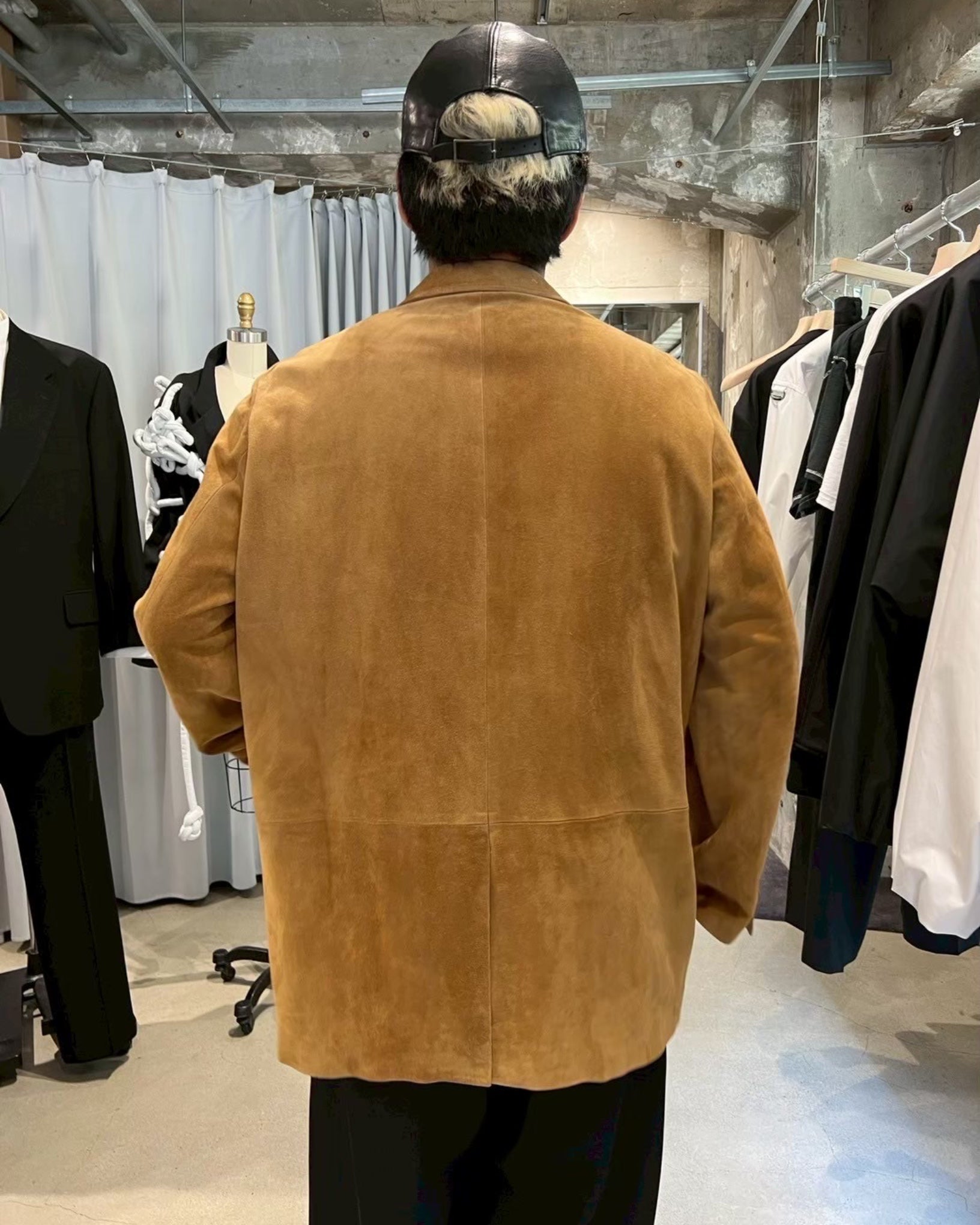 インド産の上質なスウェードを当てこんだジャケット。しっとりとした柔らかい質感が特徴。