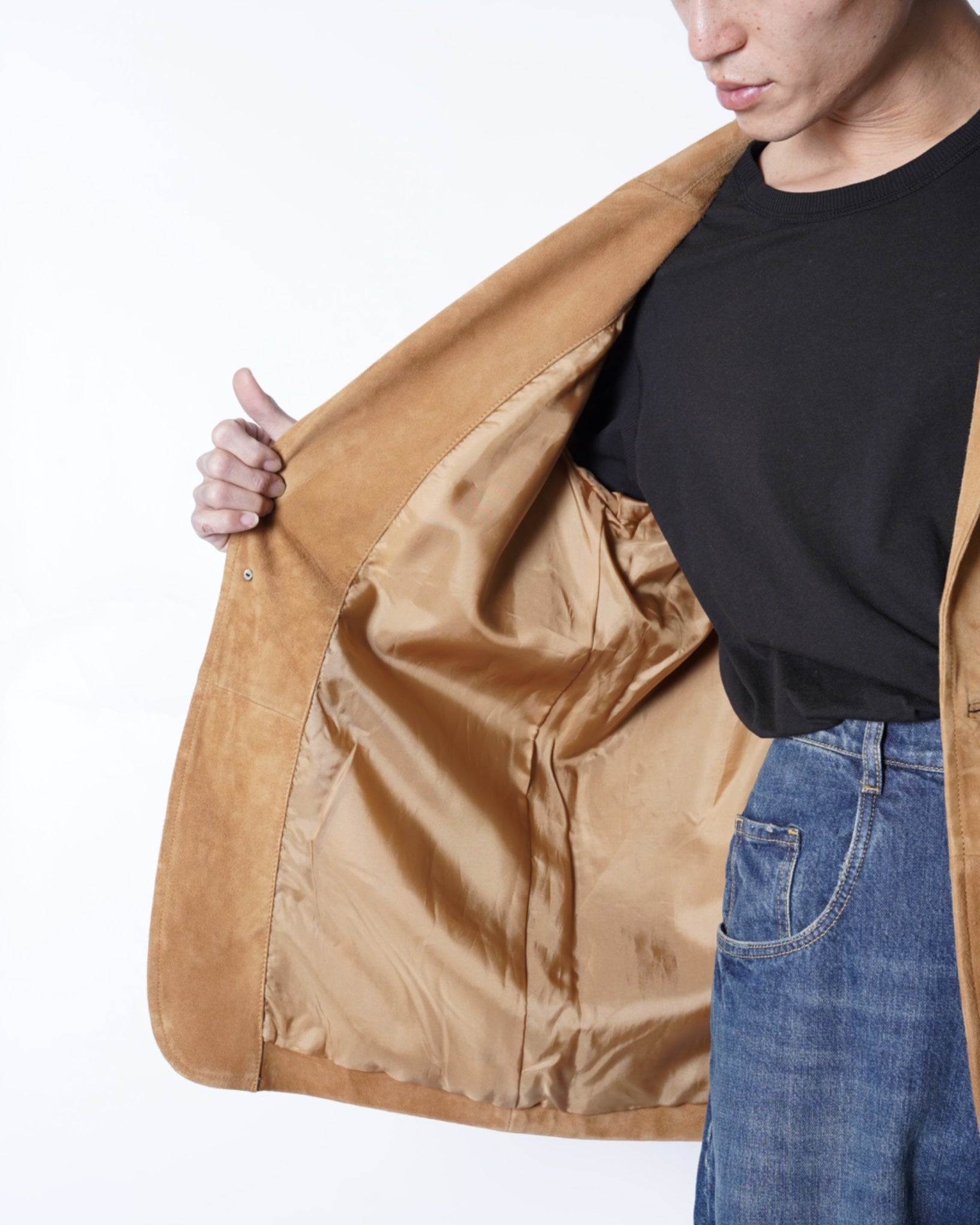 ・スウェードの味のある質感とOVERCOATの巧みなパターンワークが合わさった、テーラードジャケット。