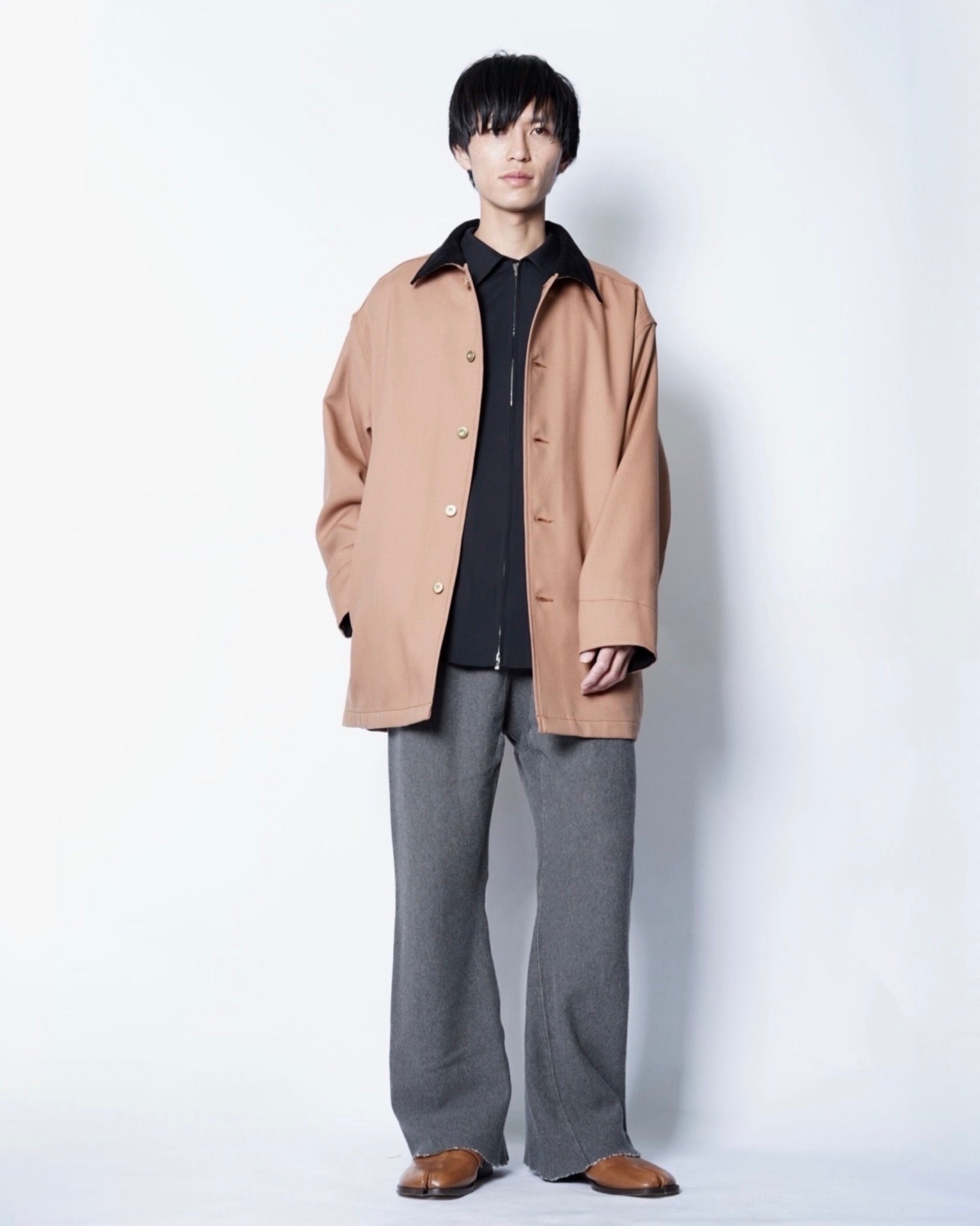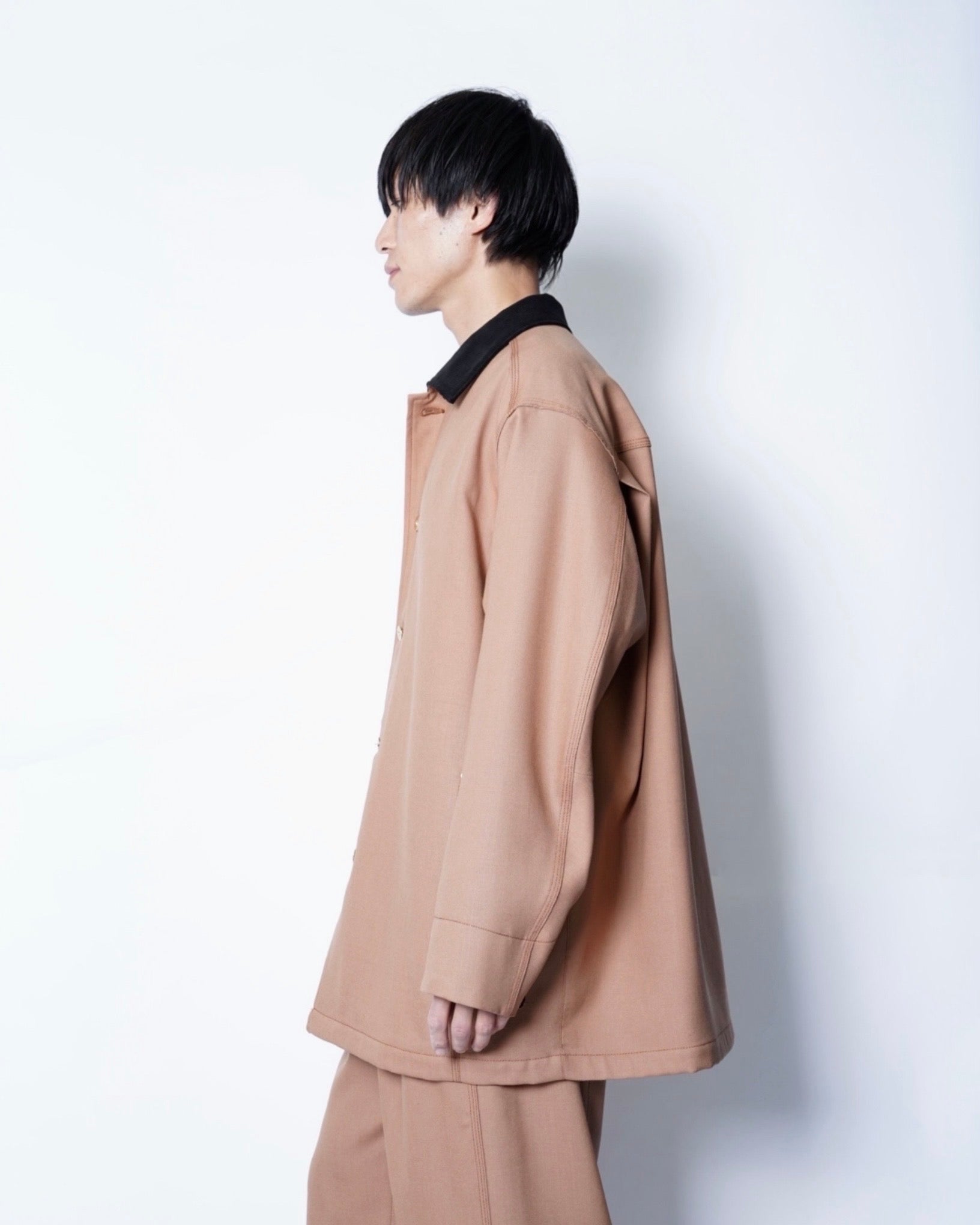 ・無骨なワークジャケットをOVERCOATの解釈で作り出した、綺麗なフォルムで品のある仕上がりの一着。