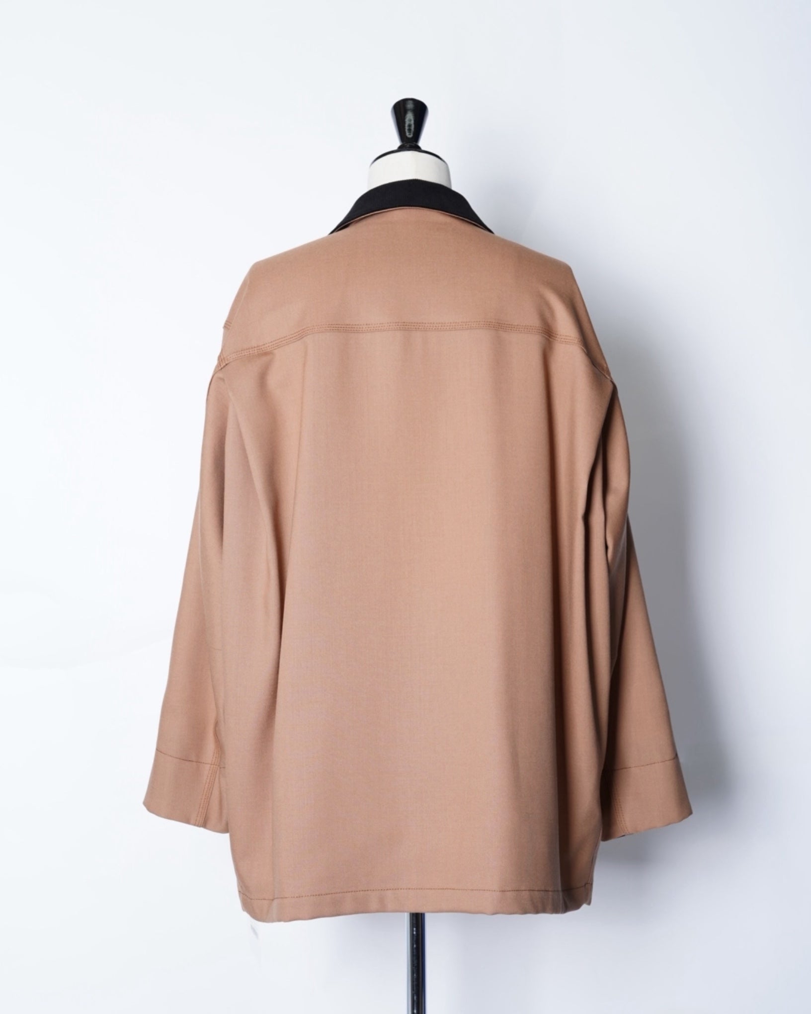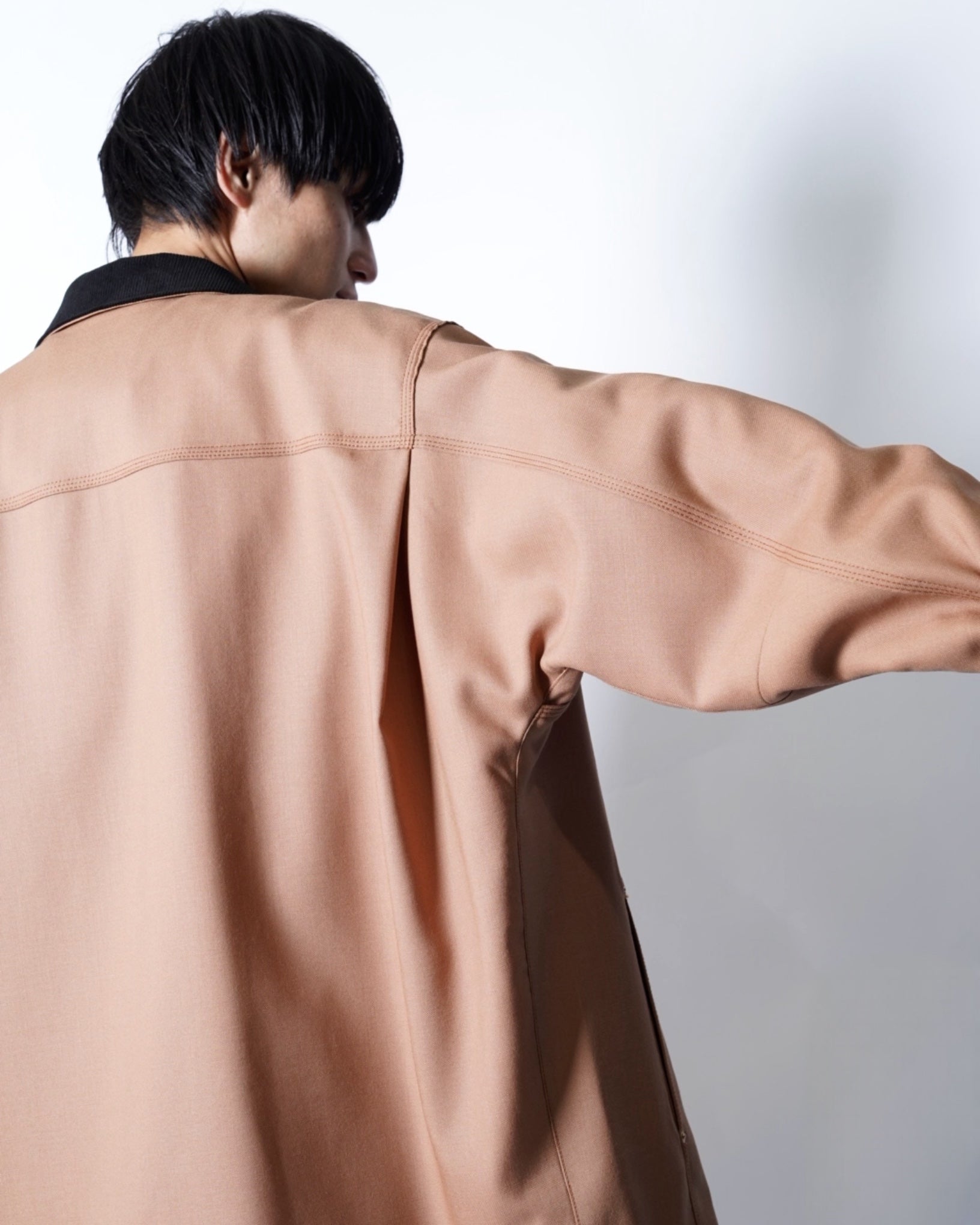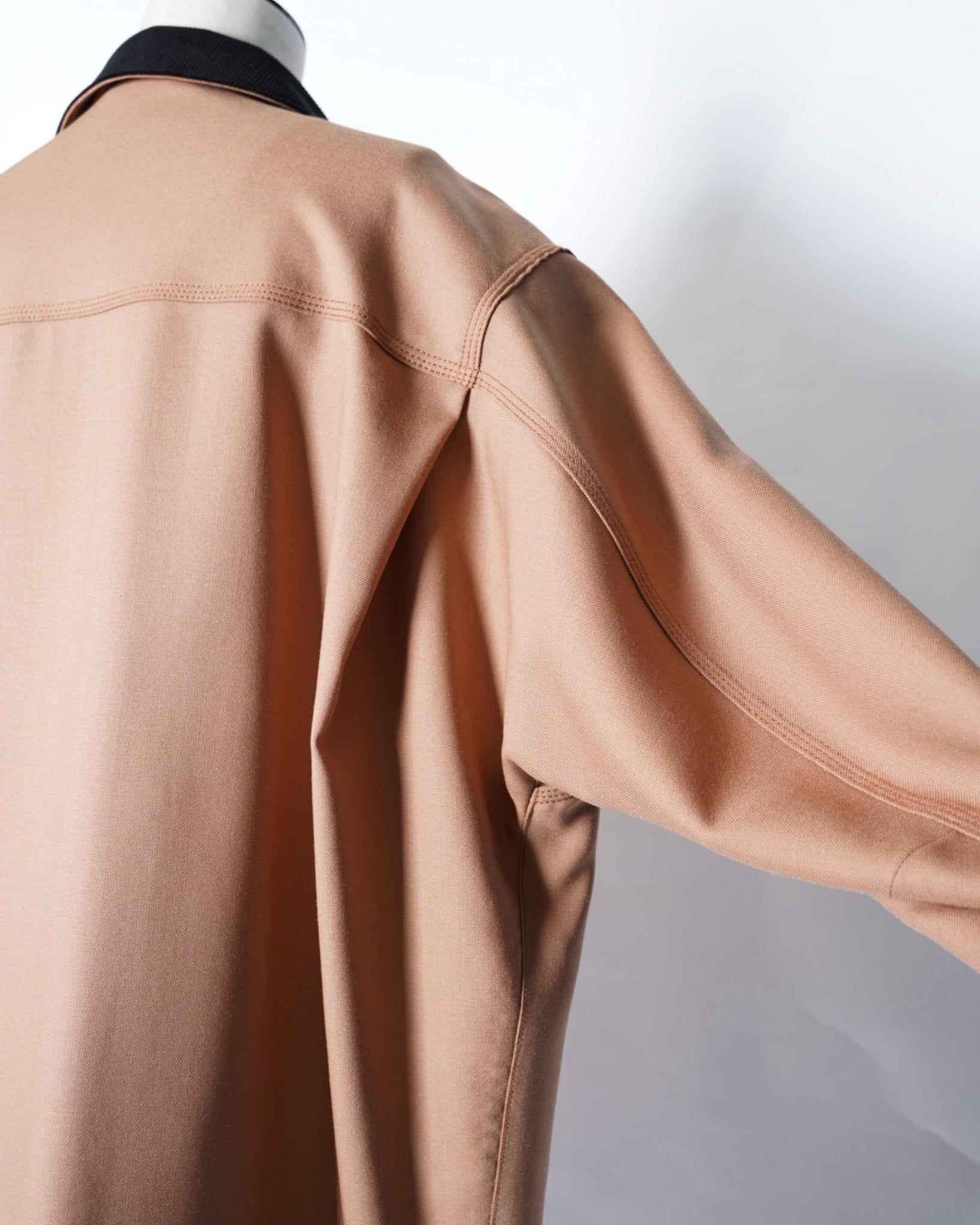 ・ボクシーなフォルムながら背面のシームレスな袖付けにより肩が張らずに身体に綺麗に馴染み、ダーツが入ることでダキも直線的に生み出され、美しいシルエットを作り出しています。