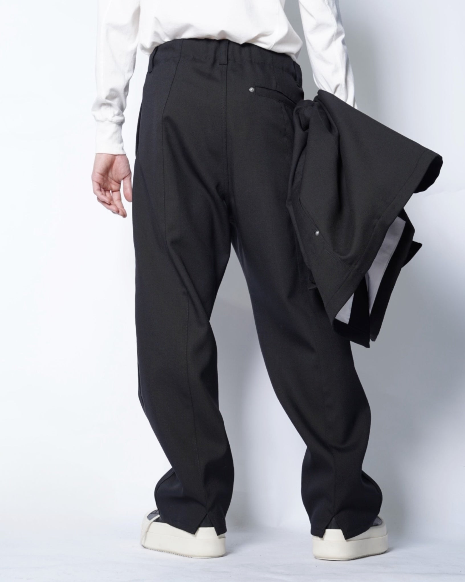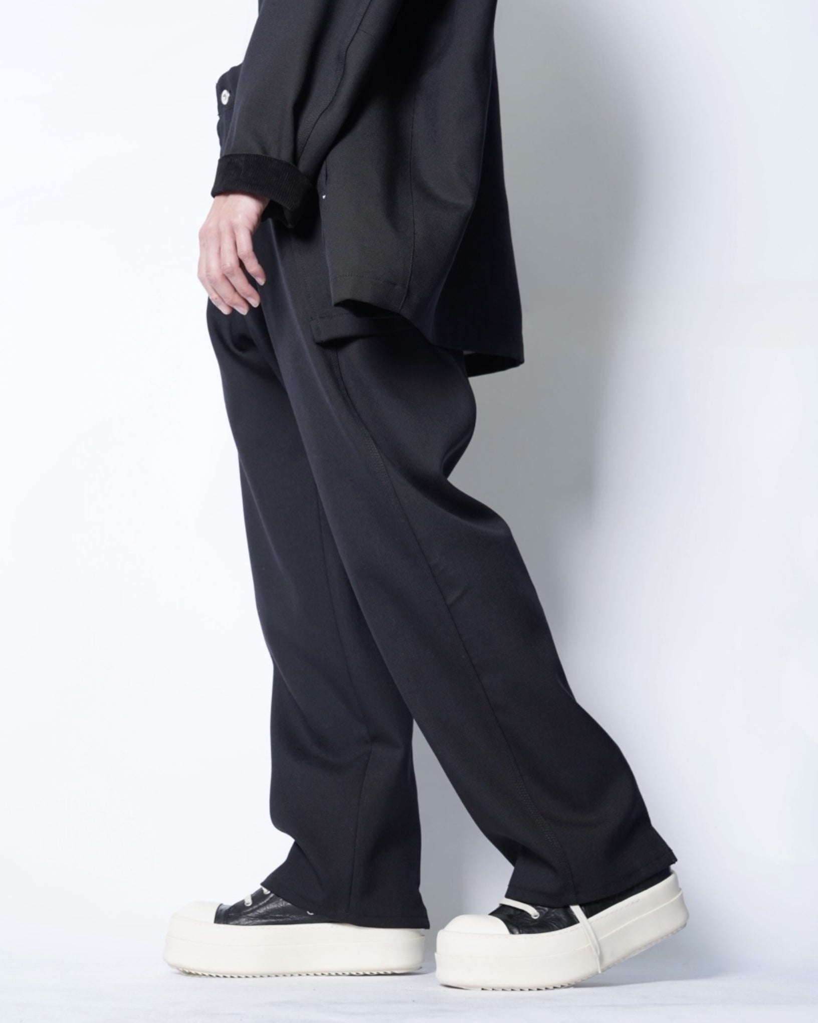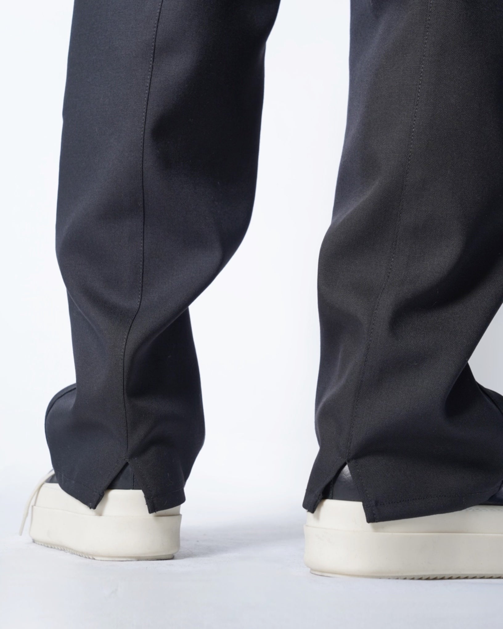 ・スニーカー、レザーシューズ、ブーツなど足元のフォルムを問わない、絶妙な裾幅の広さも魅力です。