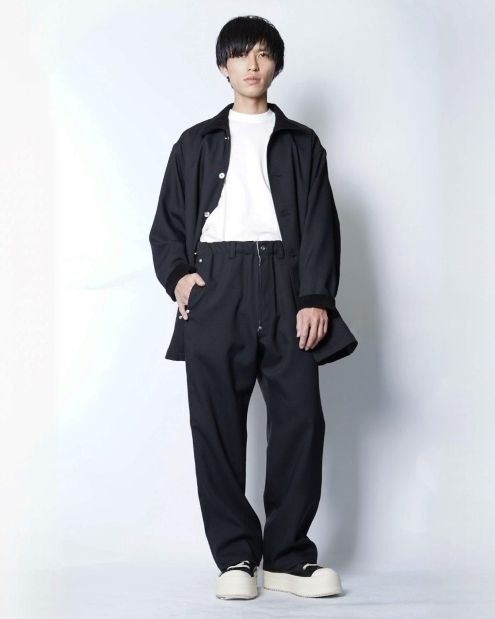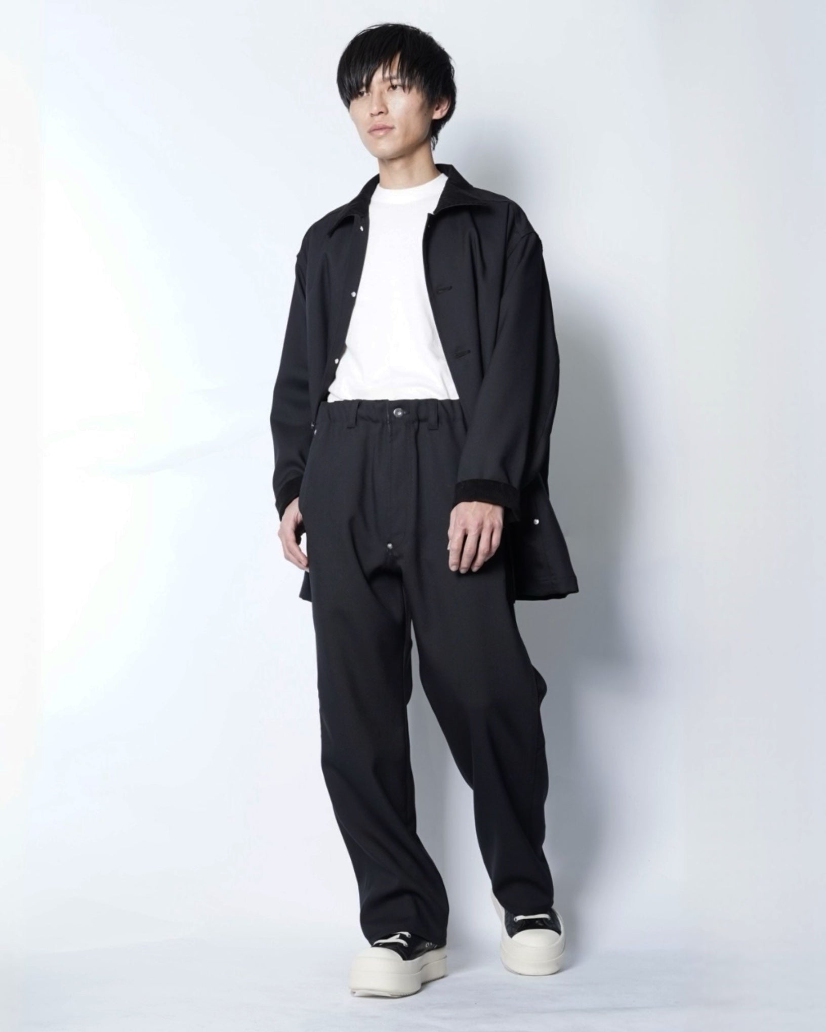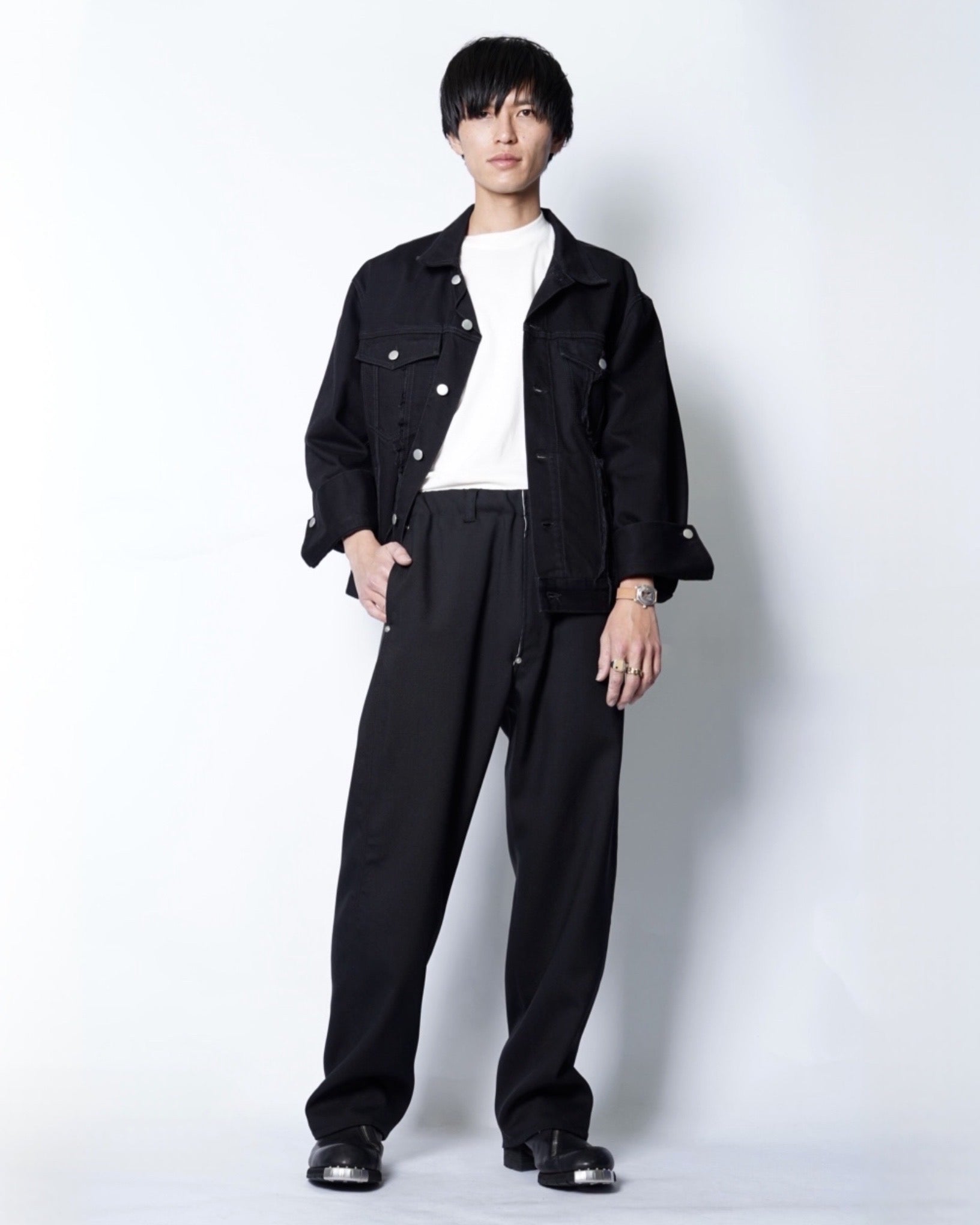 ・スニーカー、レザーシューズ、ブーツなど足元のフォルムを問わない、絶妙な裾幅の広さも魅力です。
