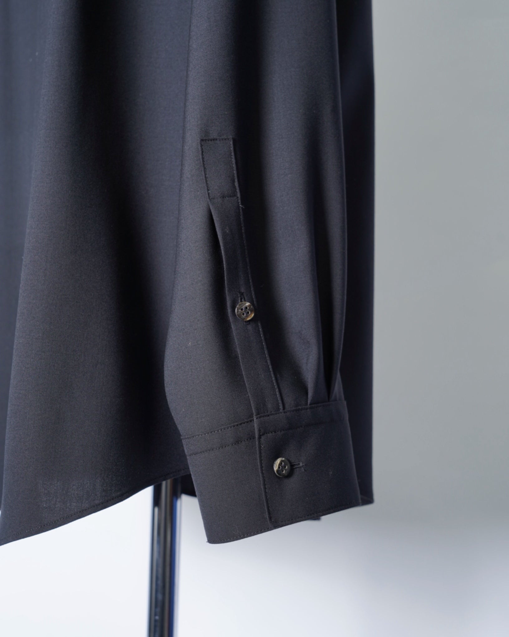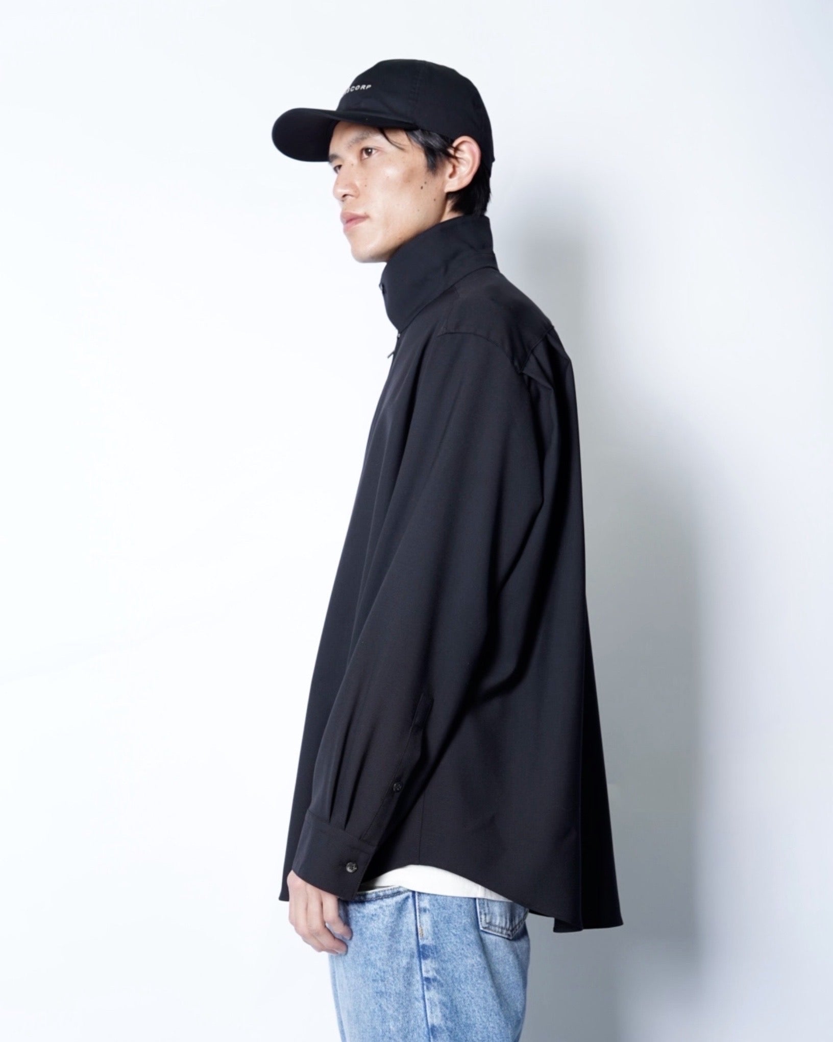 ・襟のボタンを閉じることでハイネックのようになり、より端正に引き締まった着こなしも可能となっています。