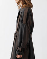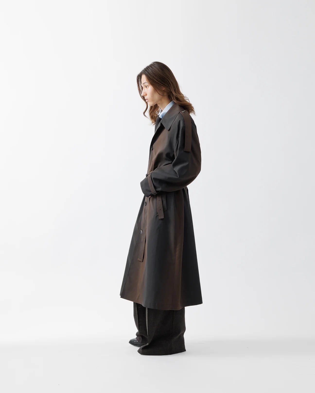 シャツのような軽やかさに加え、エポーレットやインバーテッドプリーツといった本格的なコートのディテールを随所に踏襲。