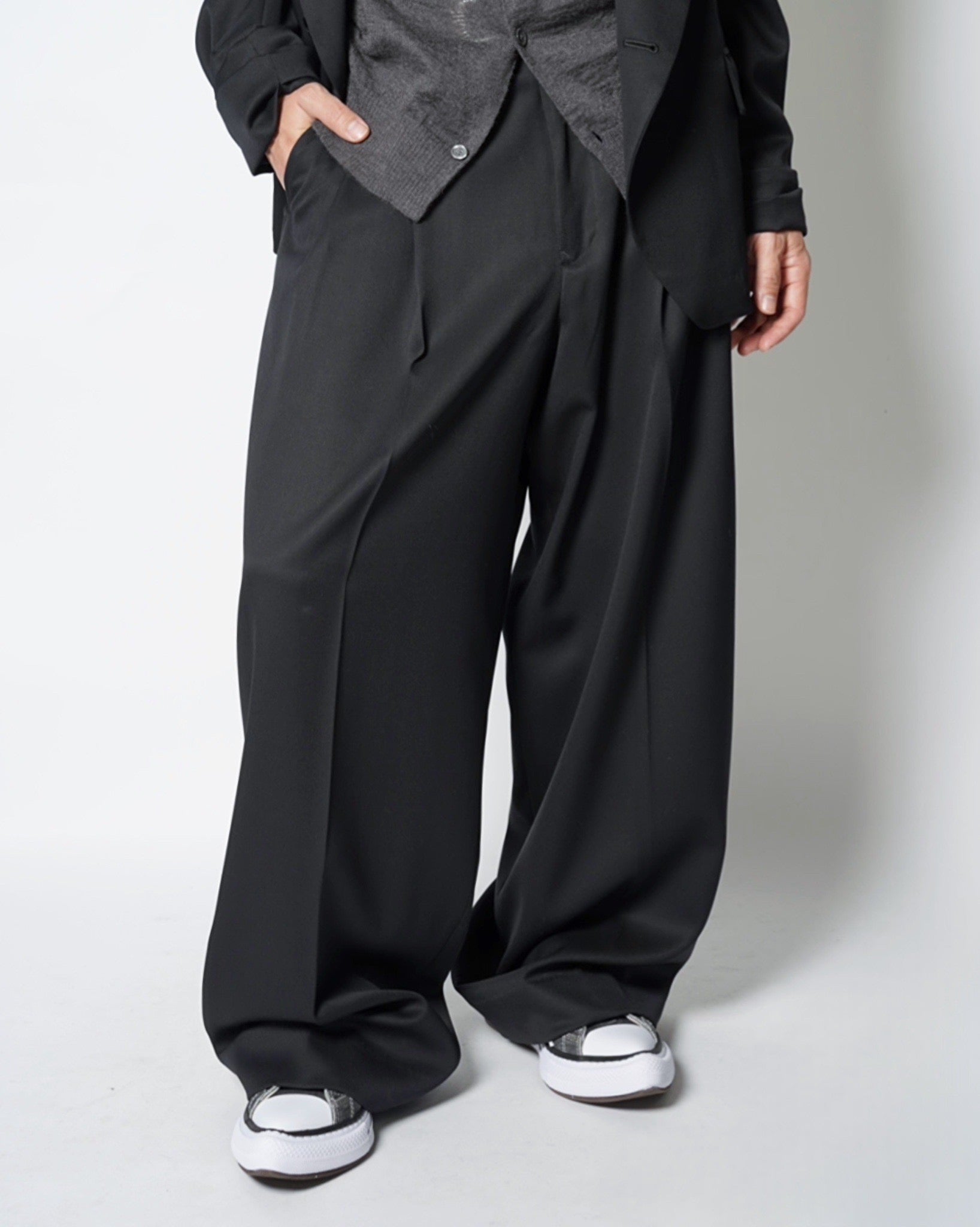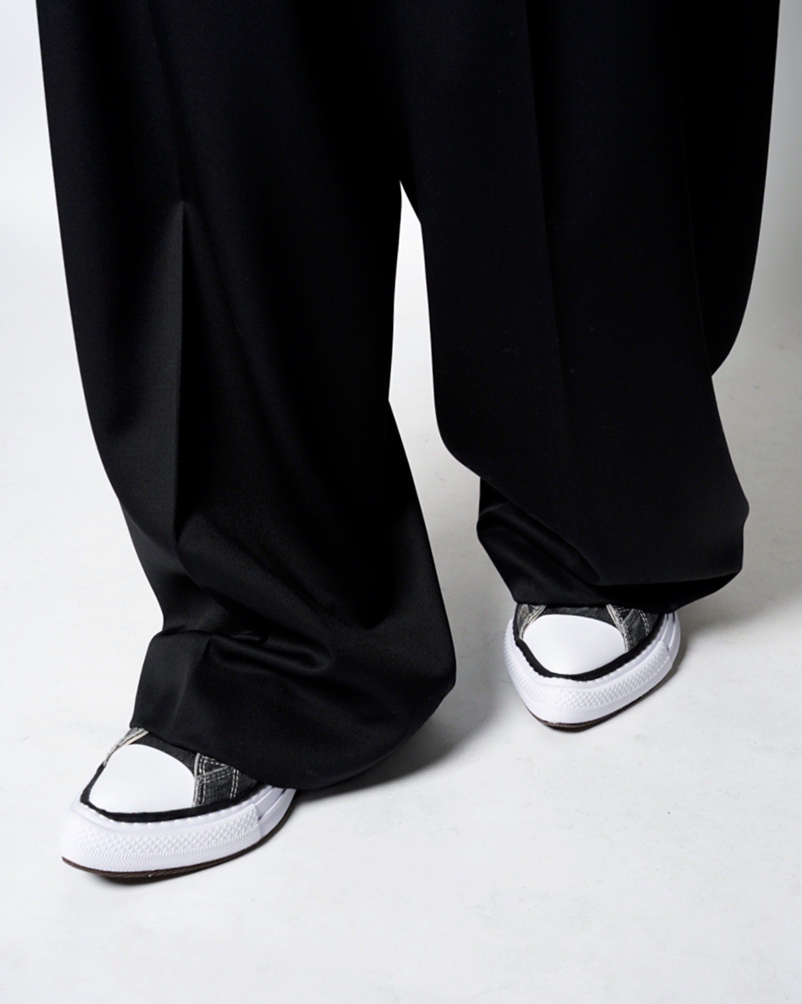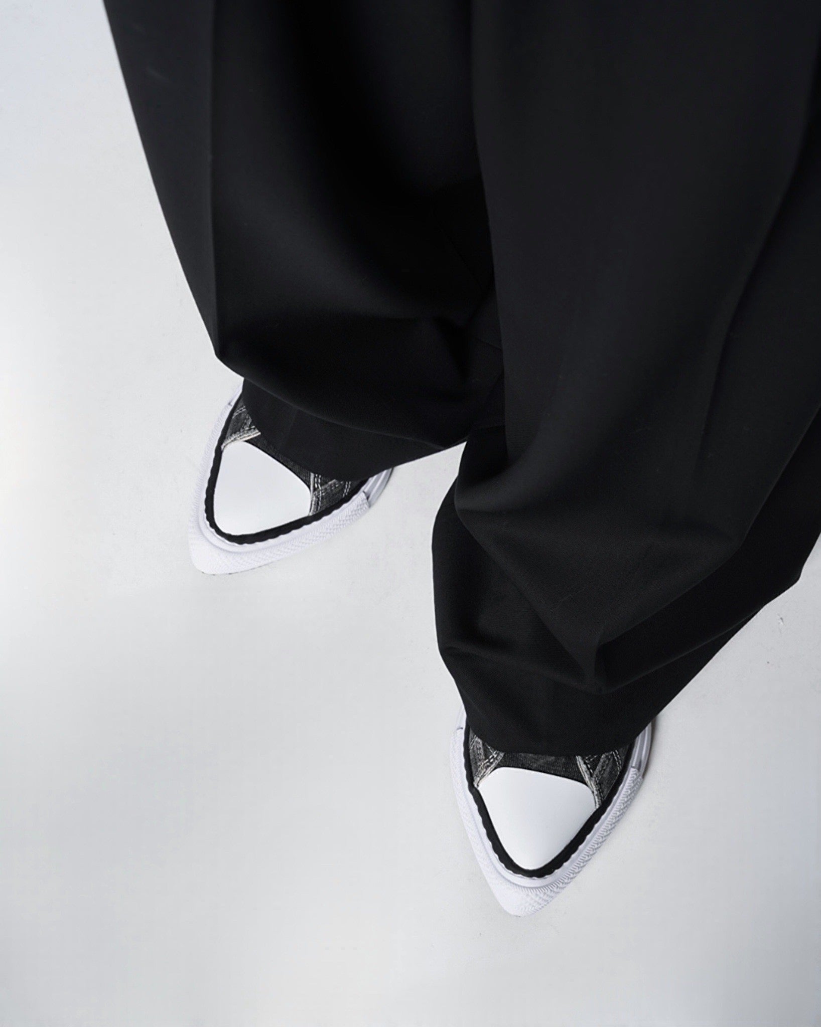 ・フラットなボリューム感のフォルムながら、トゥにエッジが効いていることでワイドパンツから先が覗くことでスタイリングのアクセントになります。