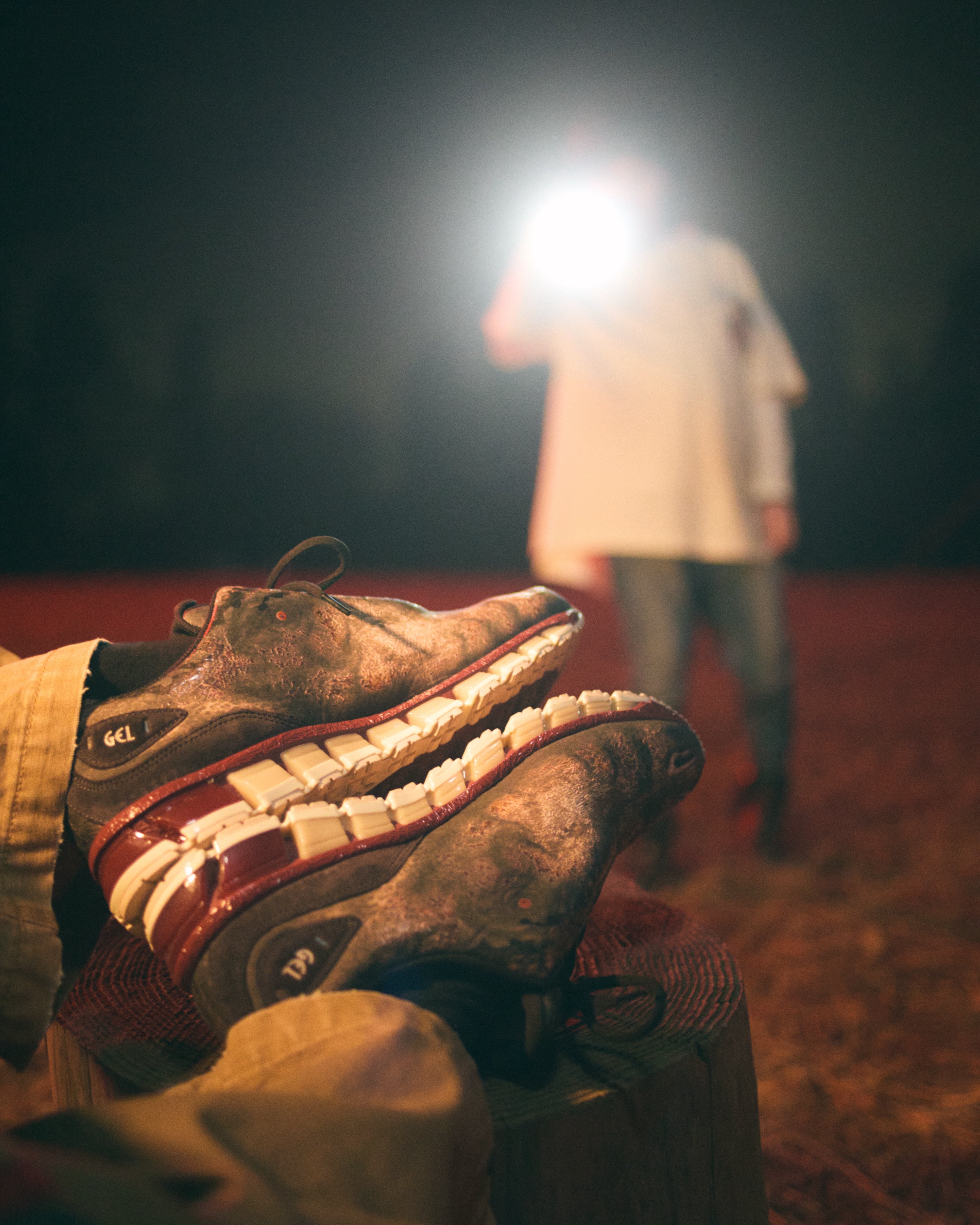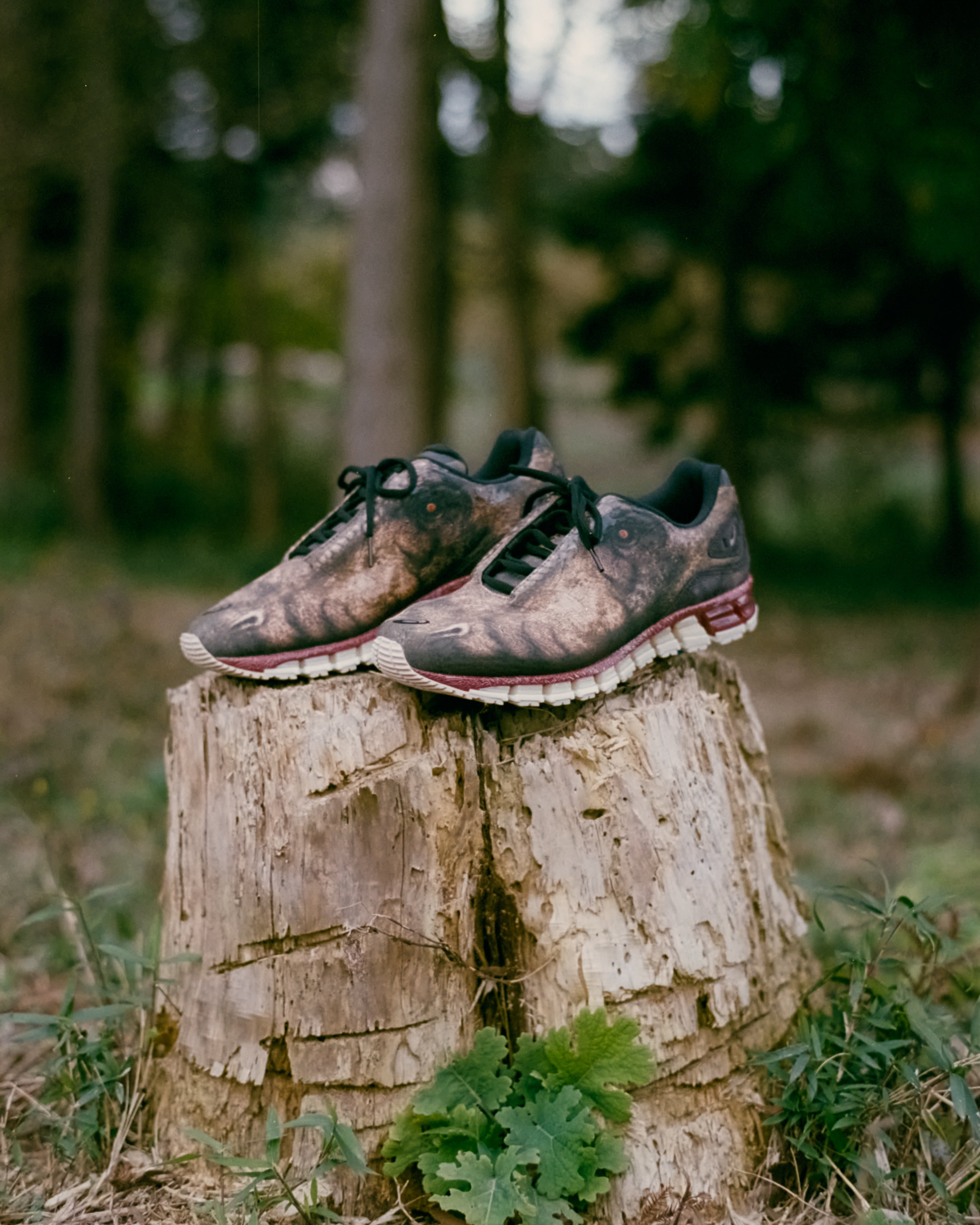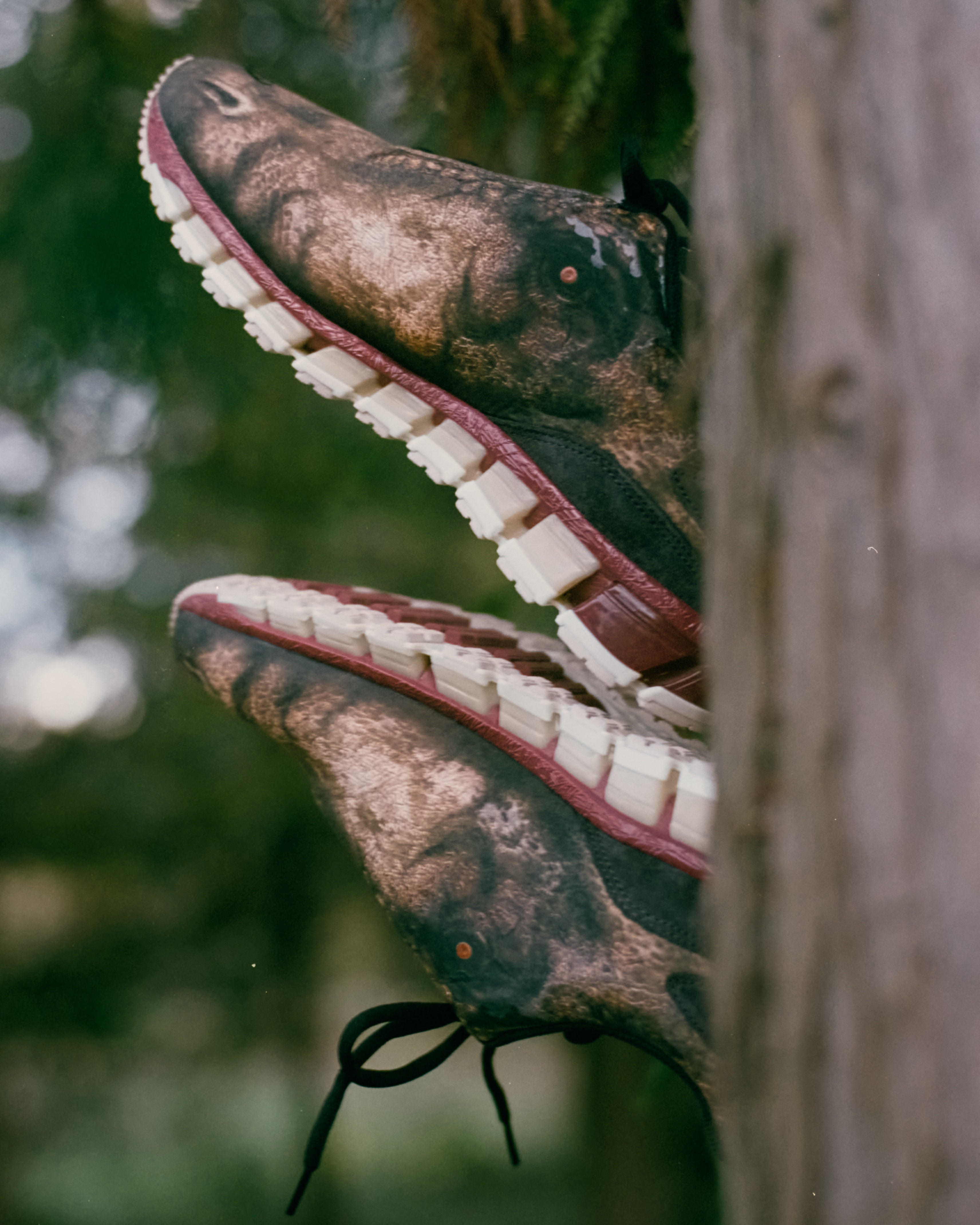 ソールには、恐竜の歯と歯茎を彷彿させるような配色で構成。