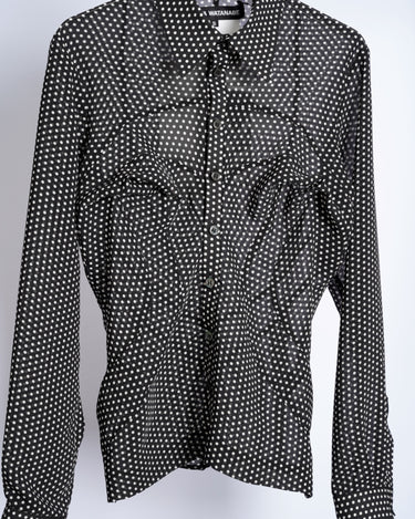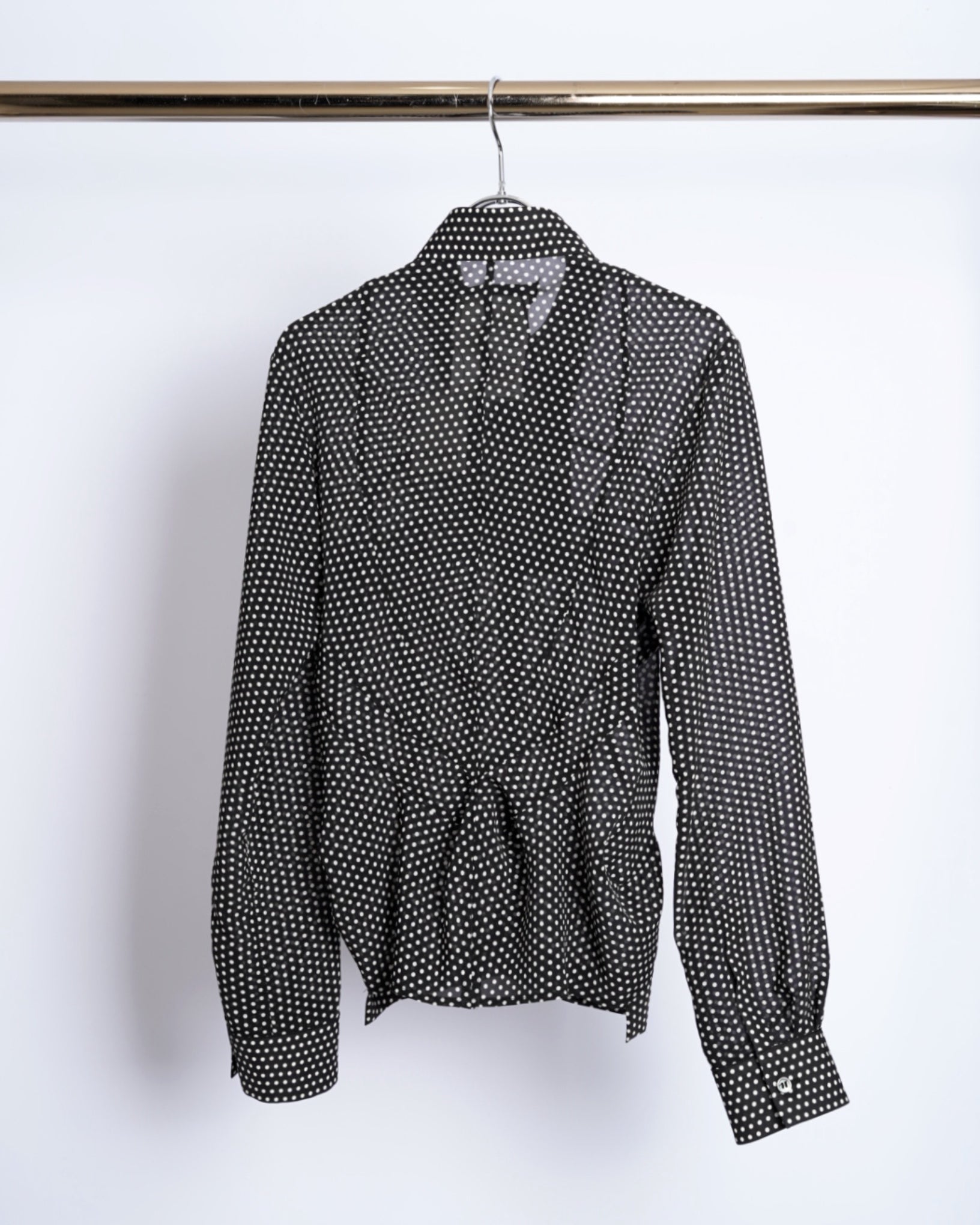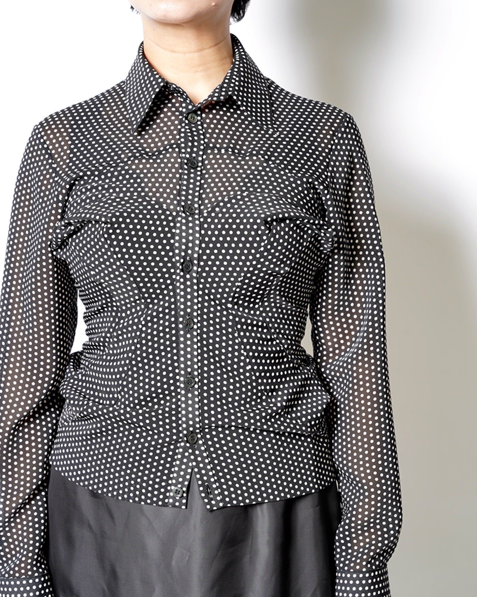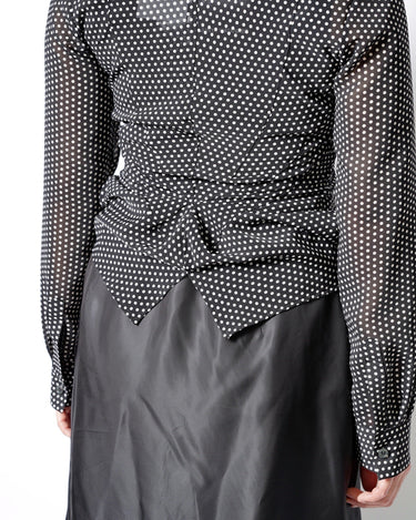 ・細やかなドット柄で、シックなモード感とこなれた愛らしさをバランスよく両立しています。