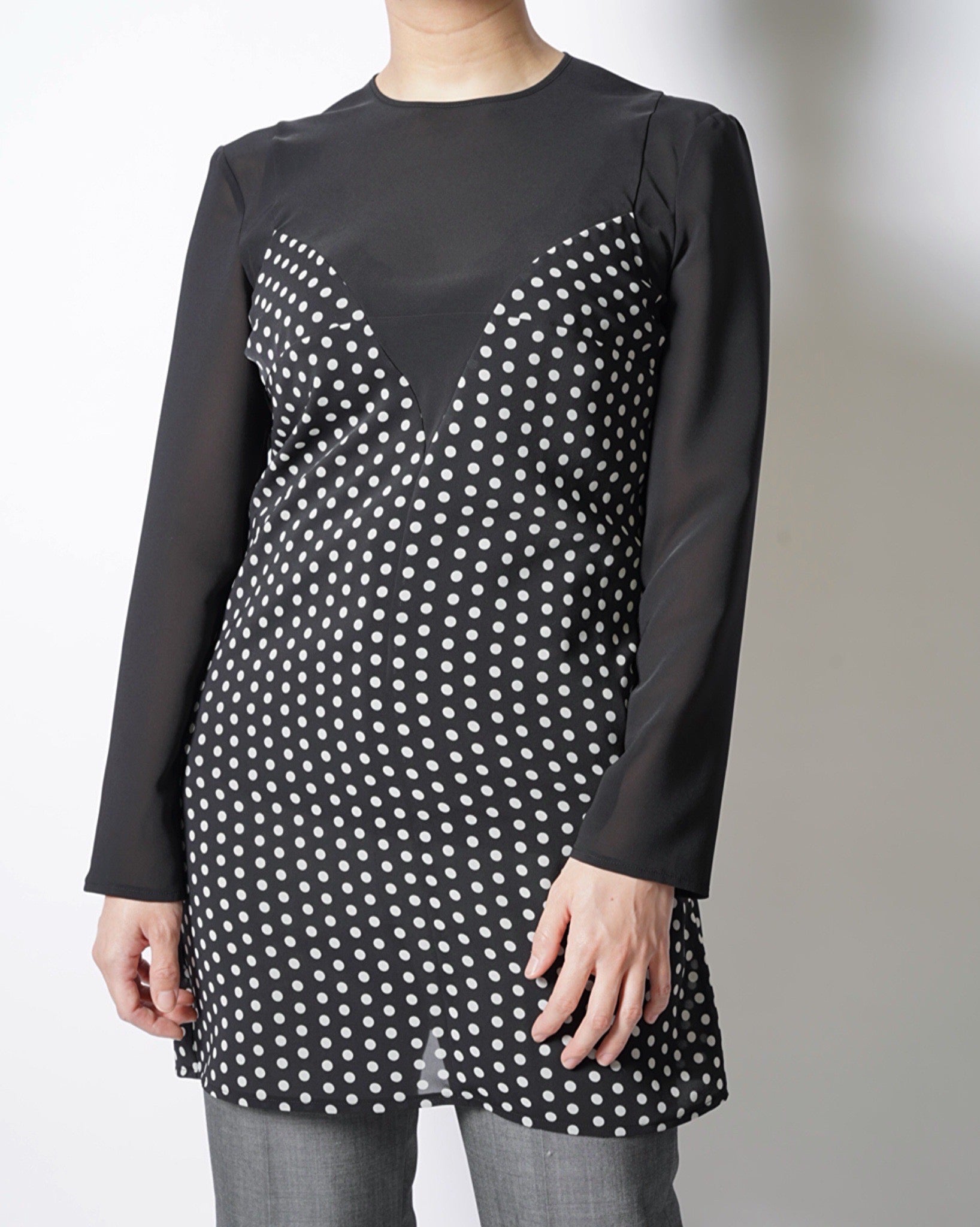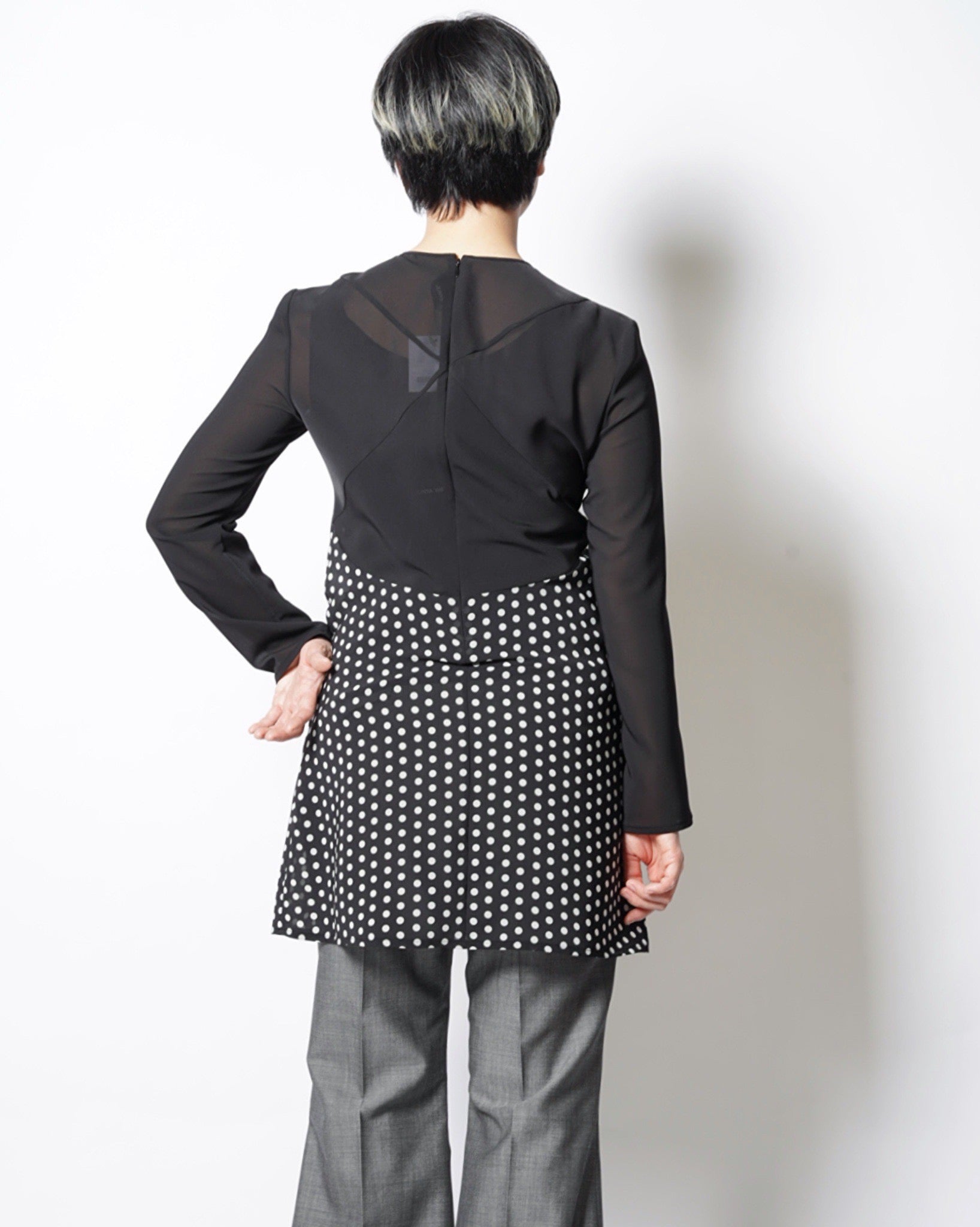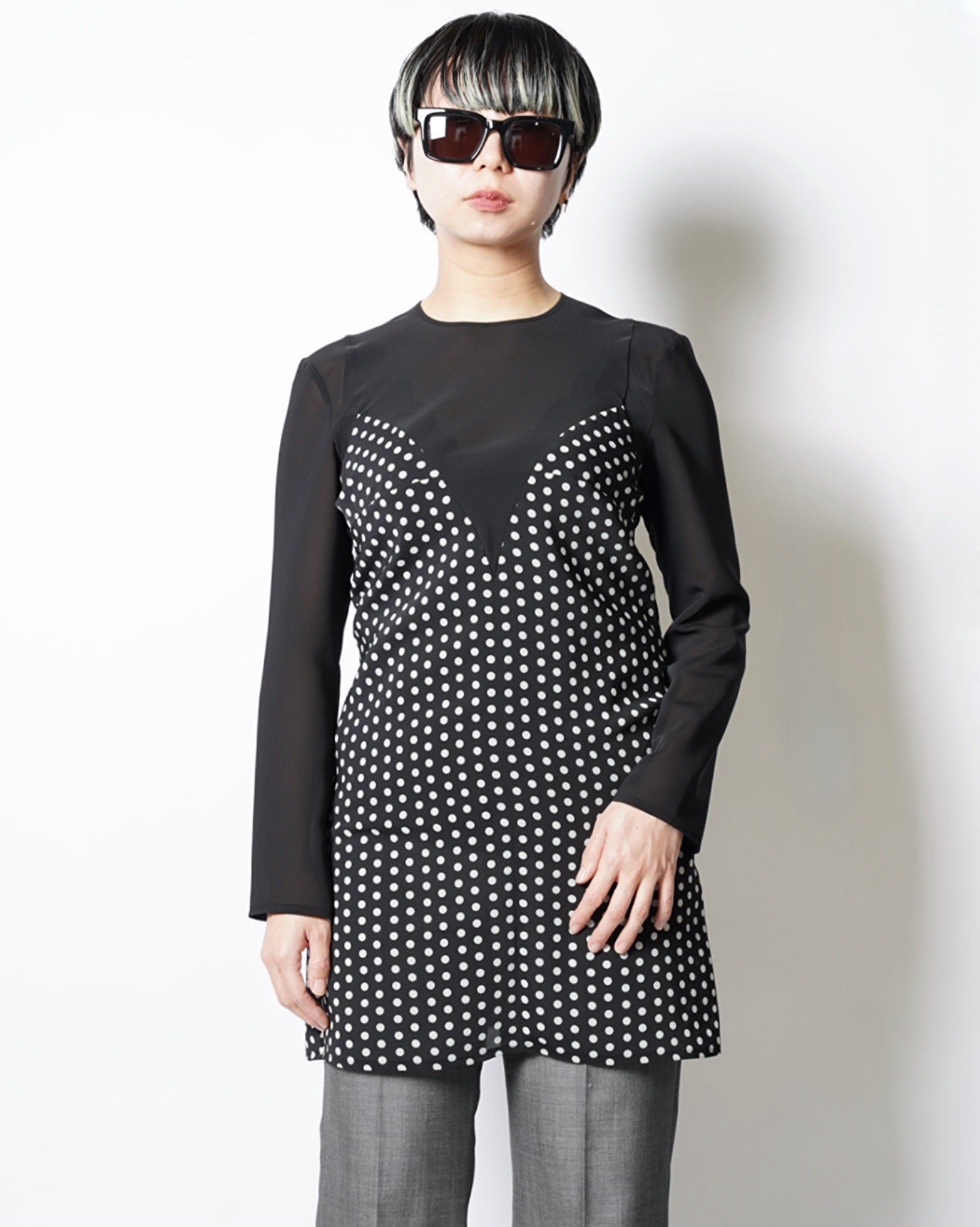 ・ドット柄のキャミソールをフロントに取り付けたような、JUNYA WATANABEらしいユニークなデザイン。