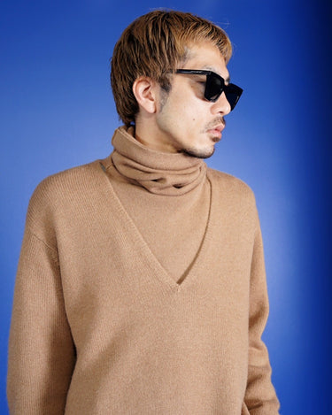 ・同素材、同色のNatural camel Deep V-neck sweaterとセットで合わせていただけます。