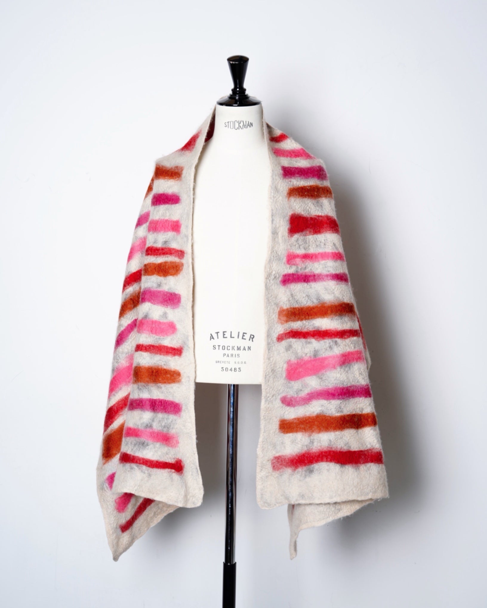 贅を尽くした素材により、ストールの域を超え、そしてフェルトとは思えない驚きの質感と絵画のような色柄をお楽しみくださいませ。