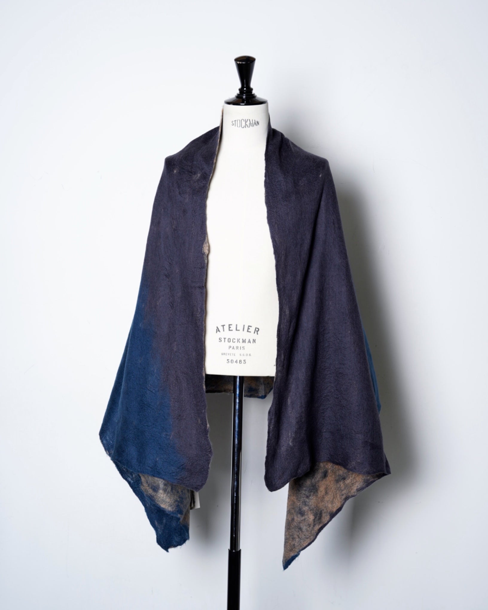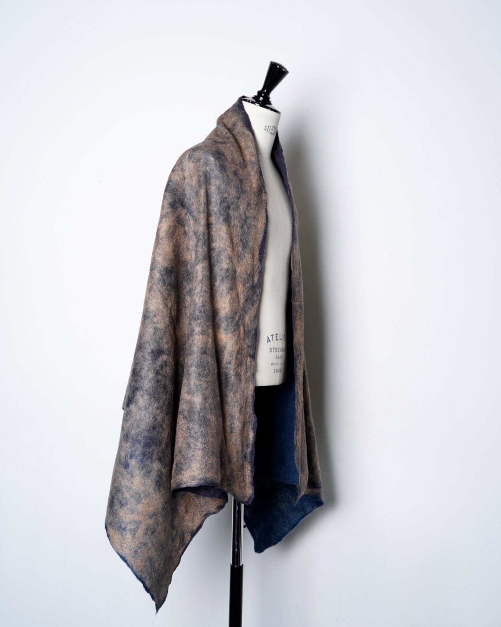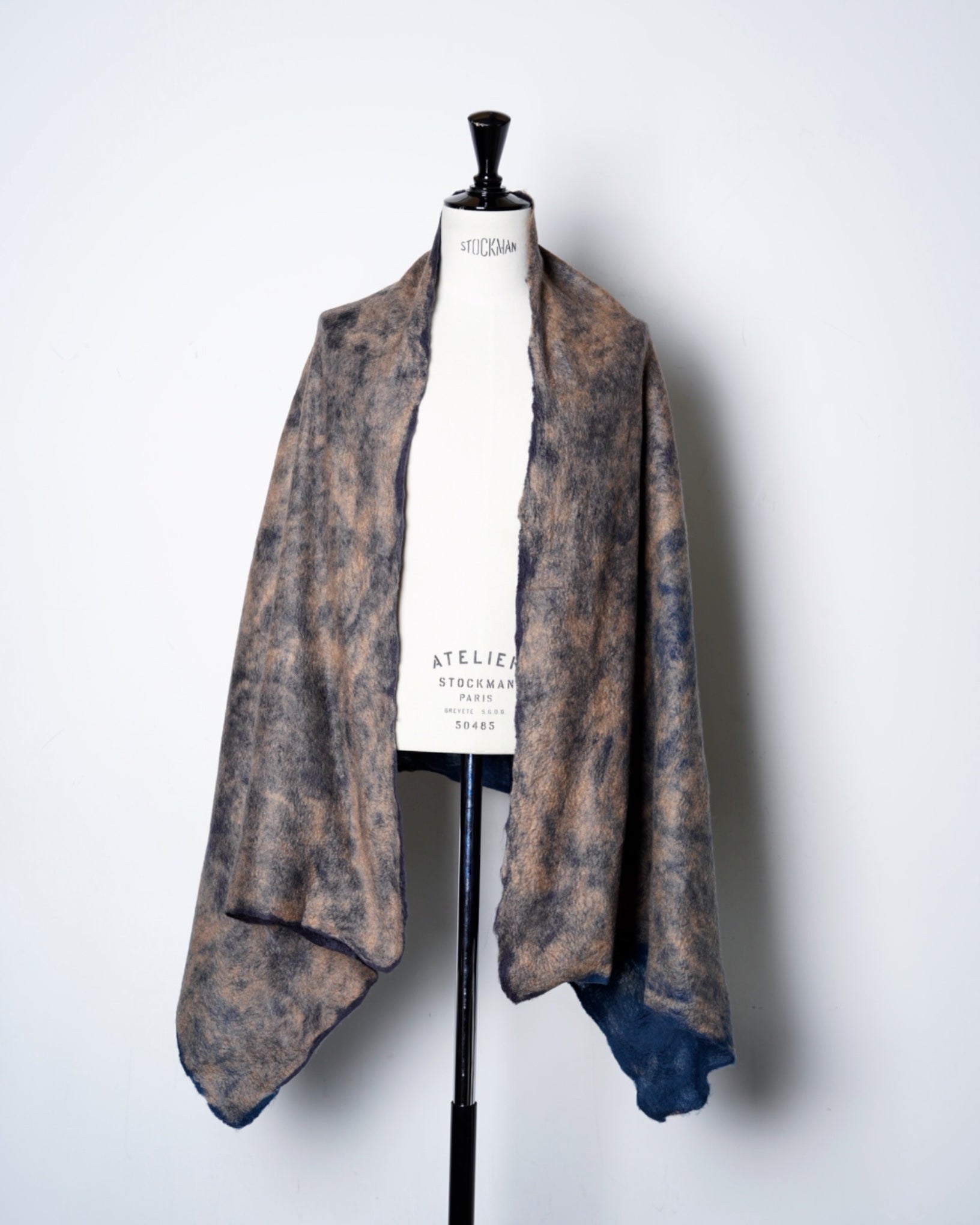 贅を尽くした素材により、ストールの域を超え、そしてフェルトとは思えない驚きの質感と絵画のような色柄をお楽しみくださいませ。