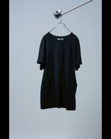 ・prasthanaのカットソー製作における定番的な手法である裏バインディング始末を採用することで、堅牢性能の向上とともに、程よい色気を作り出します。