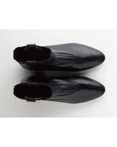 横からみた時にエラスティックカバーが足首に沿うように見えるのが特徴のフロントゴアブーツ。甲から履き口に向かう綺麗な流線ラインを出す為に、