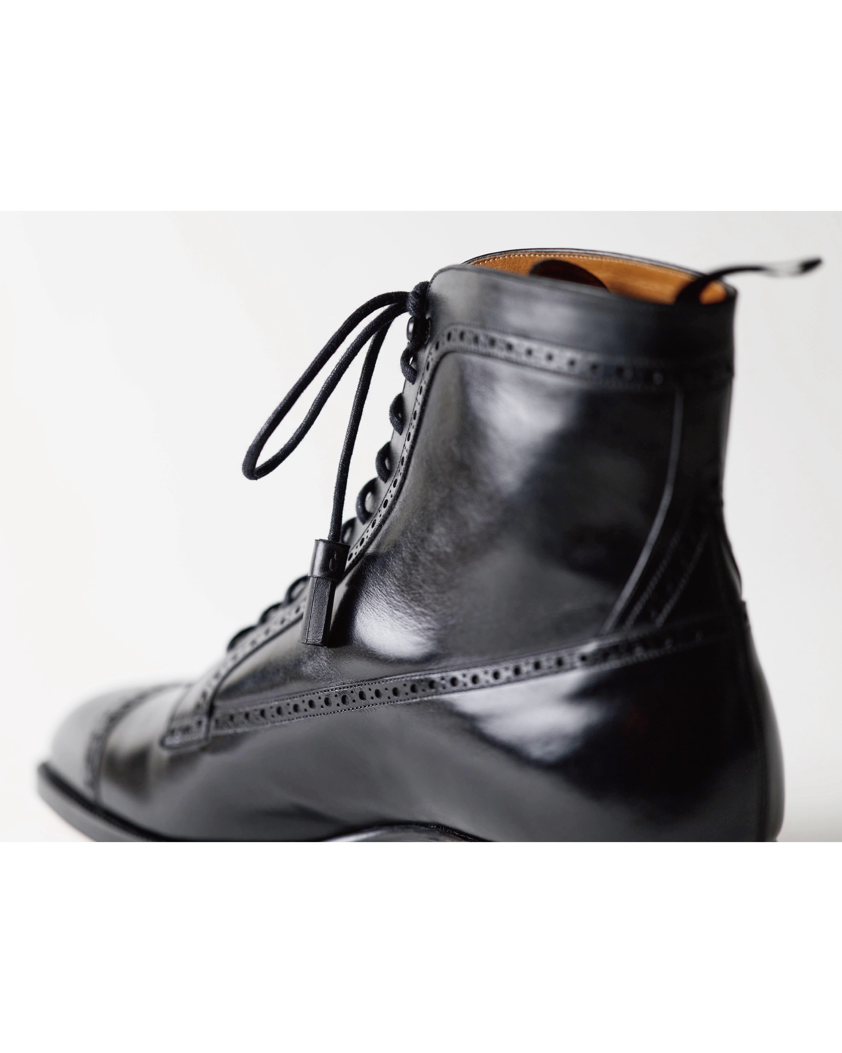 ブルーカーとはブラッチャーの職人用語でいわゆる外羽根の事。靴職人が自分用に作るブーツをイメージしデザインしました。ブローグ全てを手打ち、更に